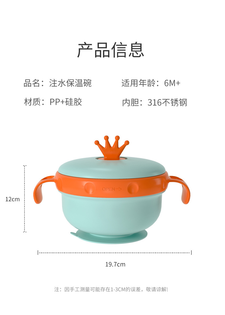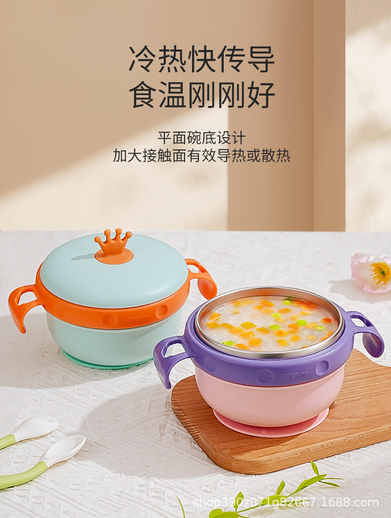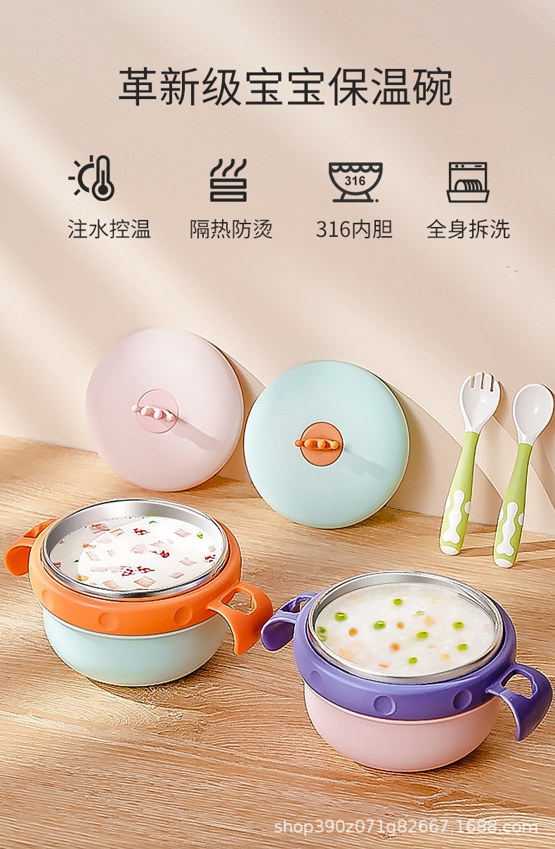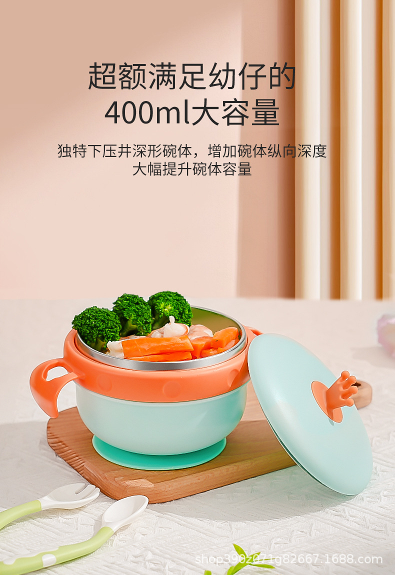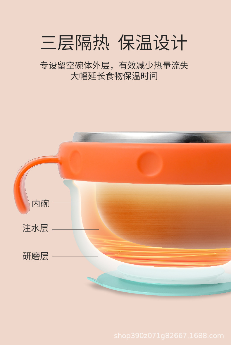 婴儿辅食碗宝宝专用注水保温碗316不锈钢防摔防烫儿童餐具吸盘碗