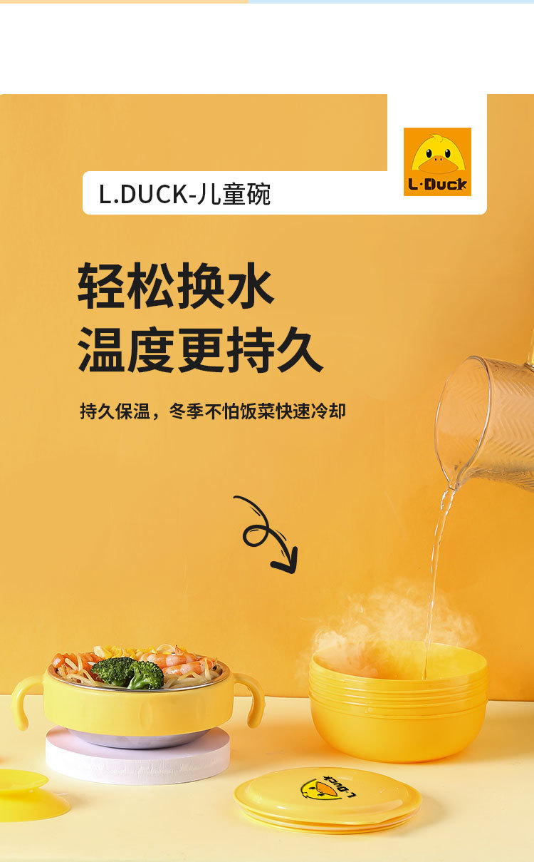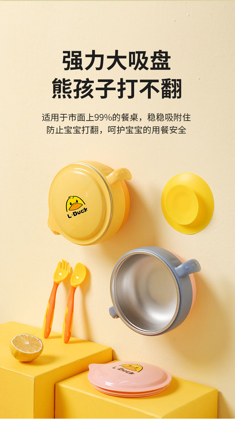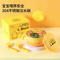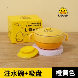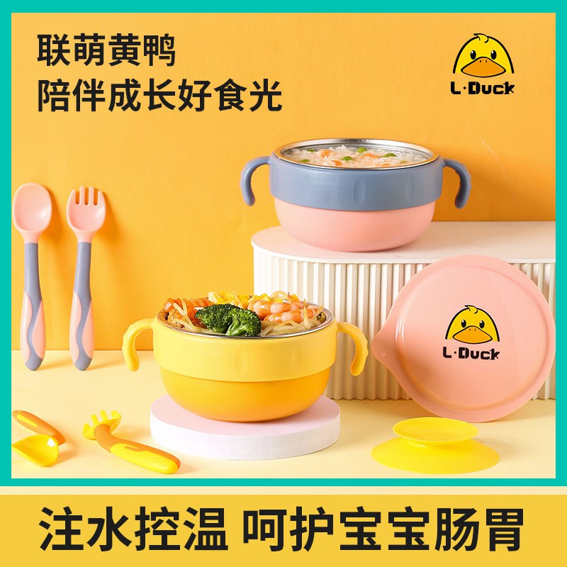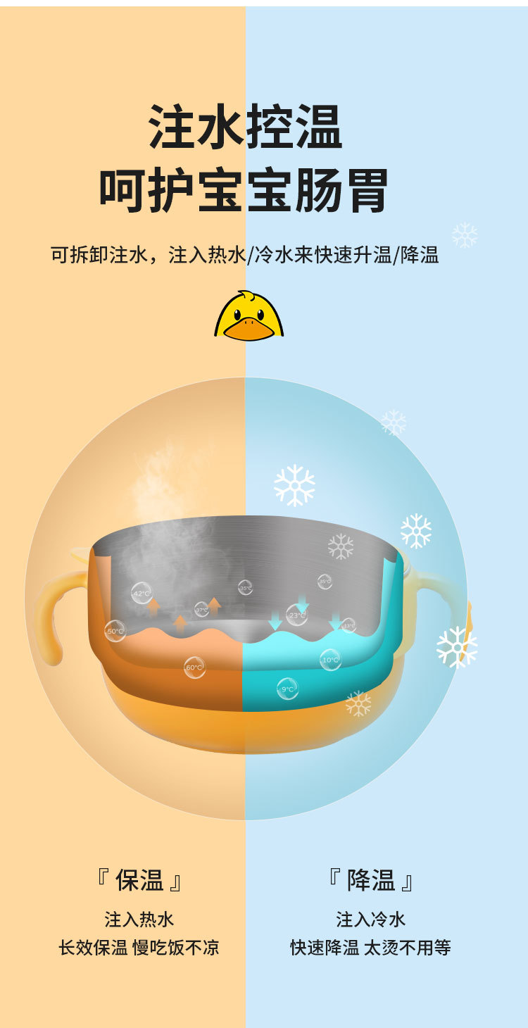 黄鸭婴儿辅食碗注水保温不锈钢304碗可拆卸带吸盘宝宝专用儿童碗