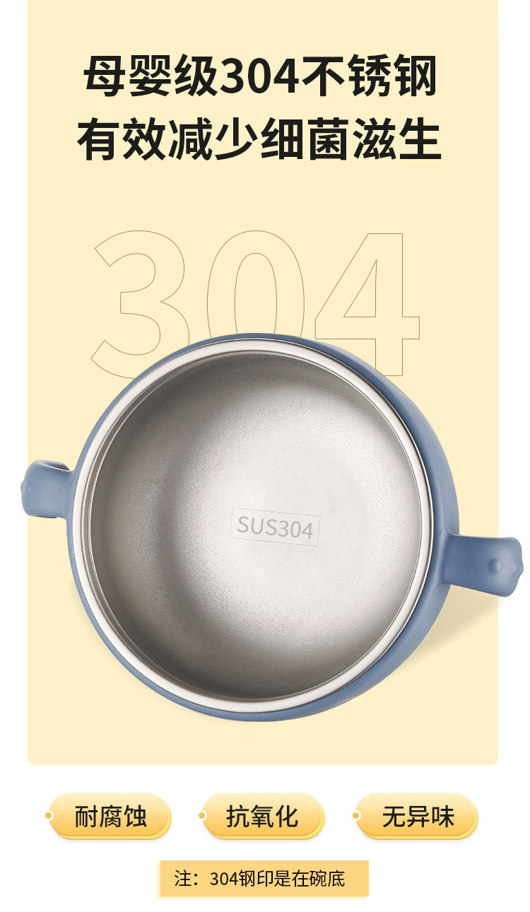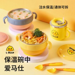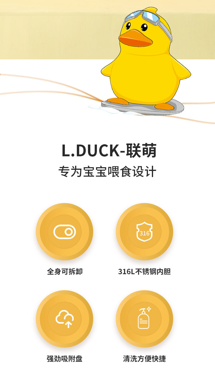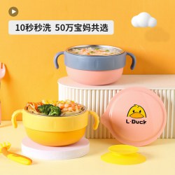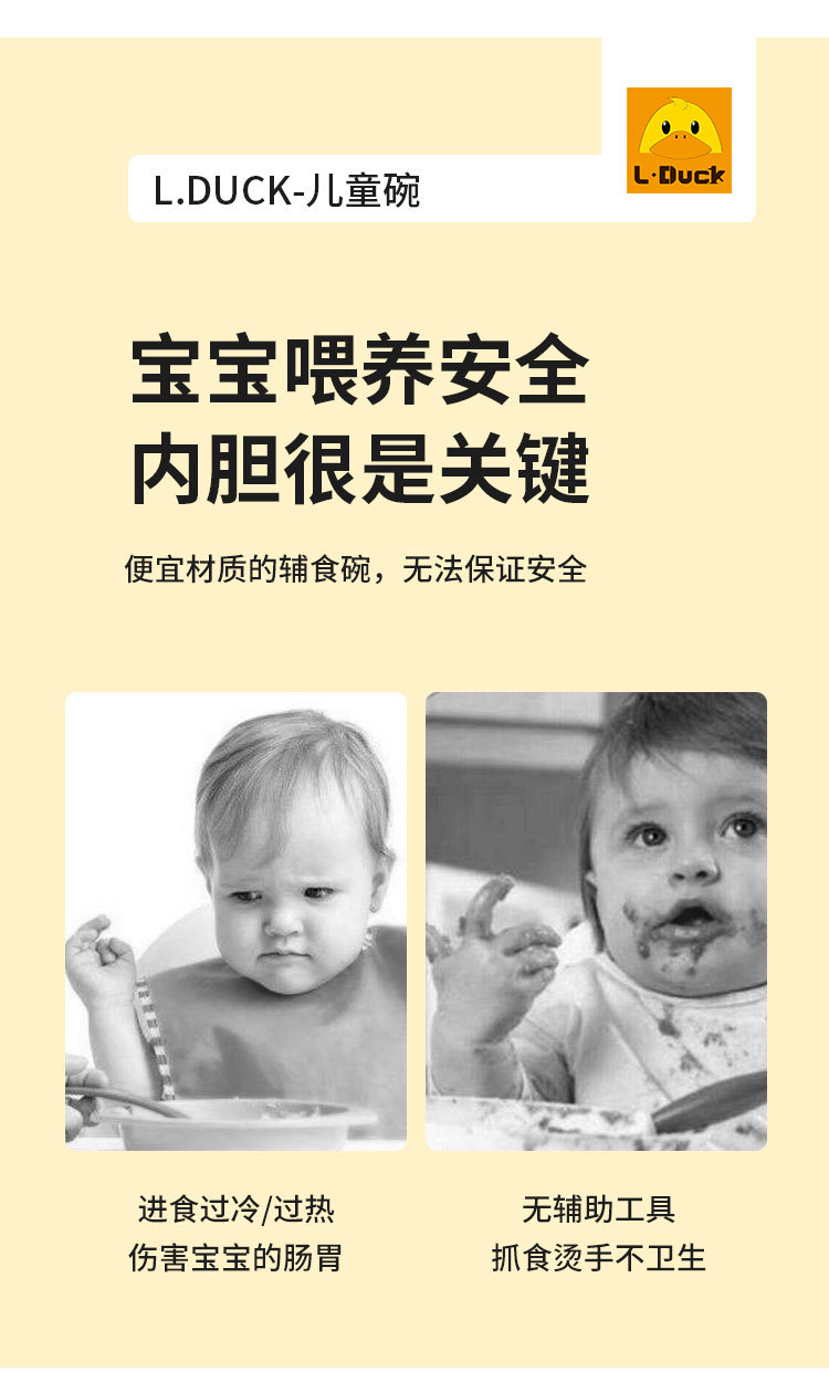 黄鸭婴儿辅食碗注水保温不锈钢304碗可拆卸带吸盘宝宝专用儿童碗