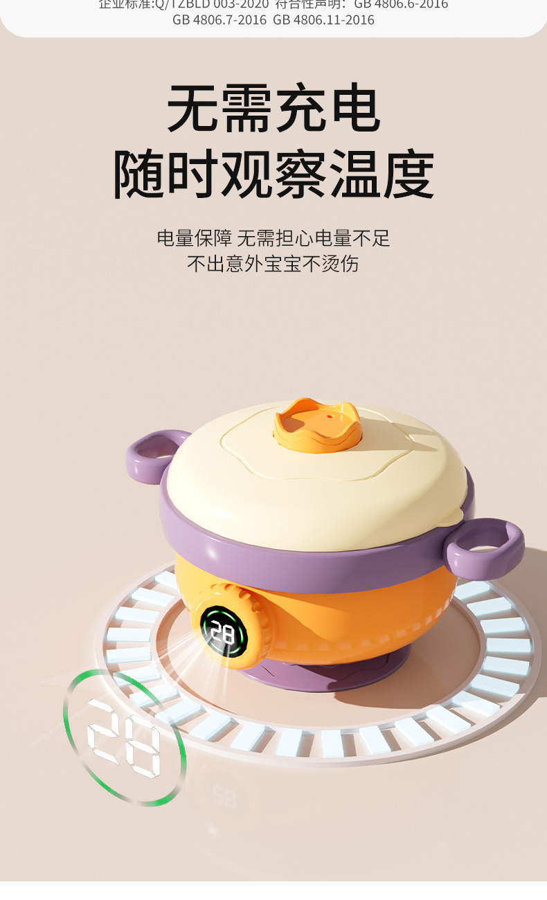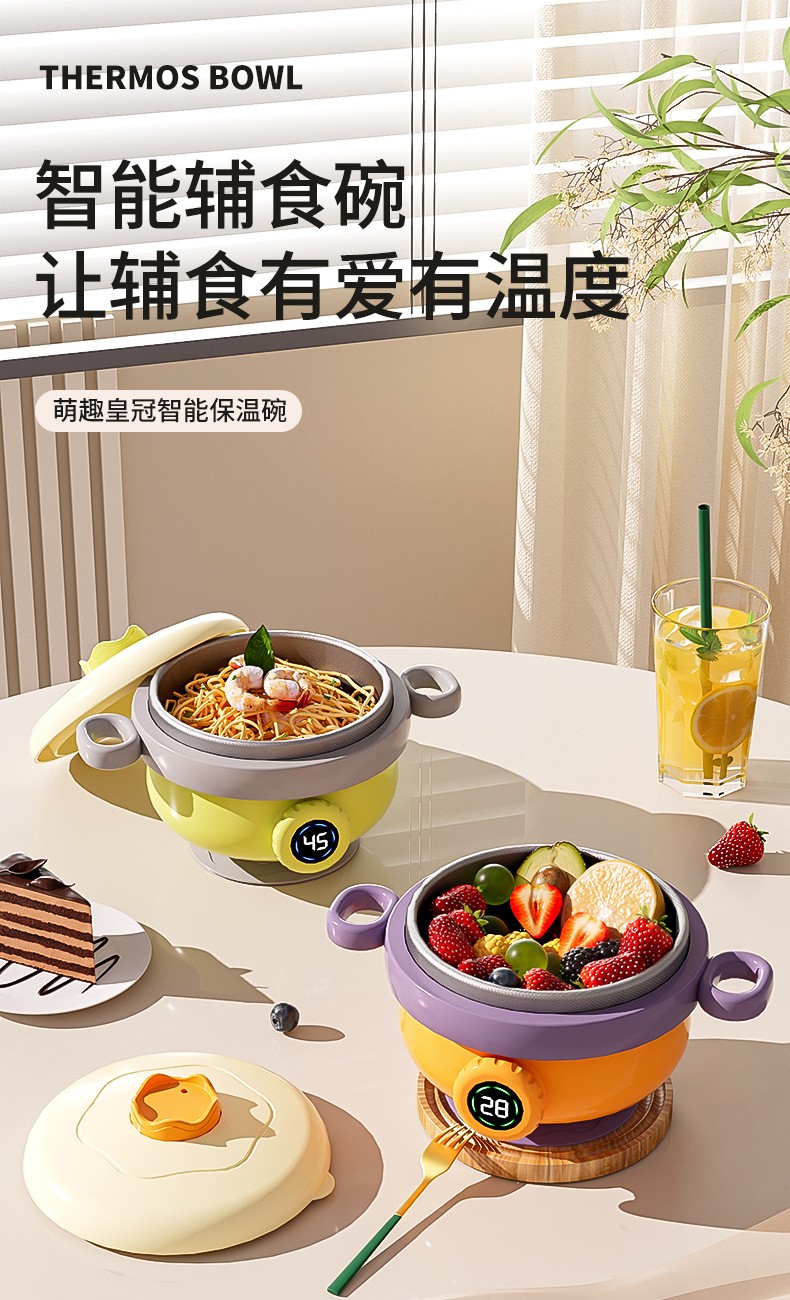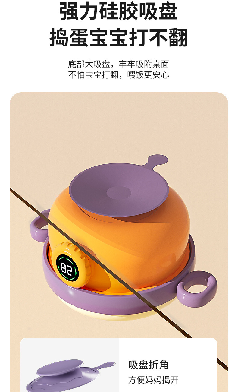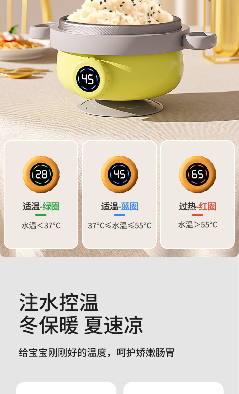 新款婴儿辅食碗宝宝专用注水保温碗恒温家用便携注水保温高清屏显