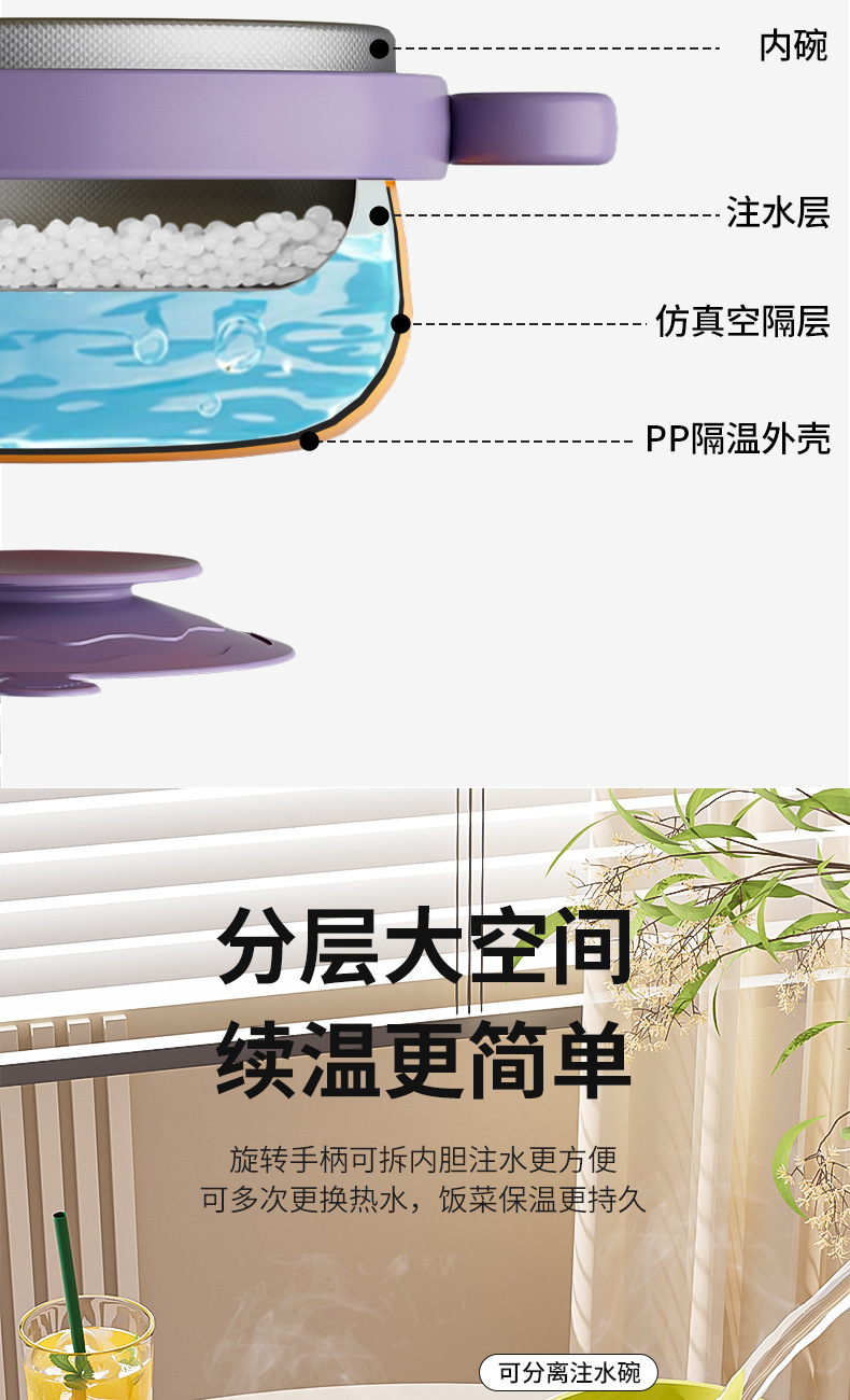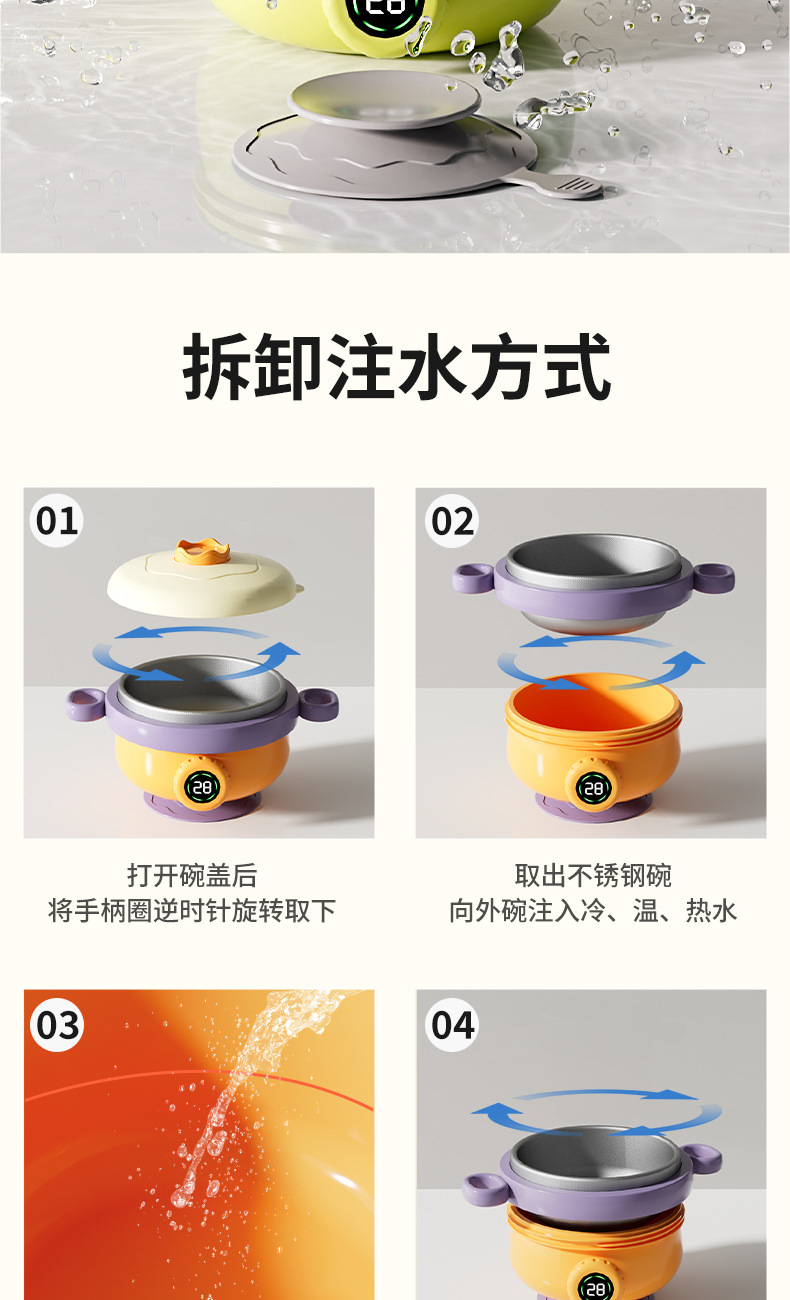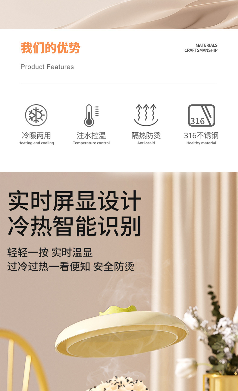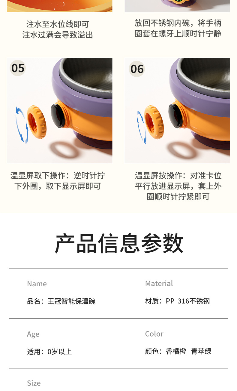 新款婴儿辅食碗宝宝专用注水保温碗恒温家用便携注水保温高清屏显
