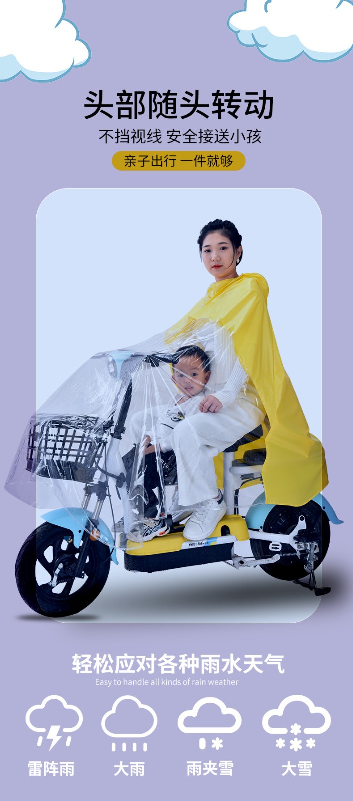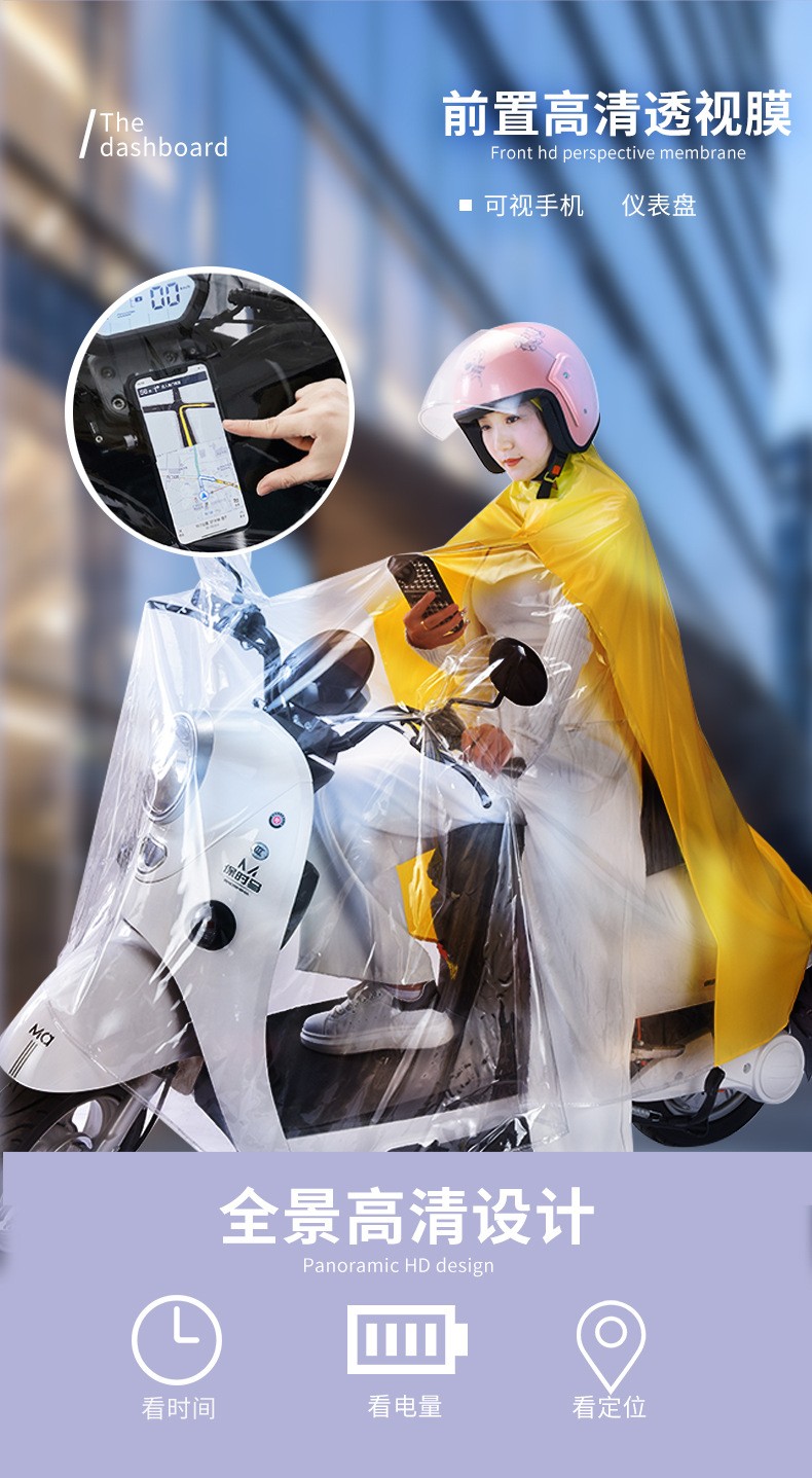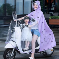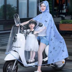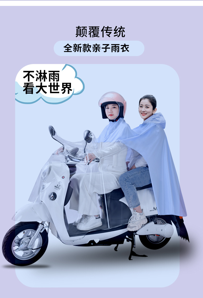 电动车成人透明全身防暴雨单人带小孩电车雨 披批发