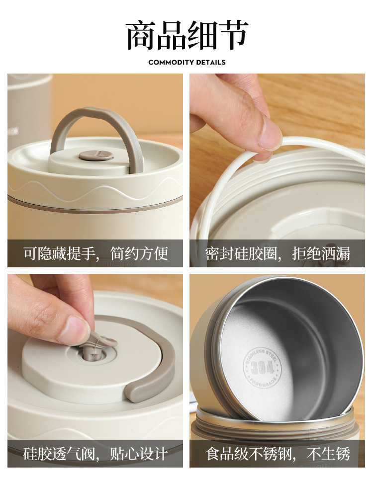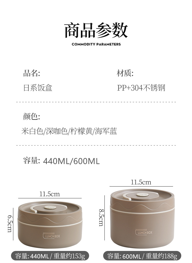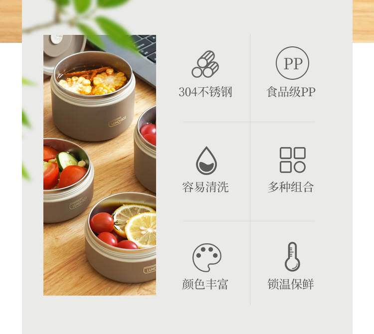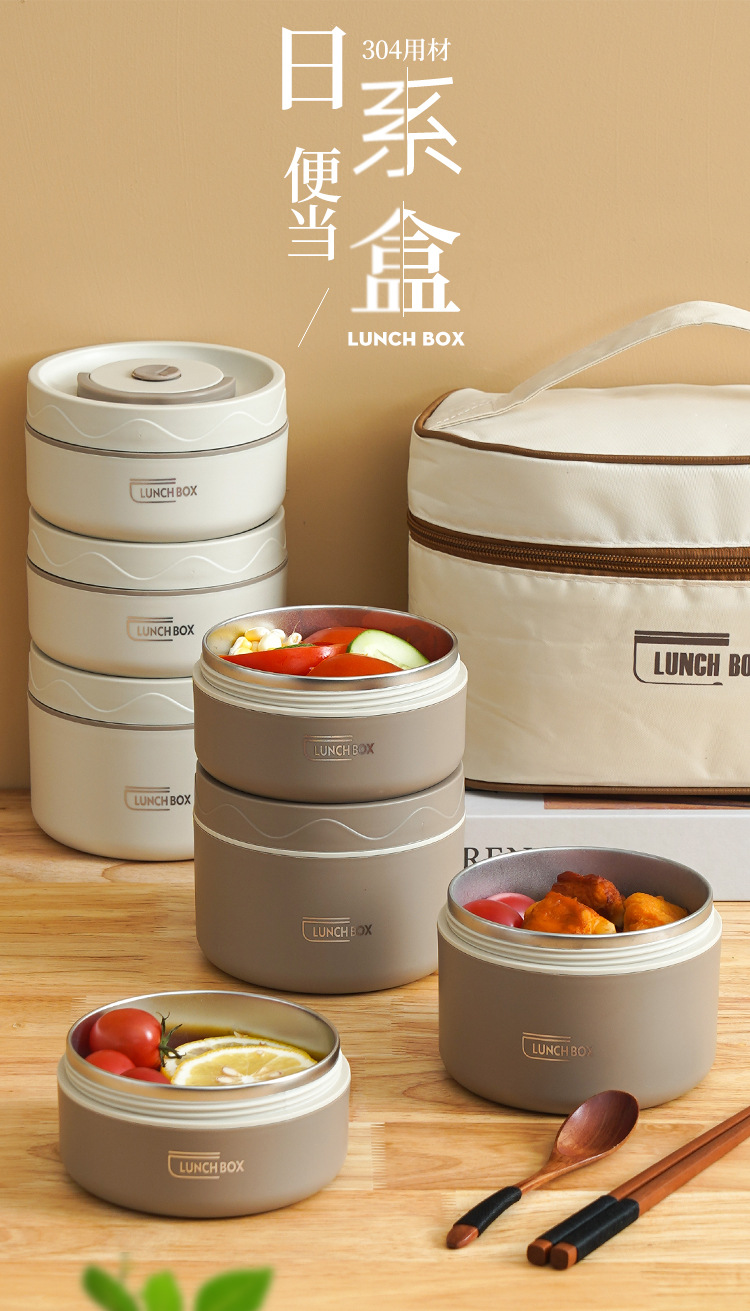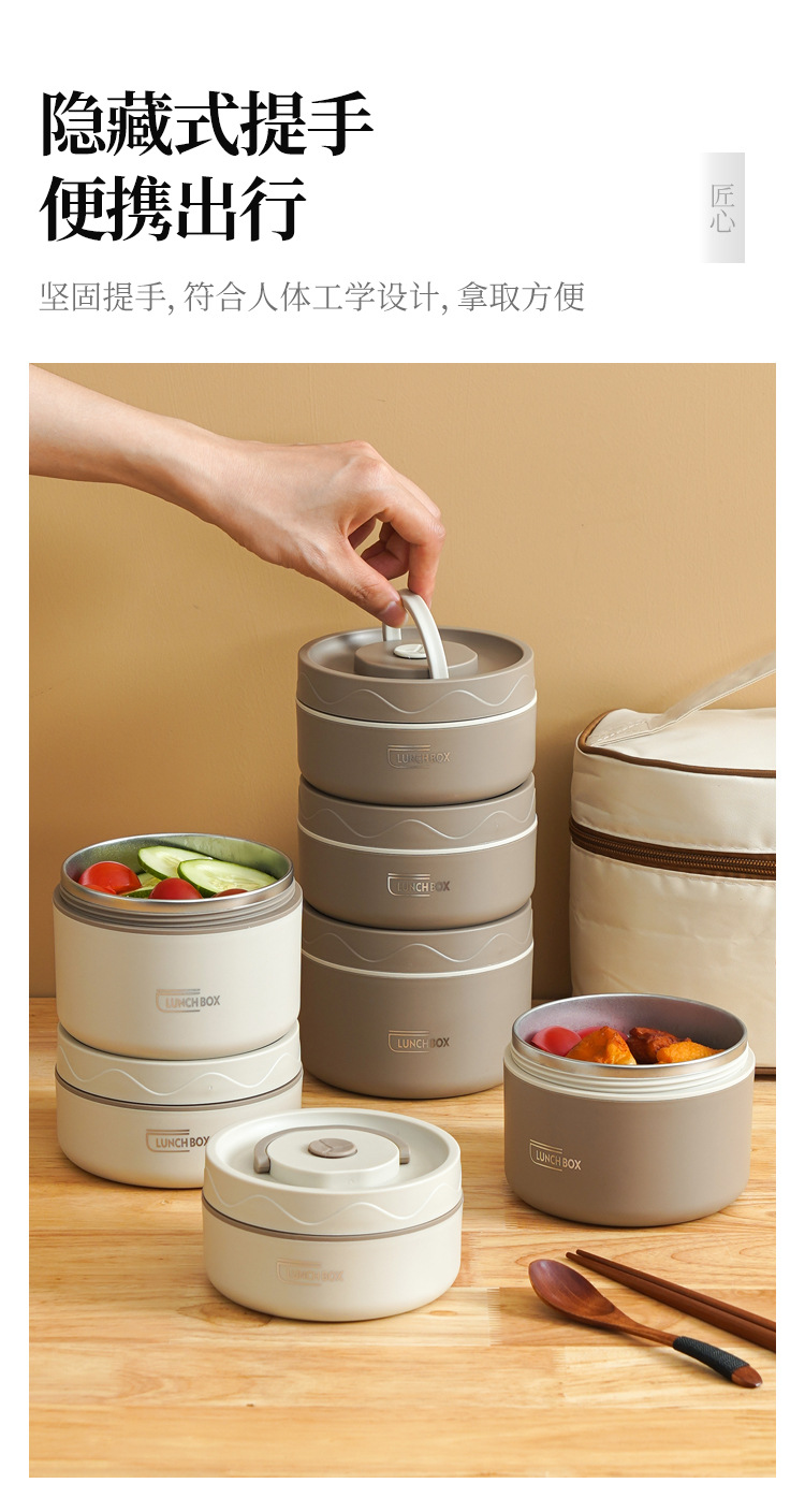 304不锈钢保温饭盒双层便携餐盒圆形多层带盖密封便当盒
