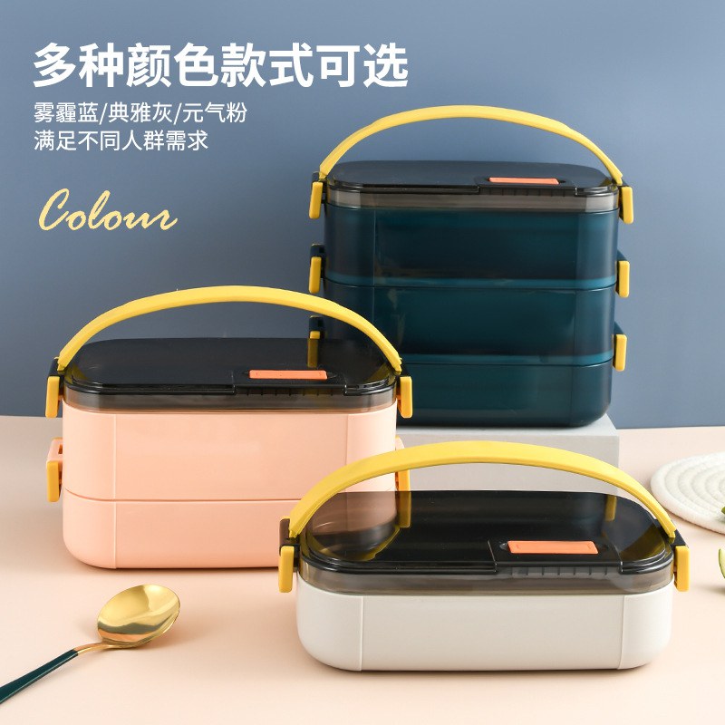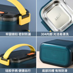 日式304多层方形饭盒带提手上班族饭盒学生分格保温盒密封保温饭