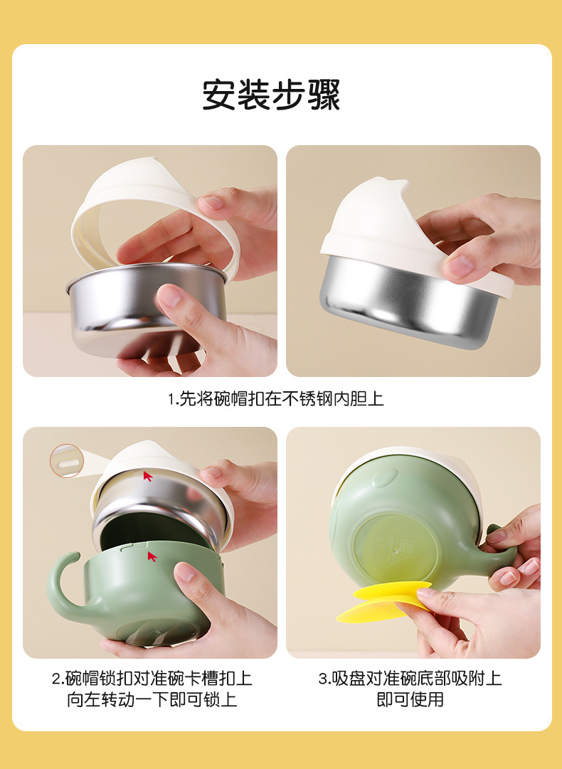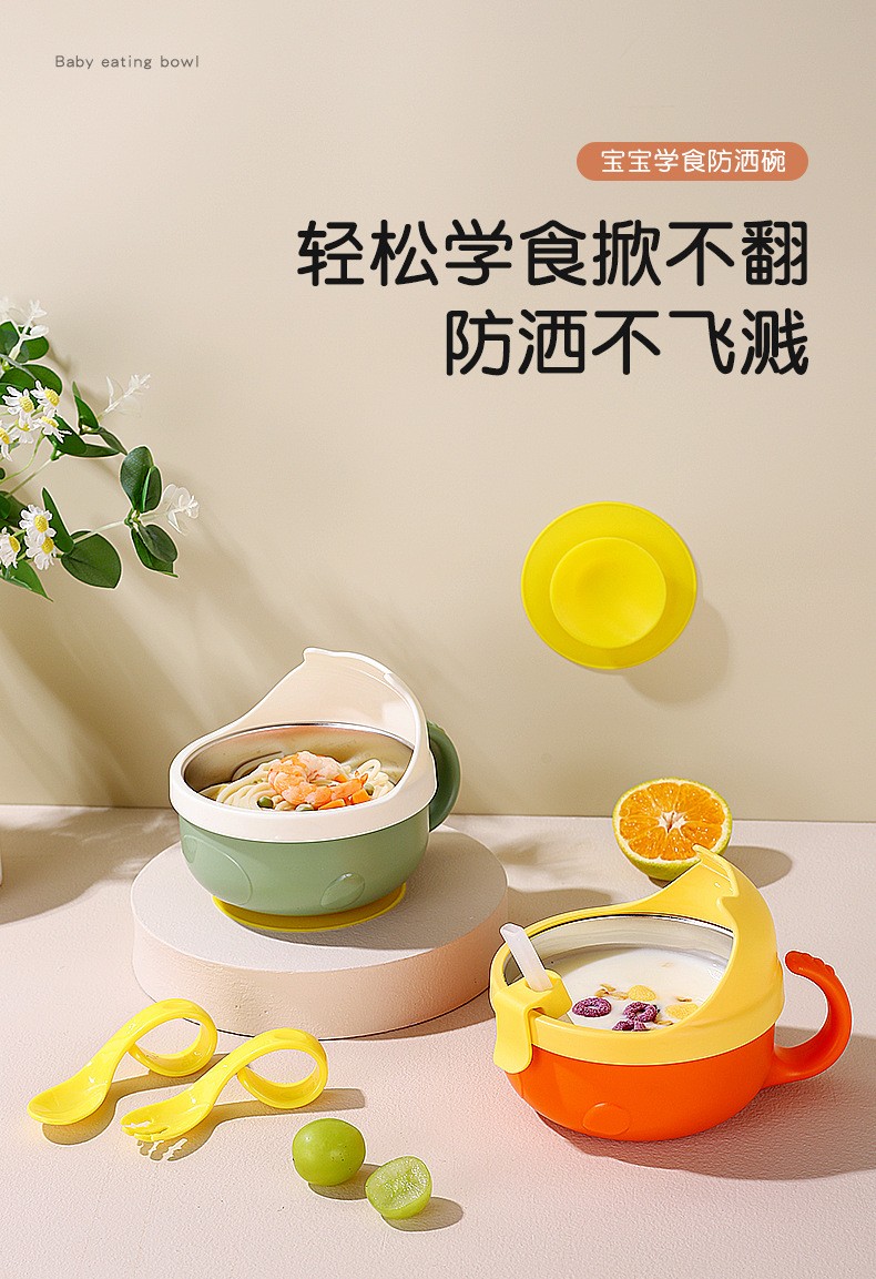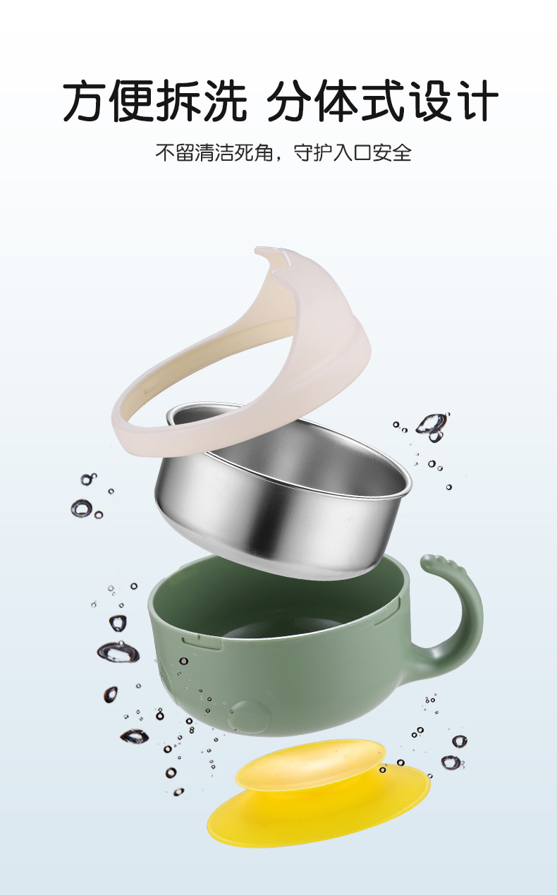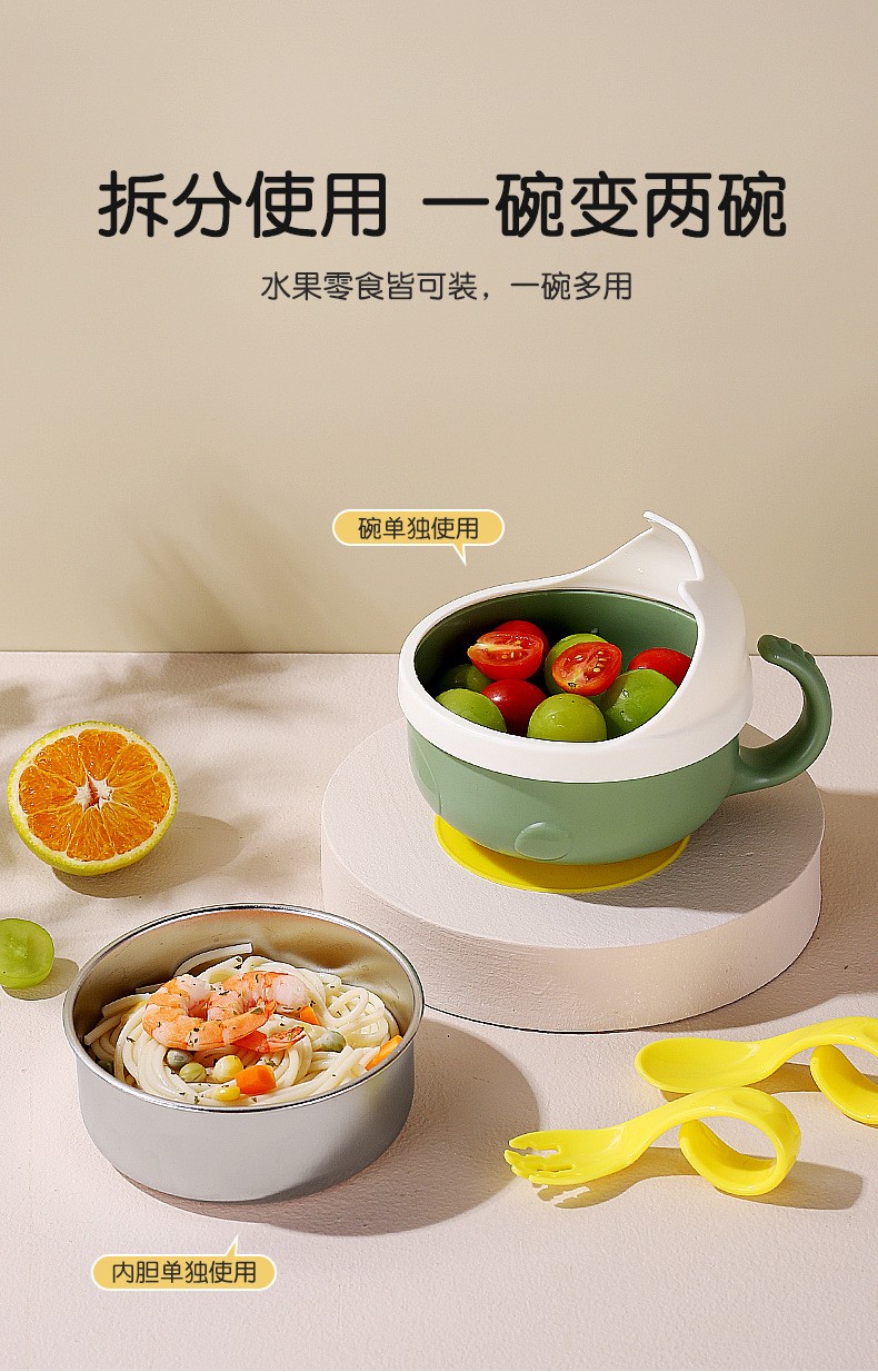 宝宝辅食碗学吃饭训练吸盘碗可拆卸316不锈钢防洒碗婴儿防摔防烫