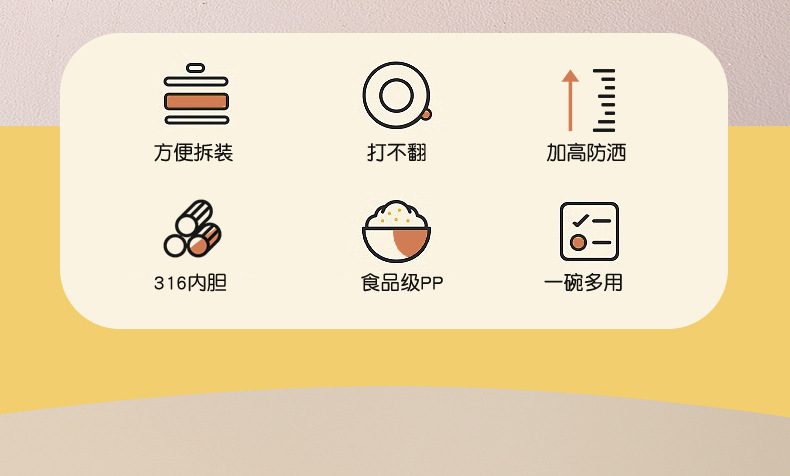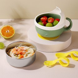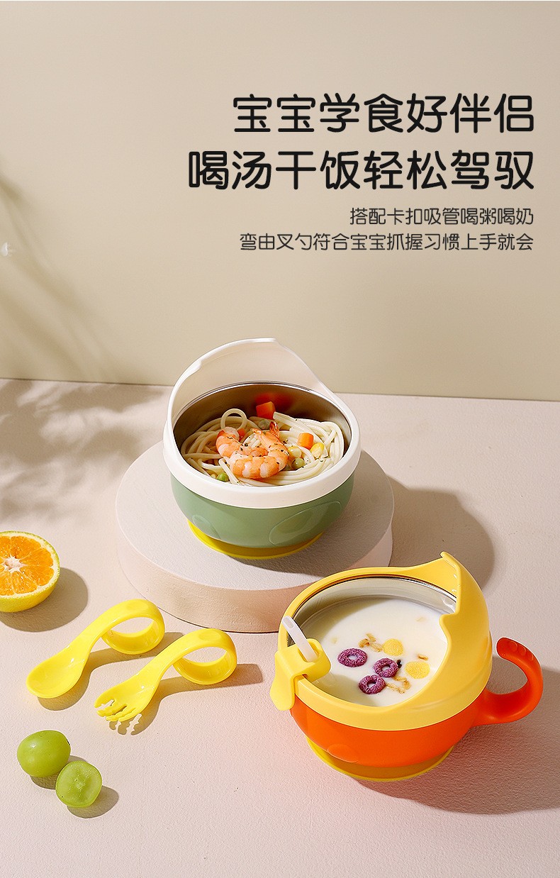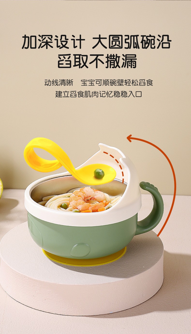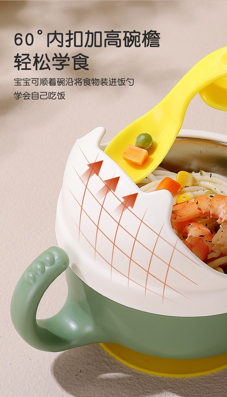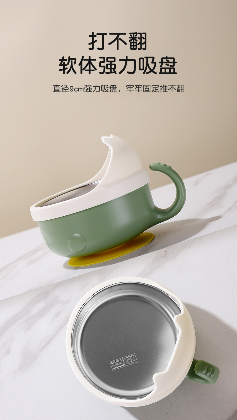 宝宝辅食碗学吃饭训练吸盘碗可拆卸316不锈钢防洒碗婴儿防摔防烫