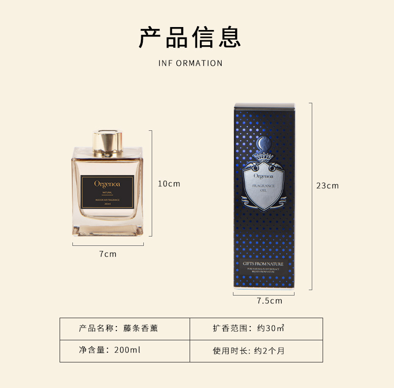 200ml无火藤条简约香薰卧室书房卫生间空气清新除味香水香氛