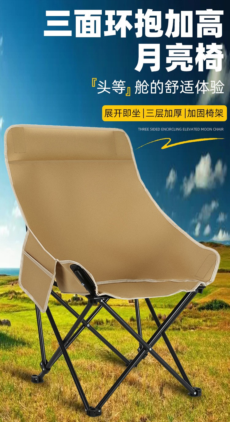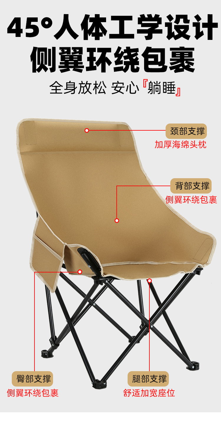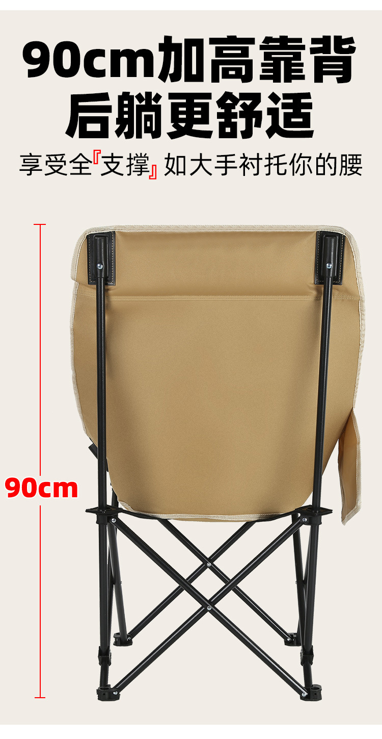 户外便携高背折叠椅加高圆弧月亮椅露营钓鱼椅休闲沙滩太空椅