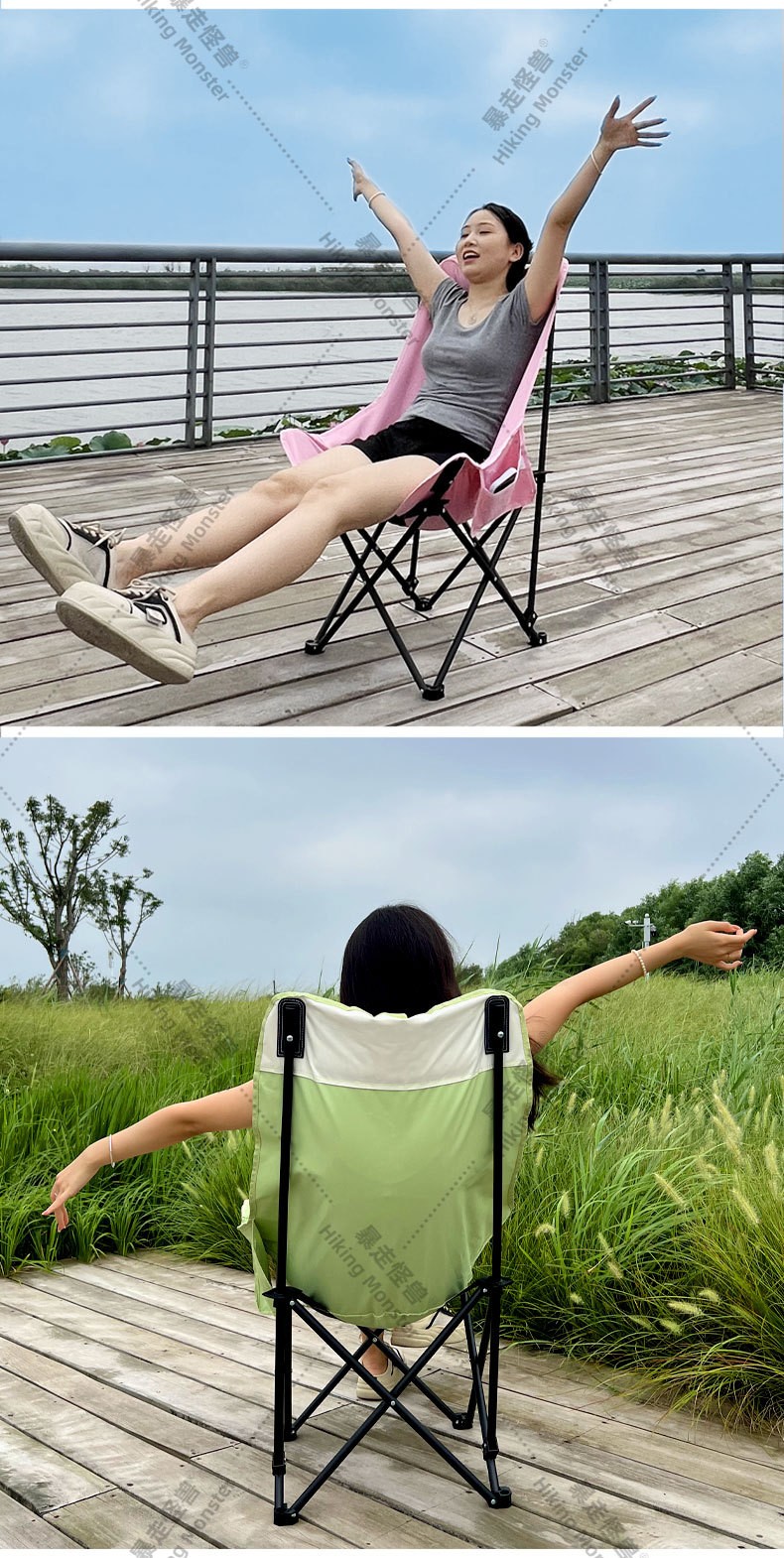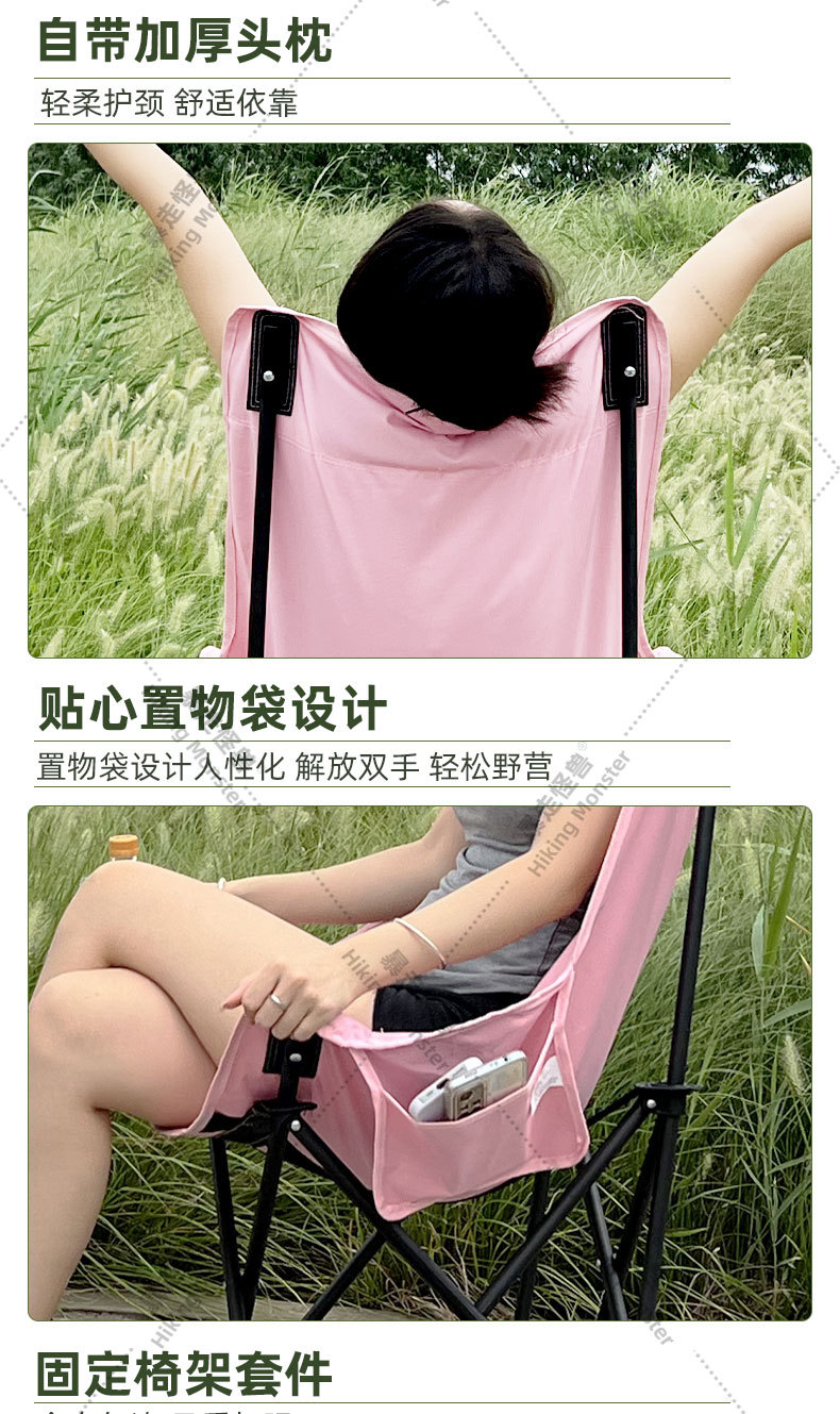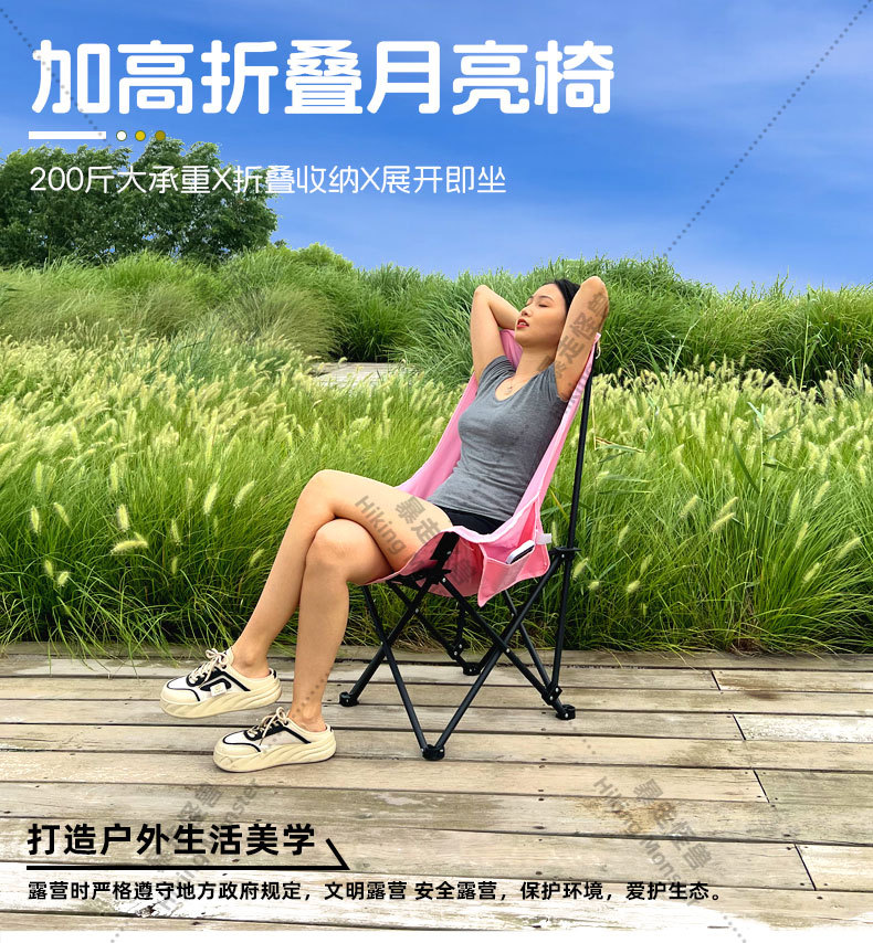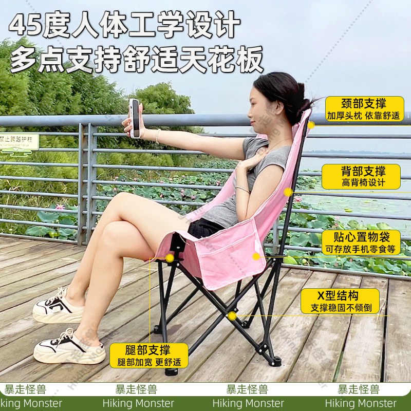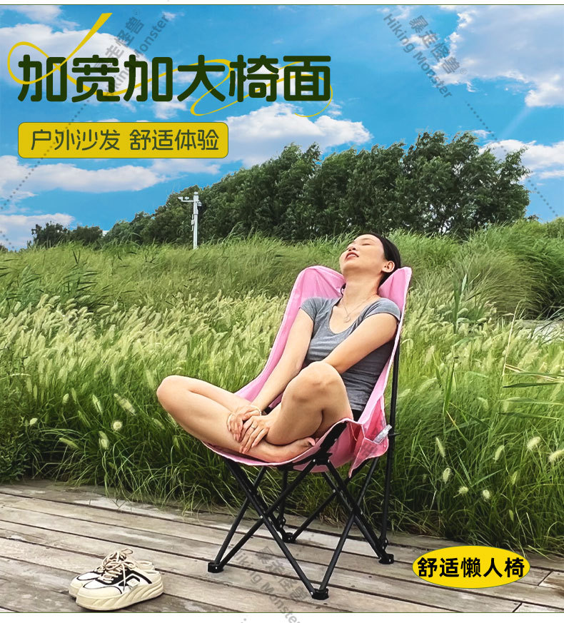 2024高靠背月亮椅折叠椅子有靠背一件代发舒适懒人椅