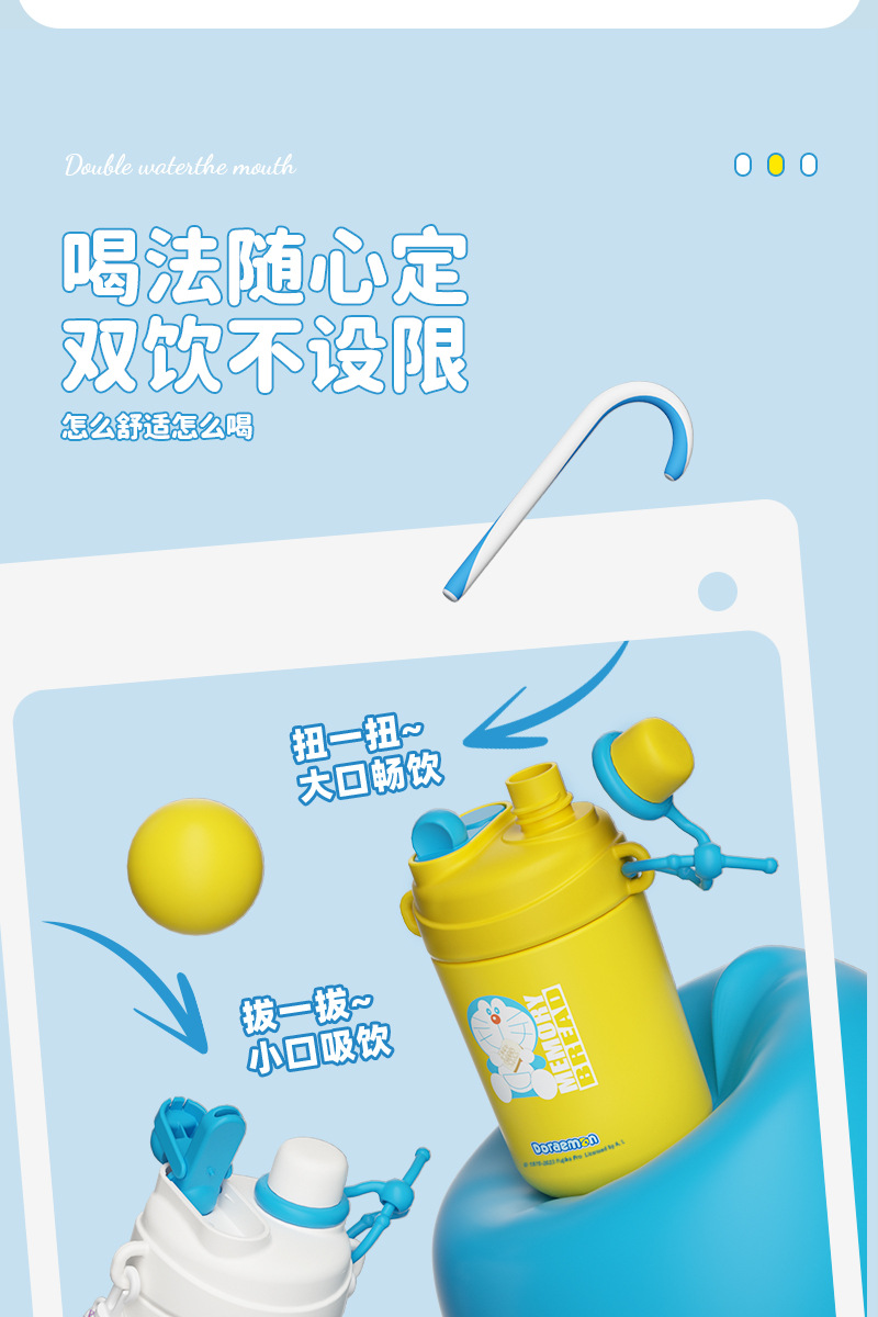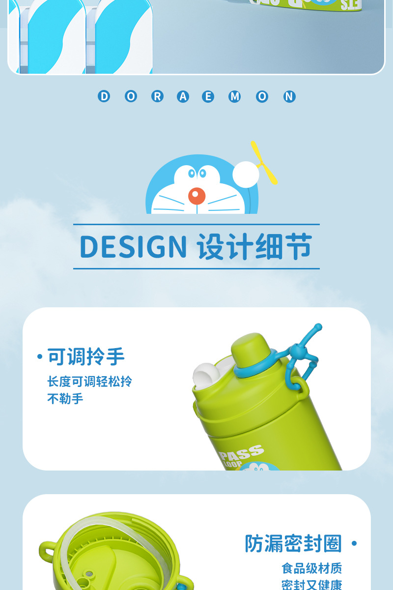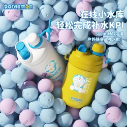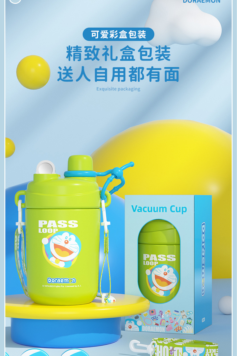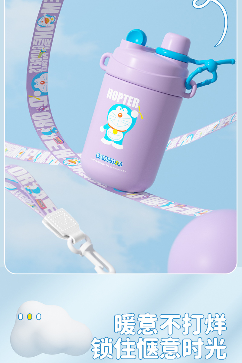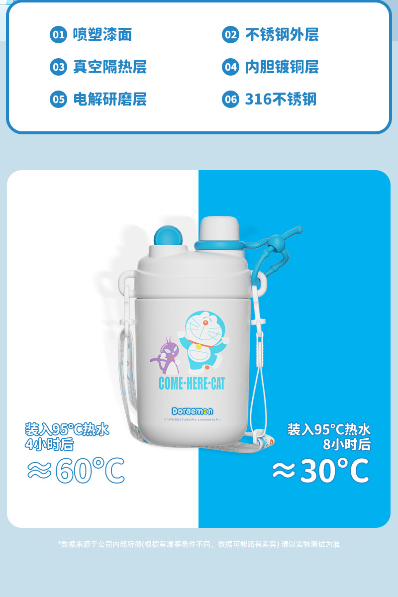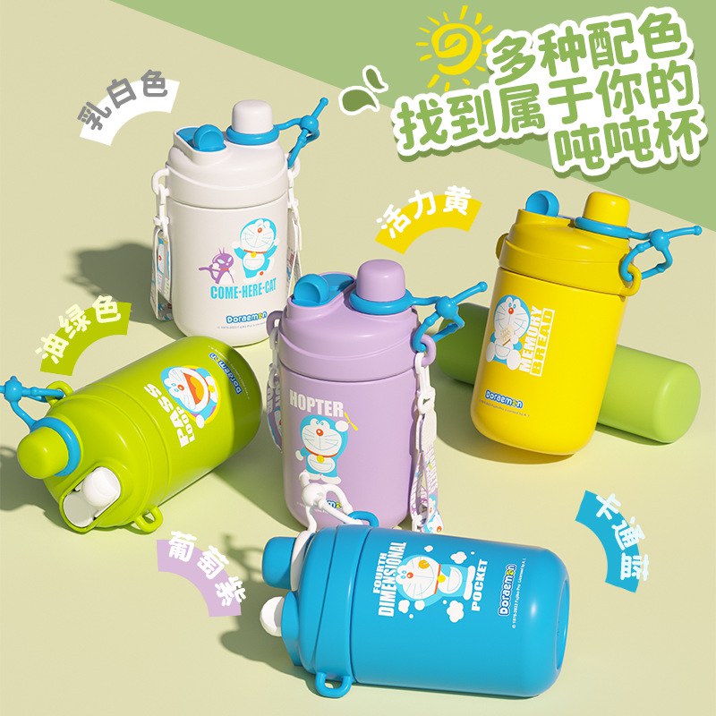 哆啦a梦正品授权高颜值316不锈钢双饮水杯学生运动便携斜挎水杯