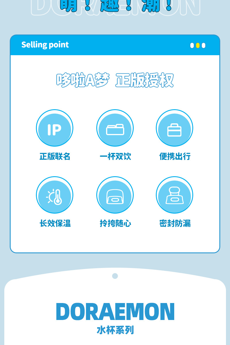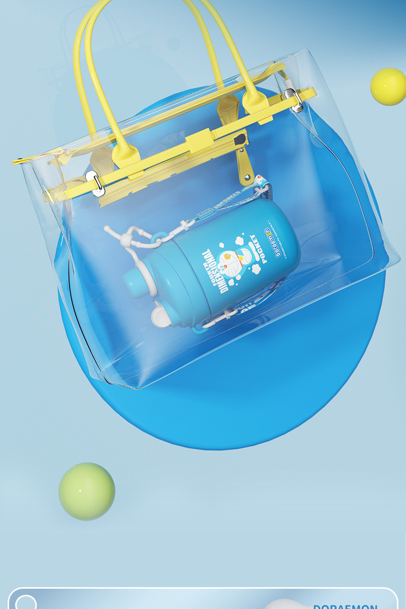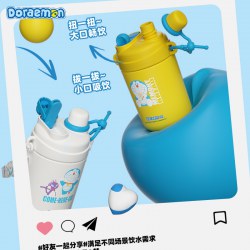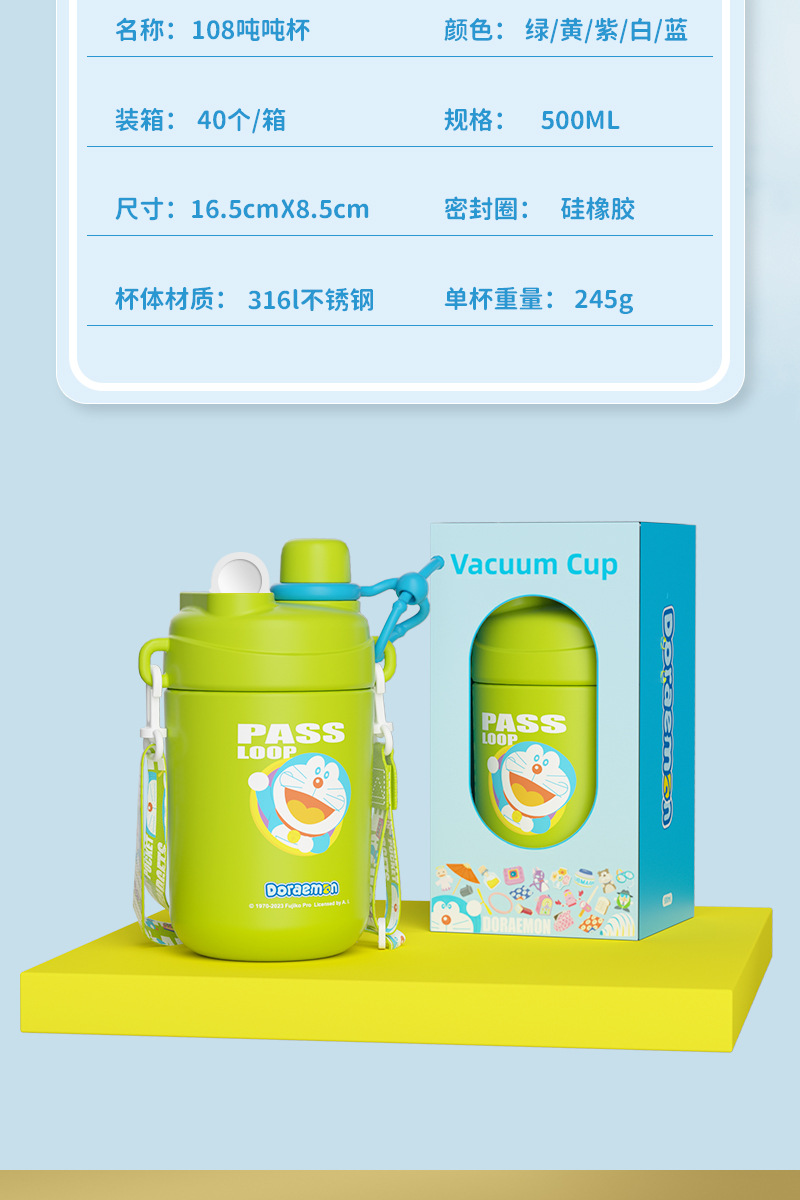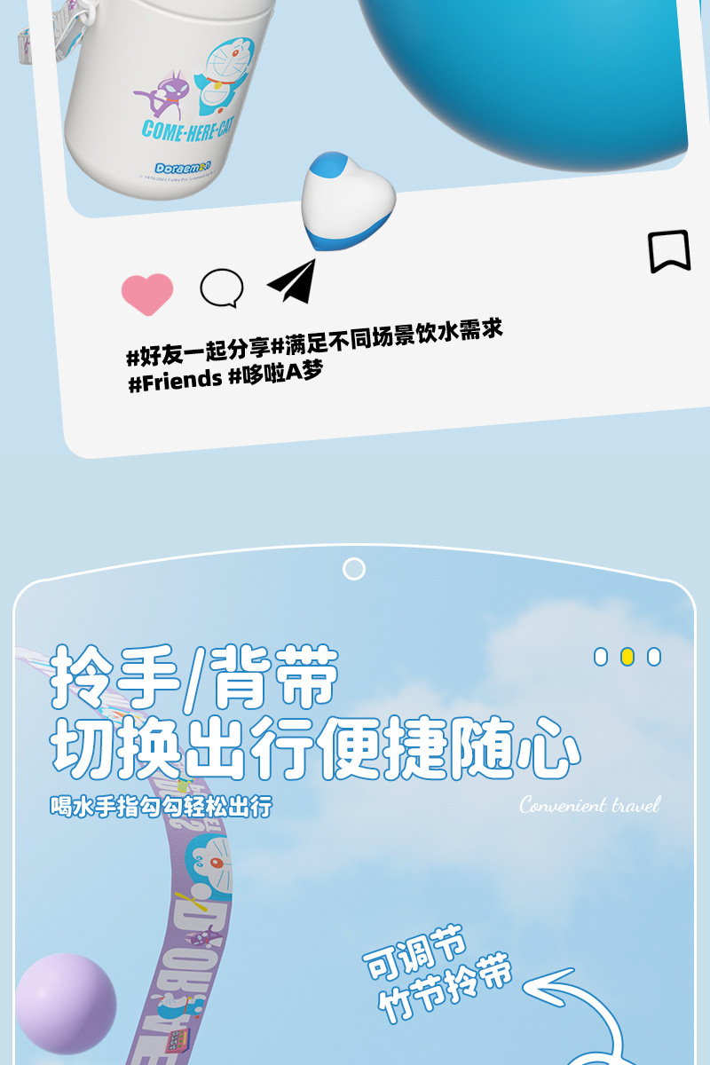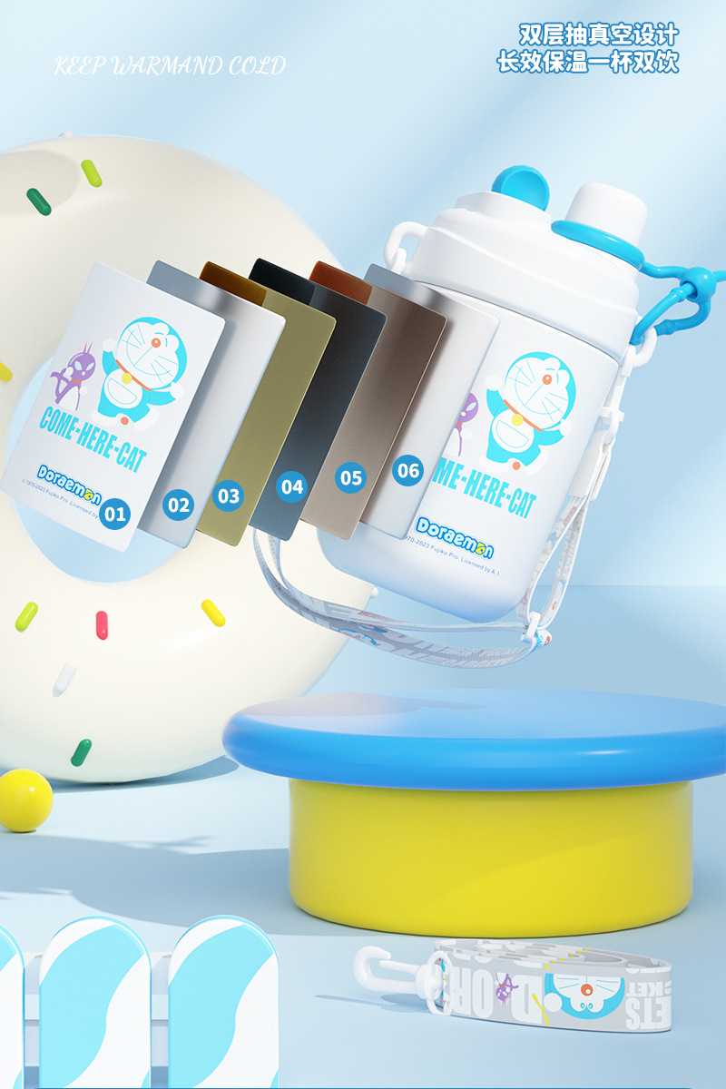 哆啦a梦正品授权高颜值316不锈钢双饮水杯学生运动便携斜挎水杯