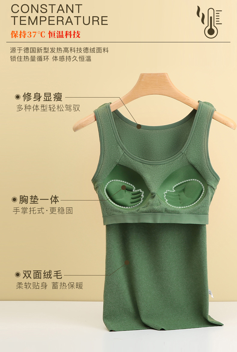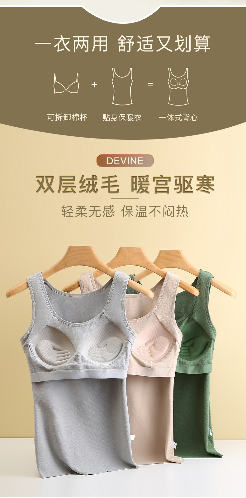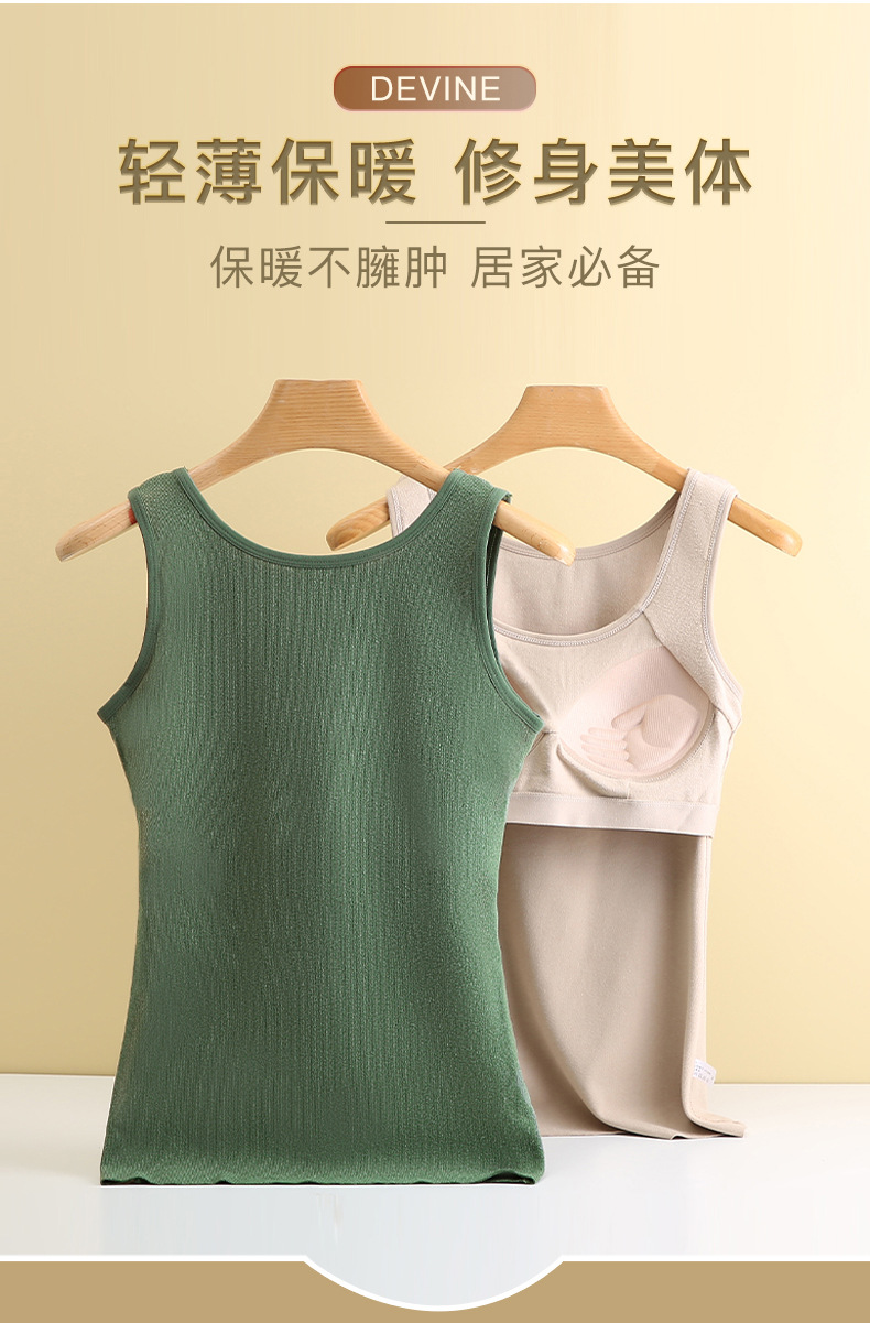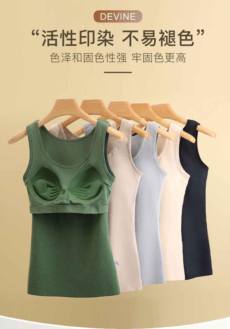 德绒保暖背心女款内衣冬季带胸垫加绒加厚内搭打底衫修身秋上衣