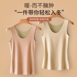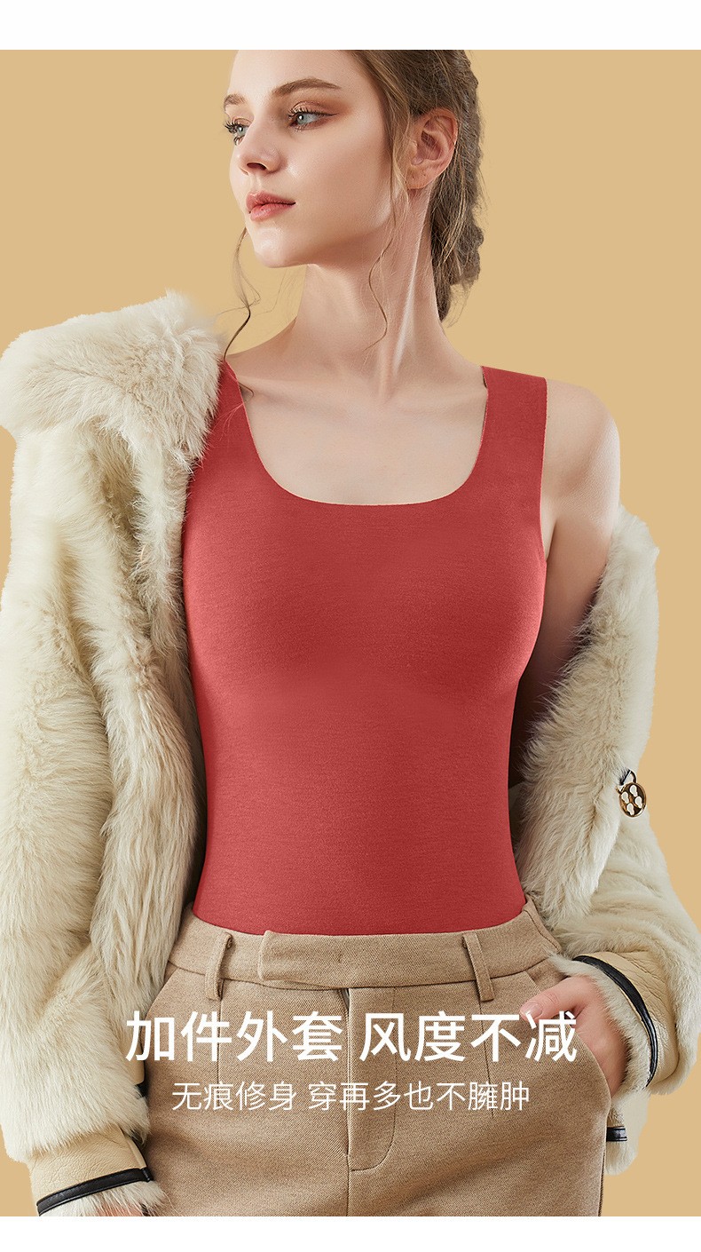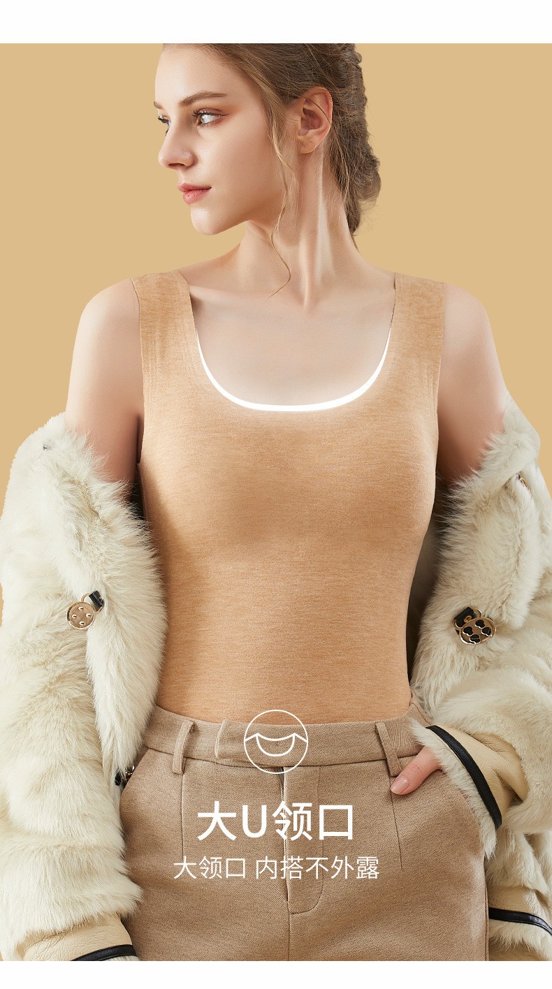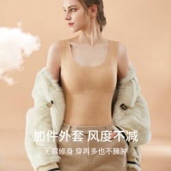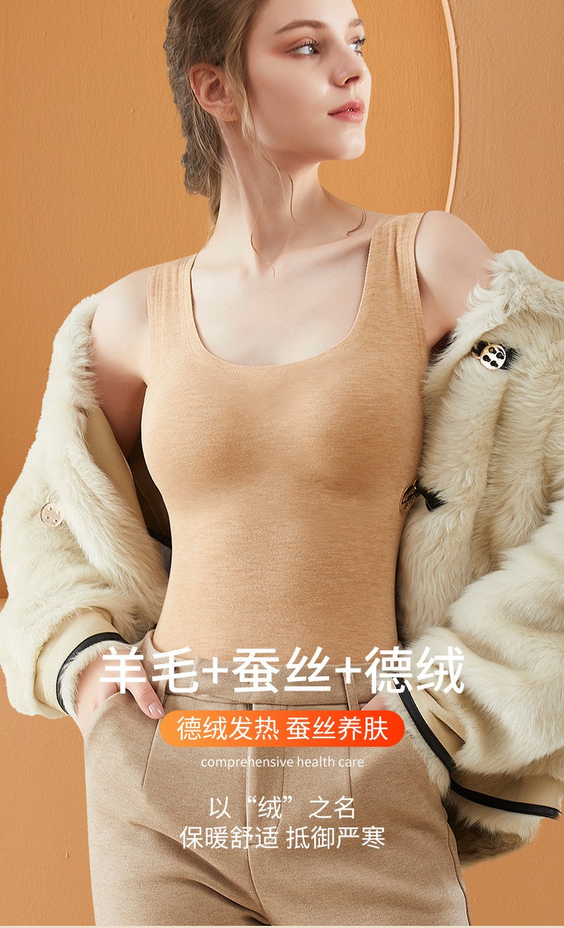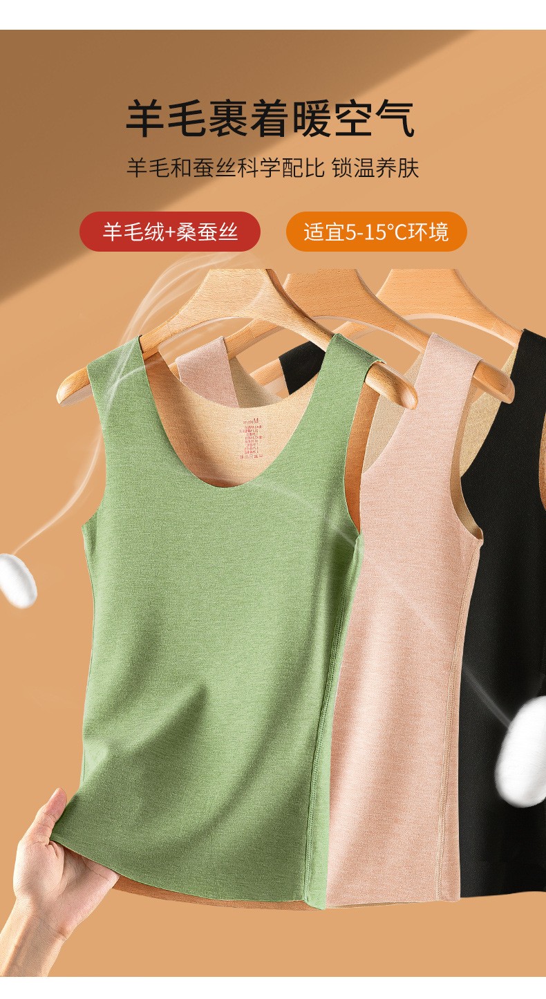 蚕丝保暖背心女士加绒加厚自发热无痕打底衫上衣含羊毛内衣冬季