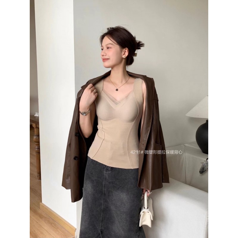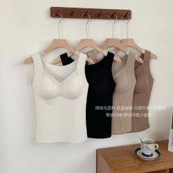 秋冬磨毛保暖背心女带胸垫免穿文胸一体打底内衣无痕修身内搭上衣
