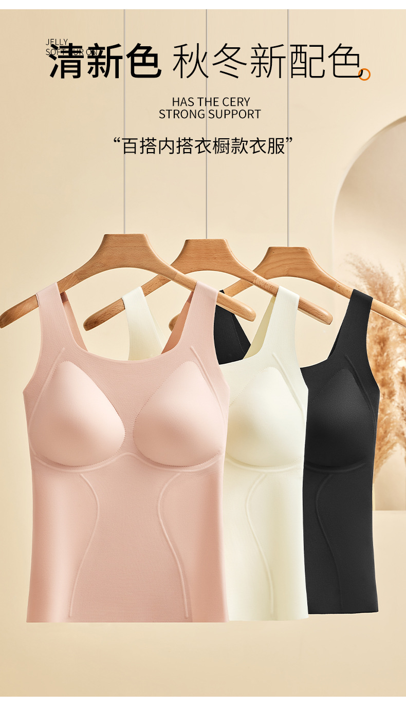2024秋冬保暖背心内衣女带胸垫无痕修身显瘦免穿文胸内搭打底上衣