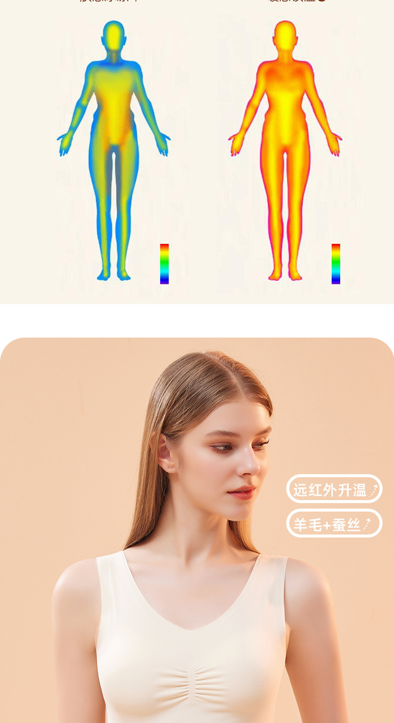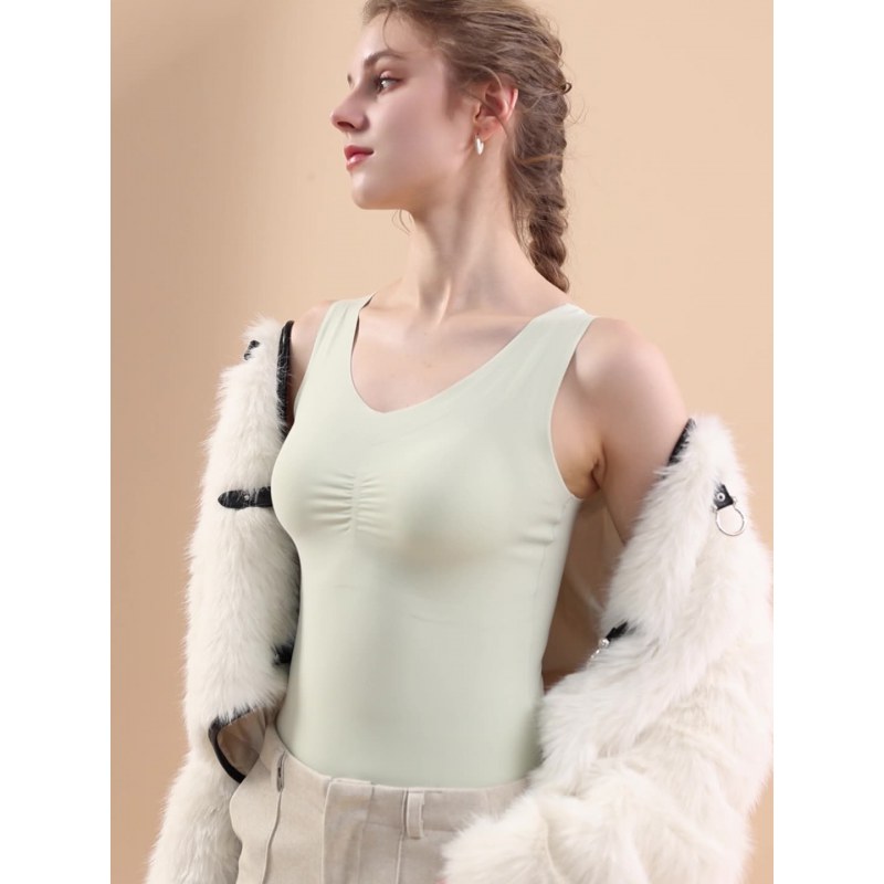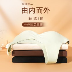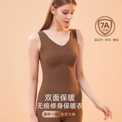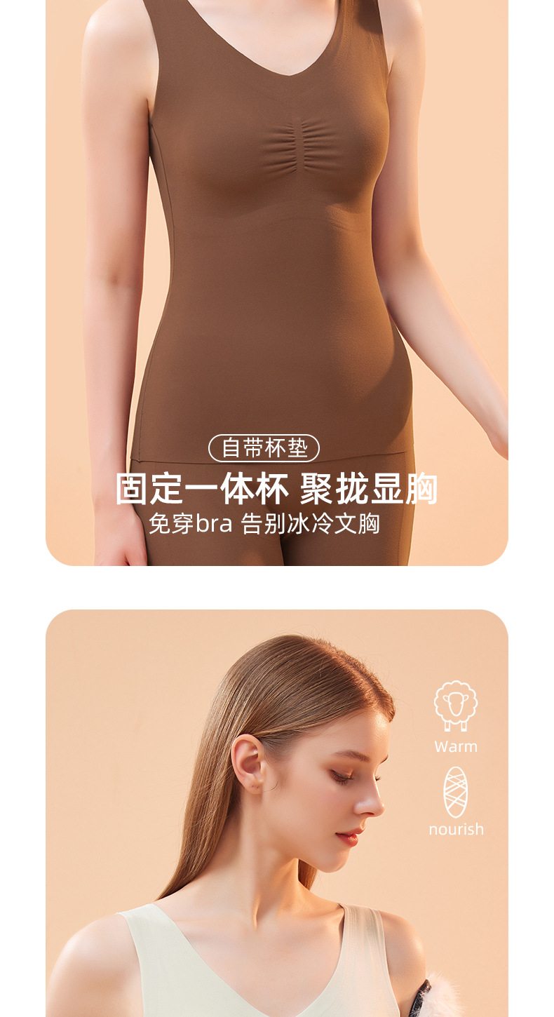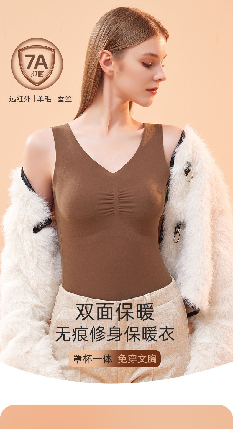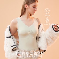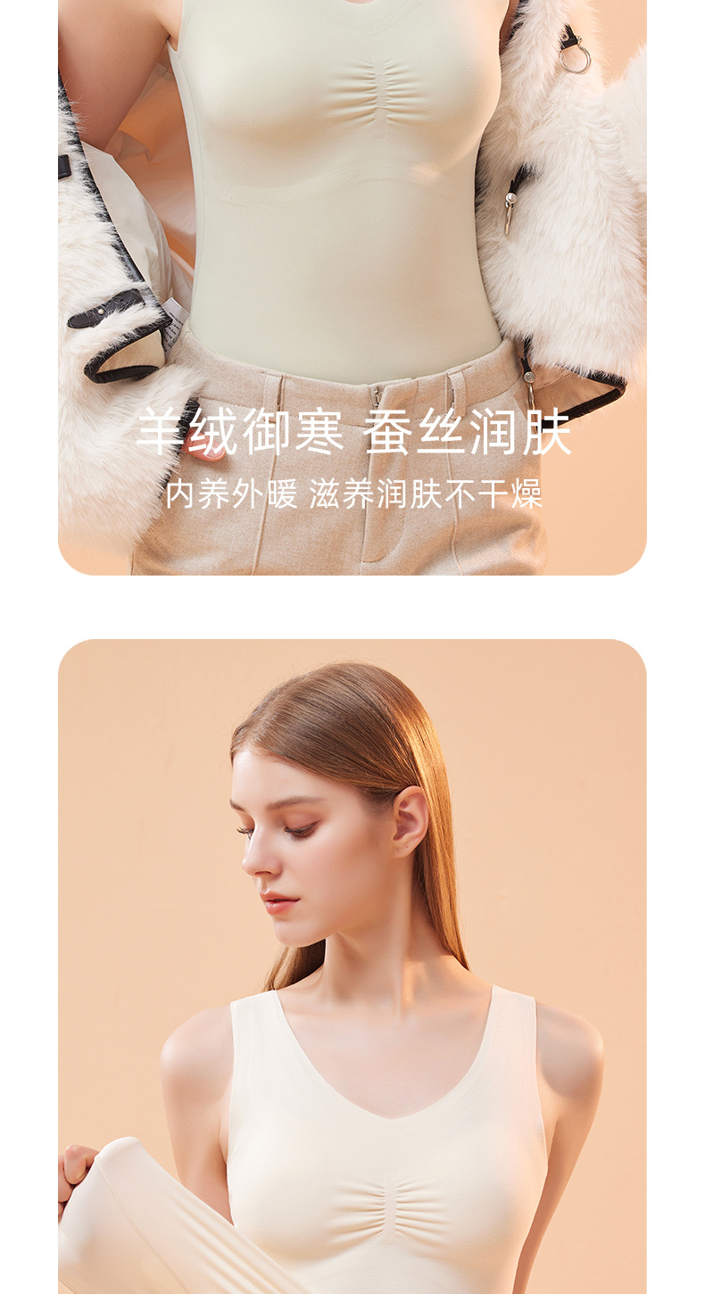 羊毛蚕丝保暖背心女带胸垫一体秋冬加绒加厚德绒发热升温打底上衣