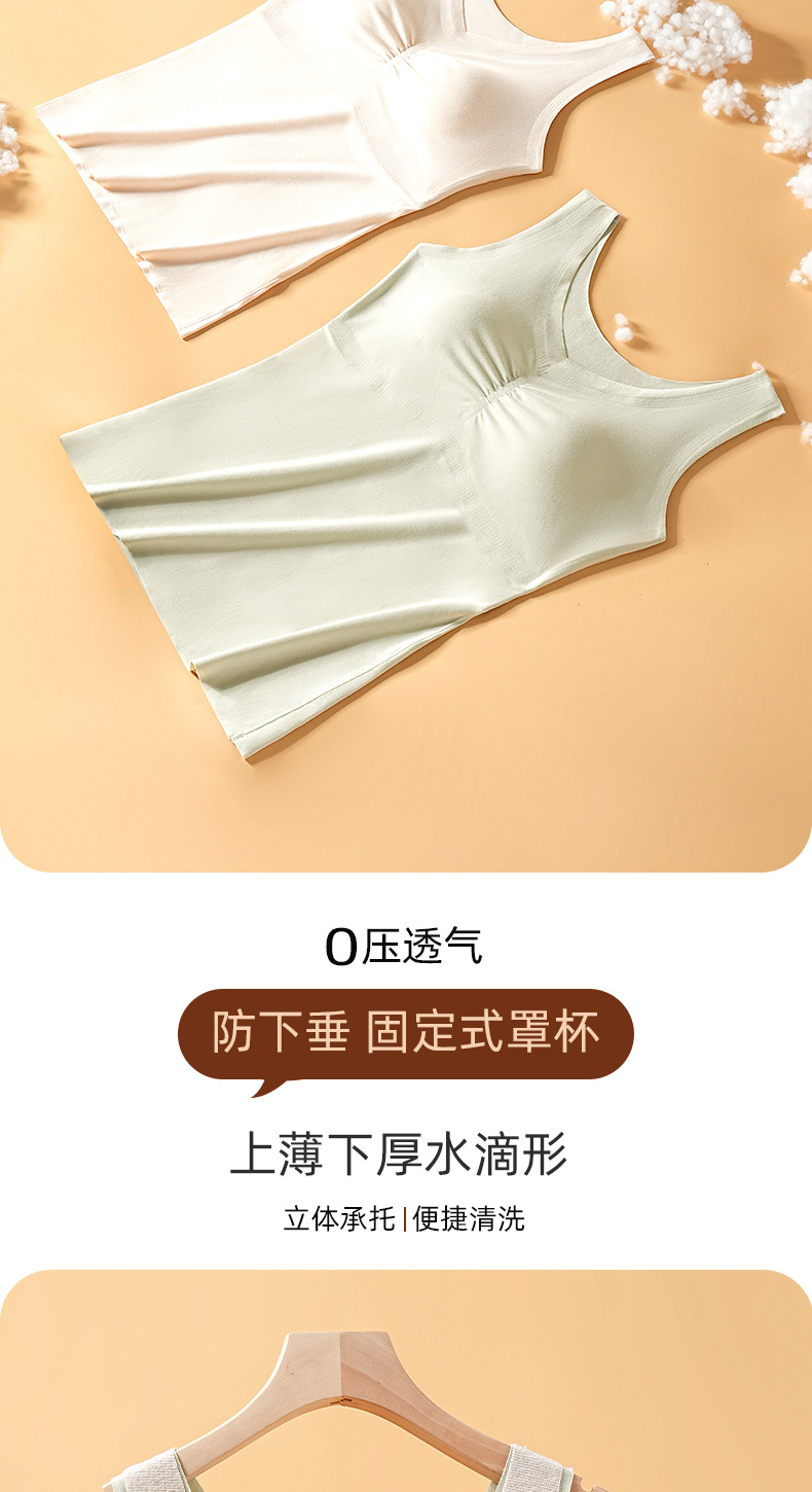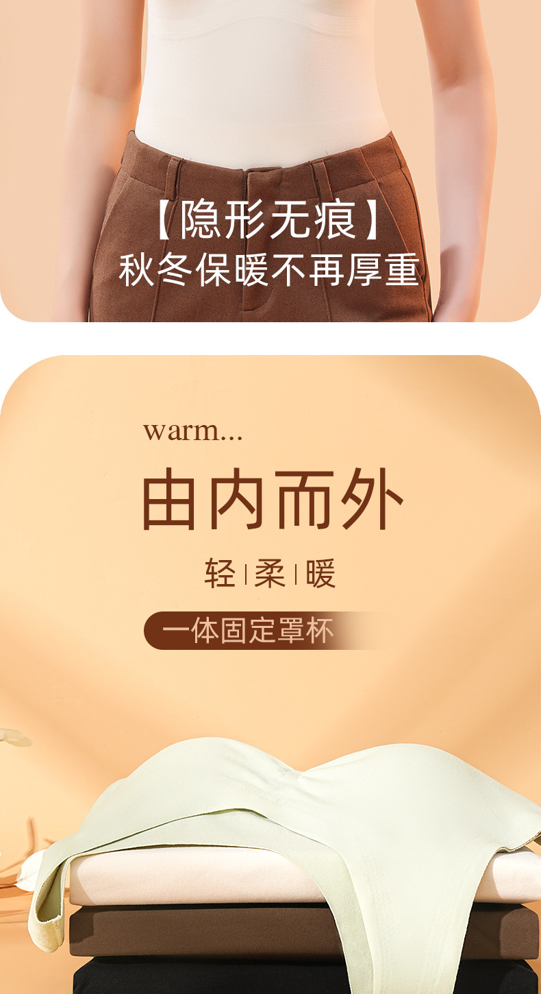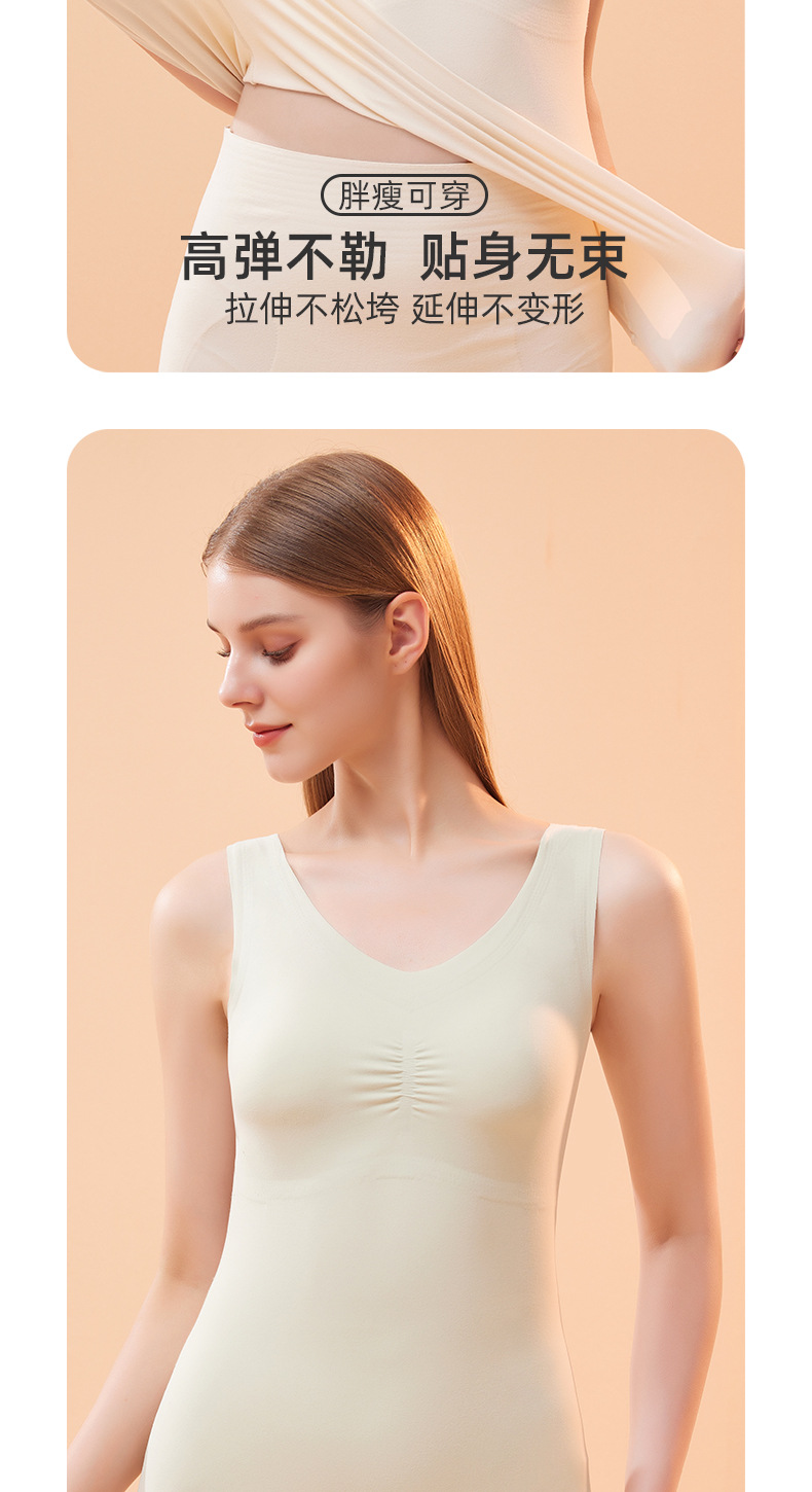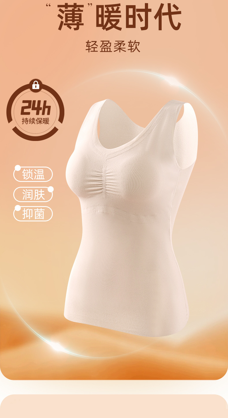 羊毛蚕丝保暖背心女带胸垫一体秋冬加绒加厚德绒发热升温打底上衣