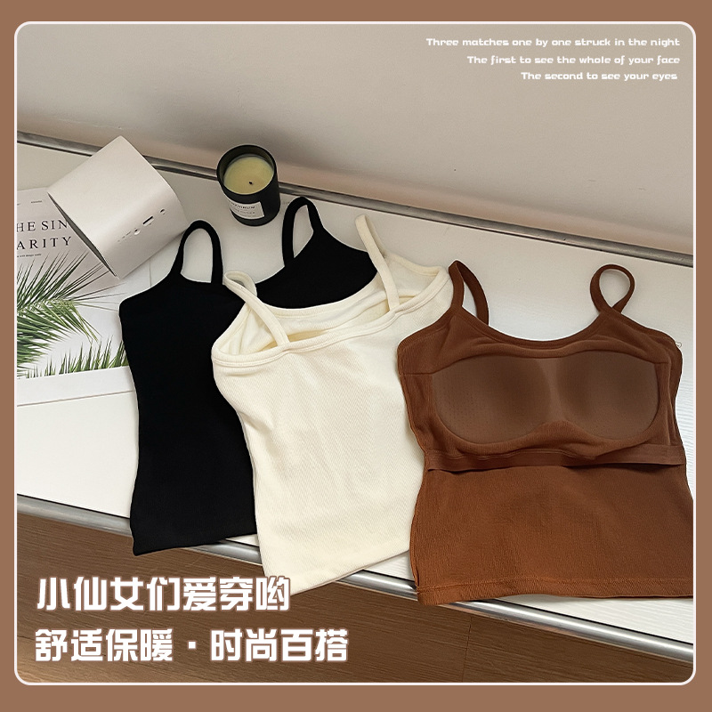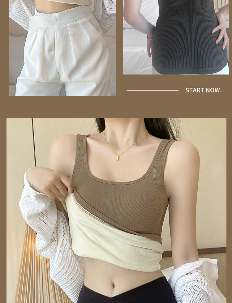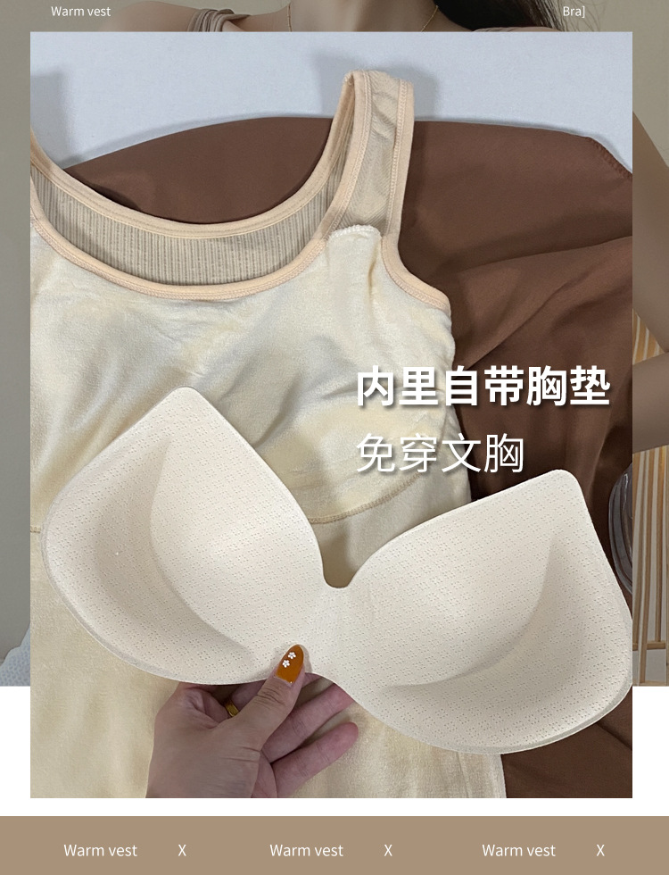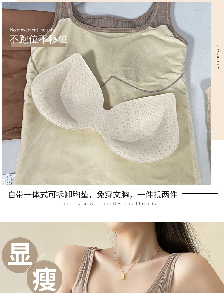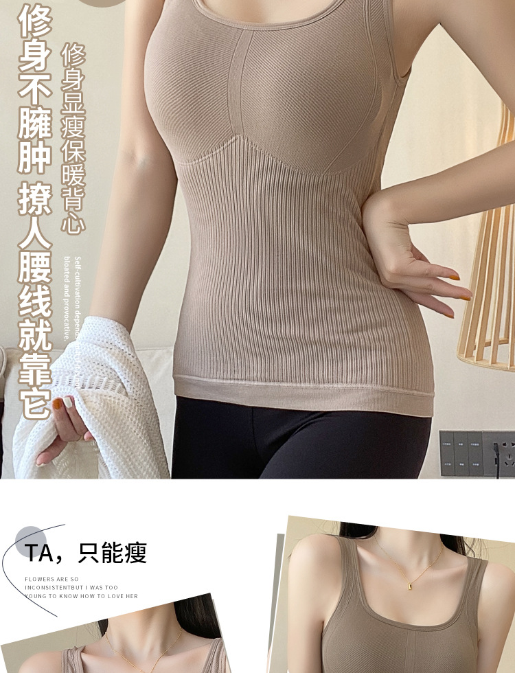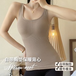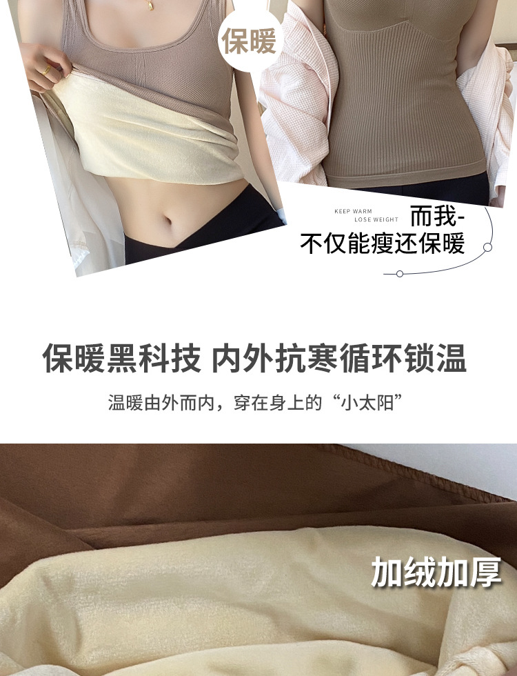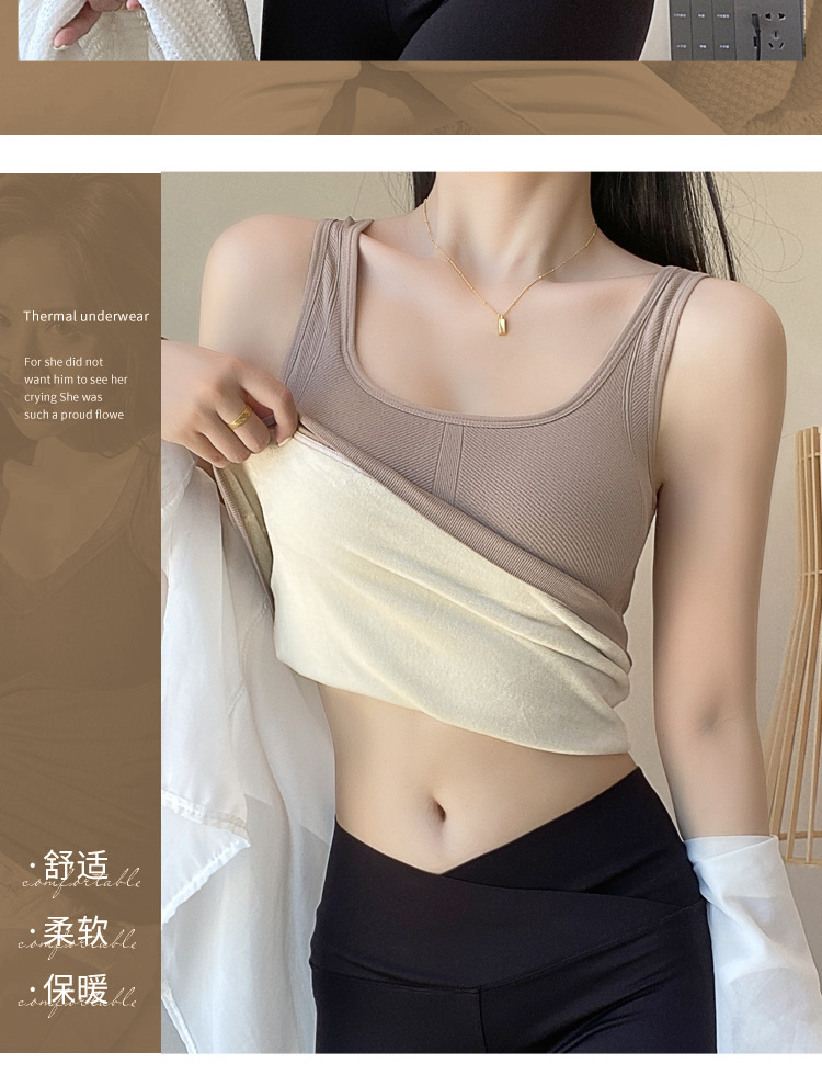 秋冬新款加厚加绒U领保暖内衣 带胸垫美背保暖背心女士内搭打底衫