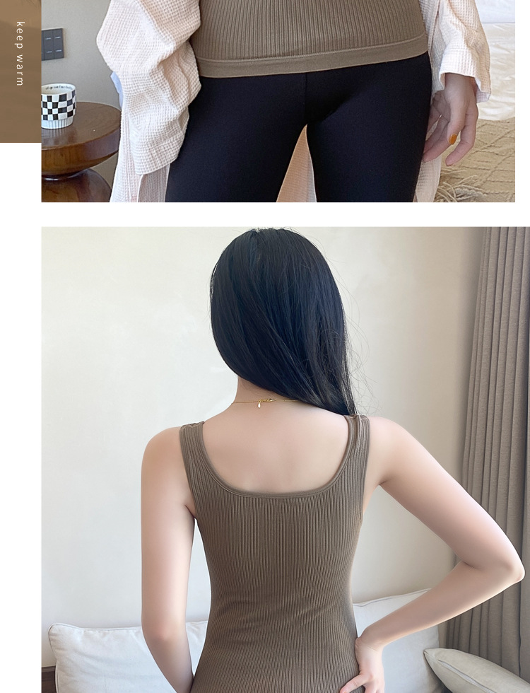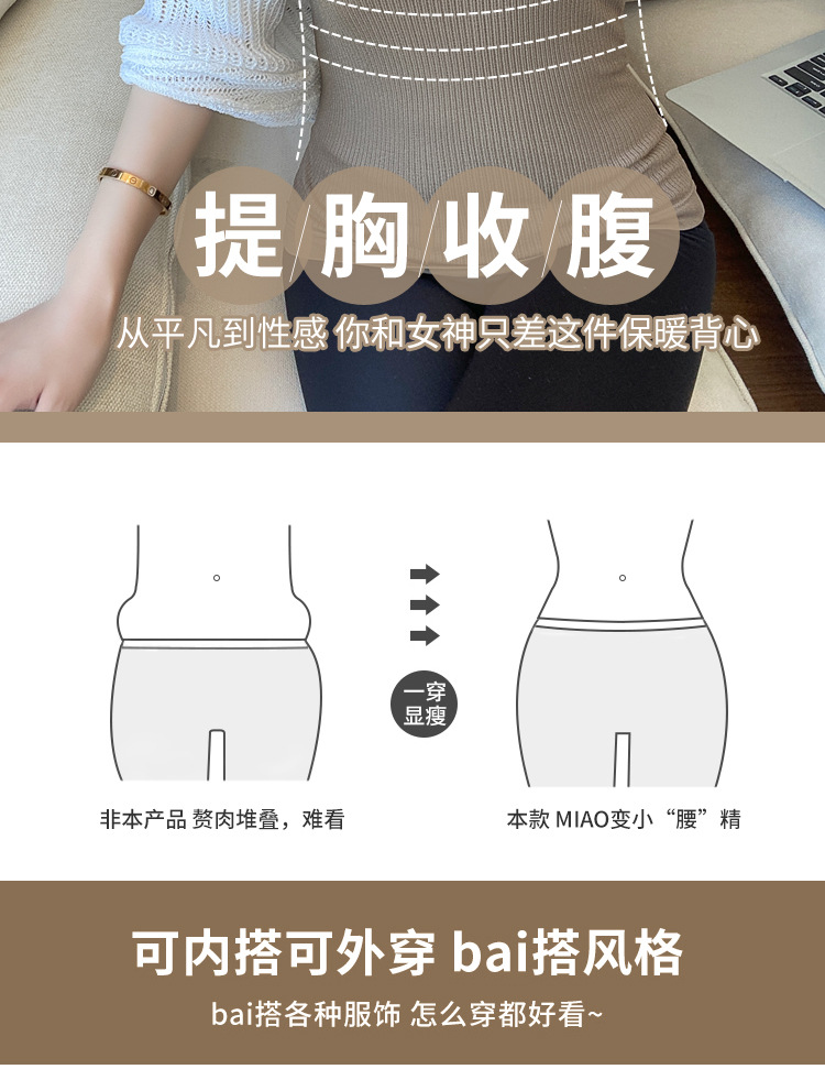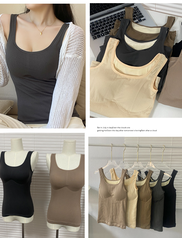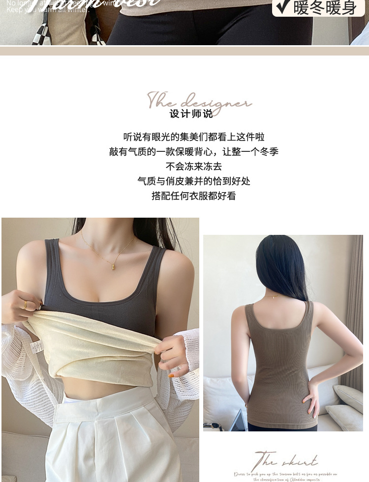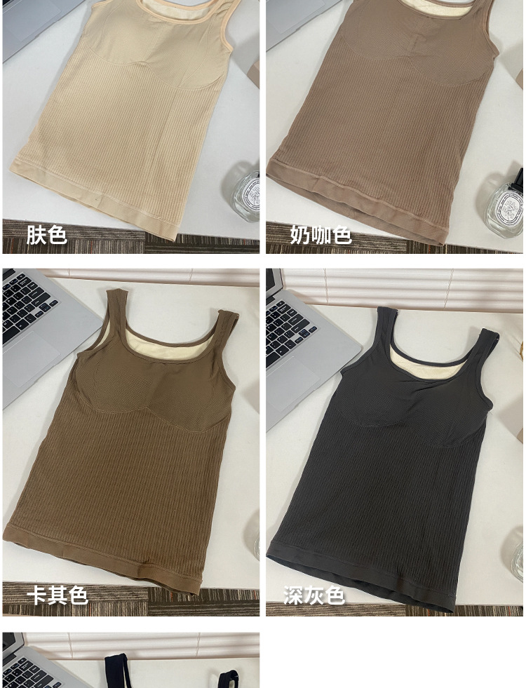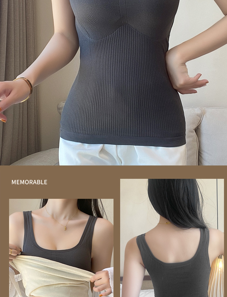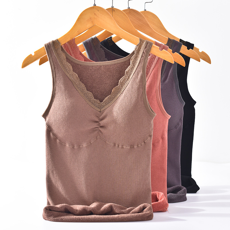 秋冬新款加厚加绒U领保暖内衣 带胸垫美背保暖背心女士内搭打底衫