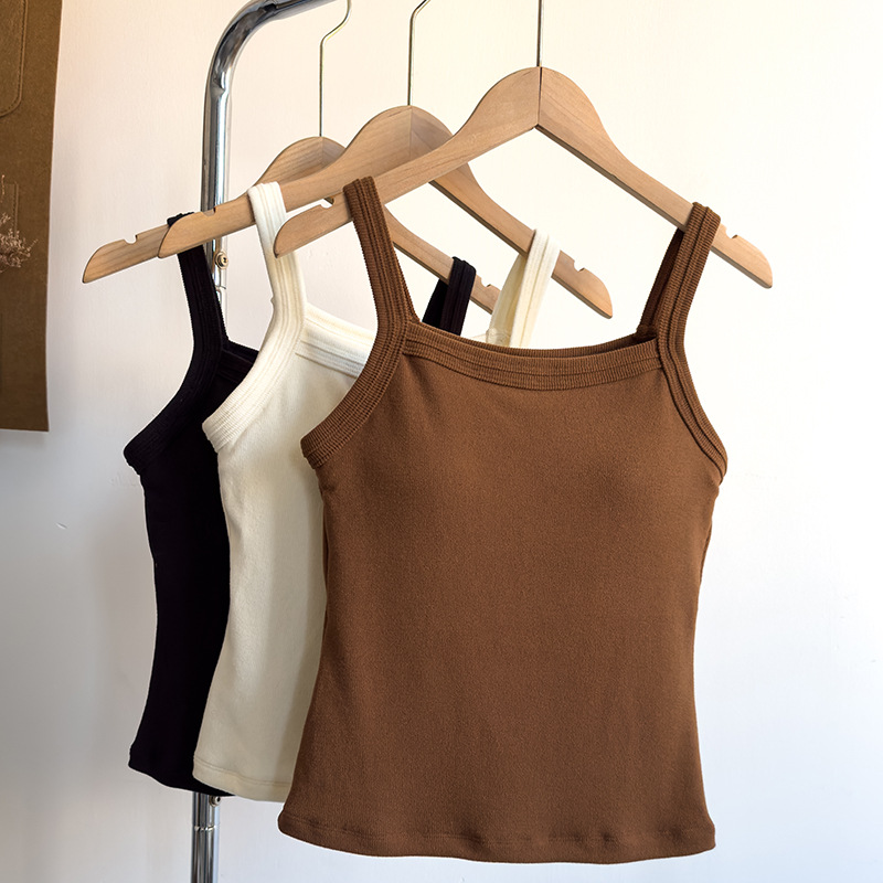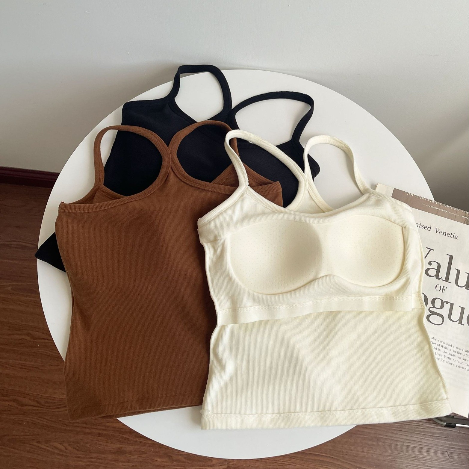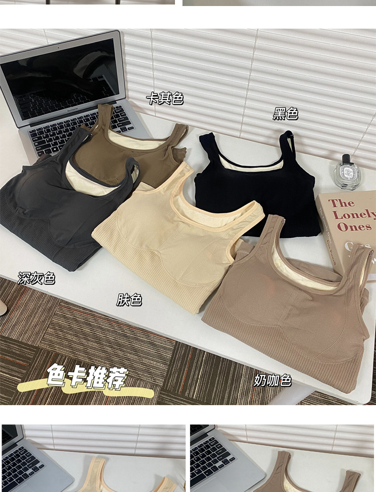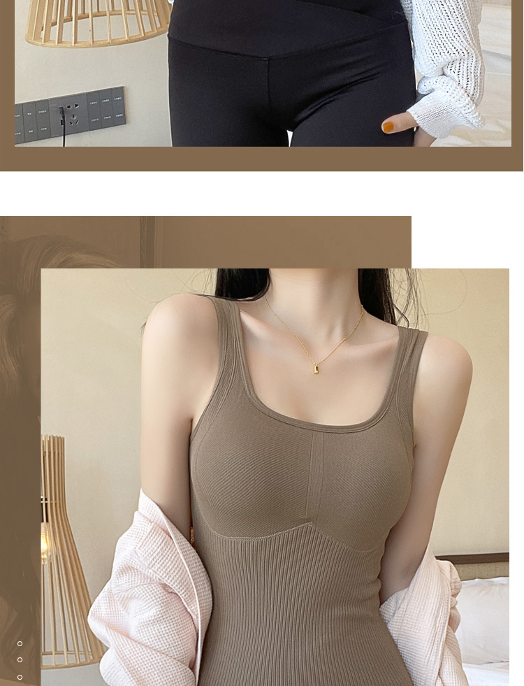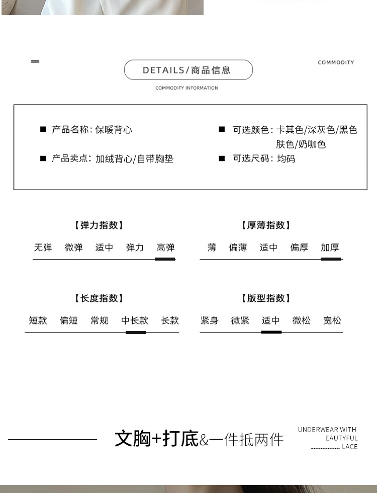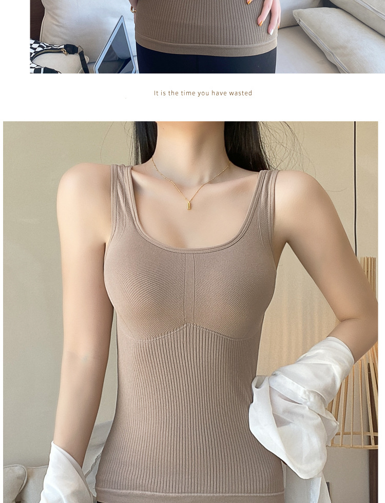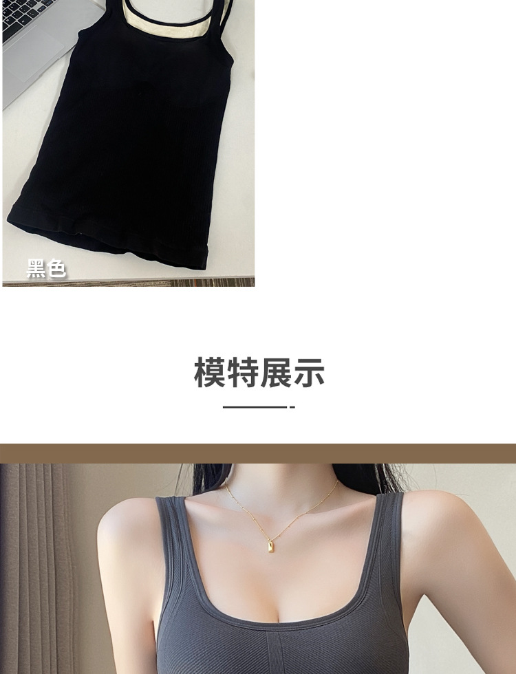 秋冬新款加厚加绒U领保暖内衣 带胸垫美背保暖背心女士内搭打底衫