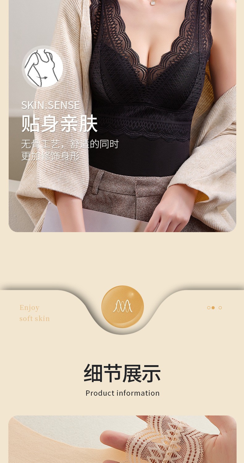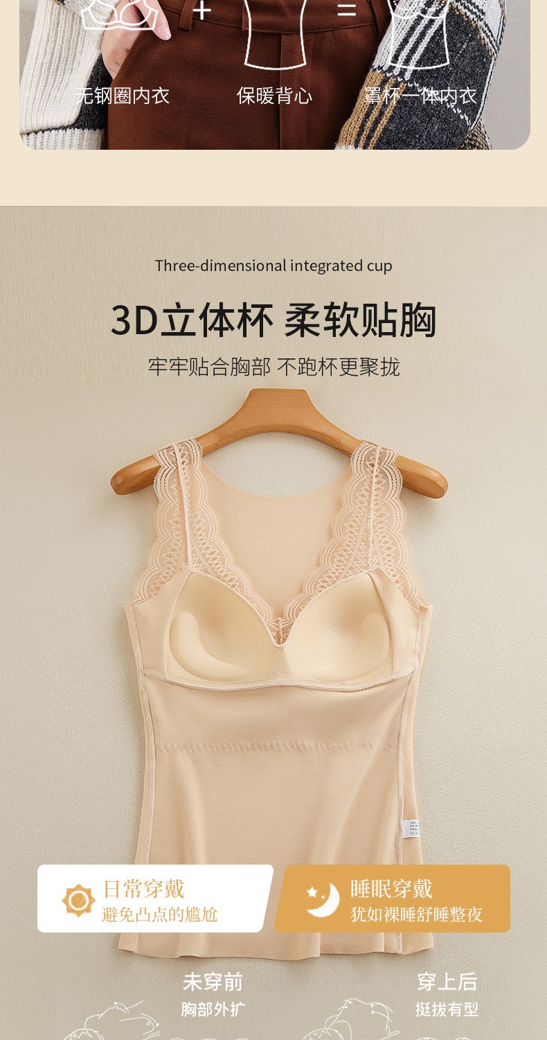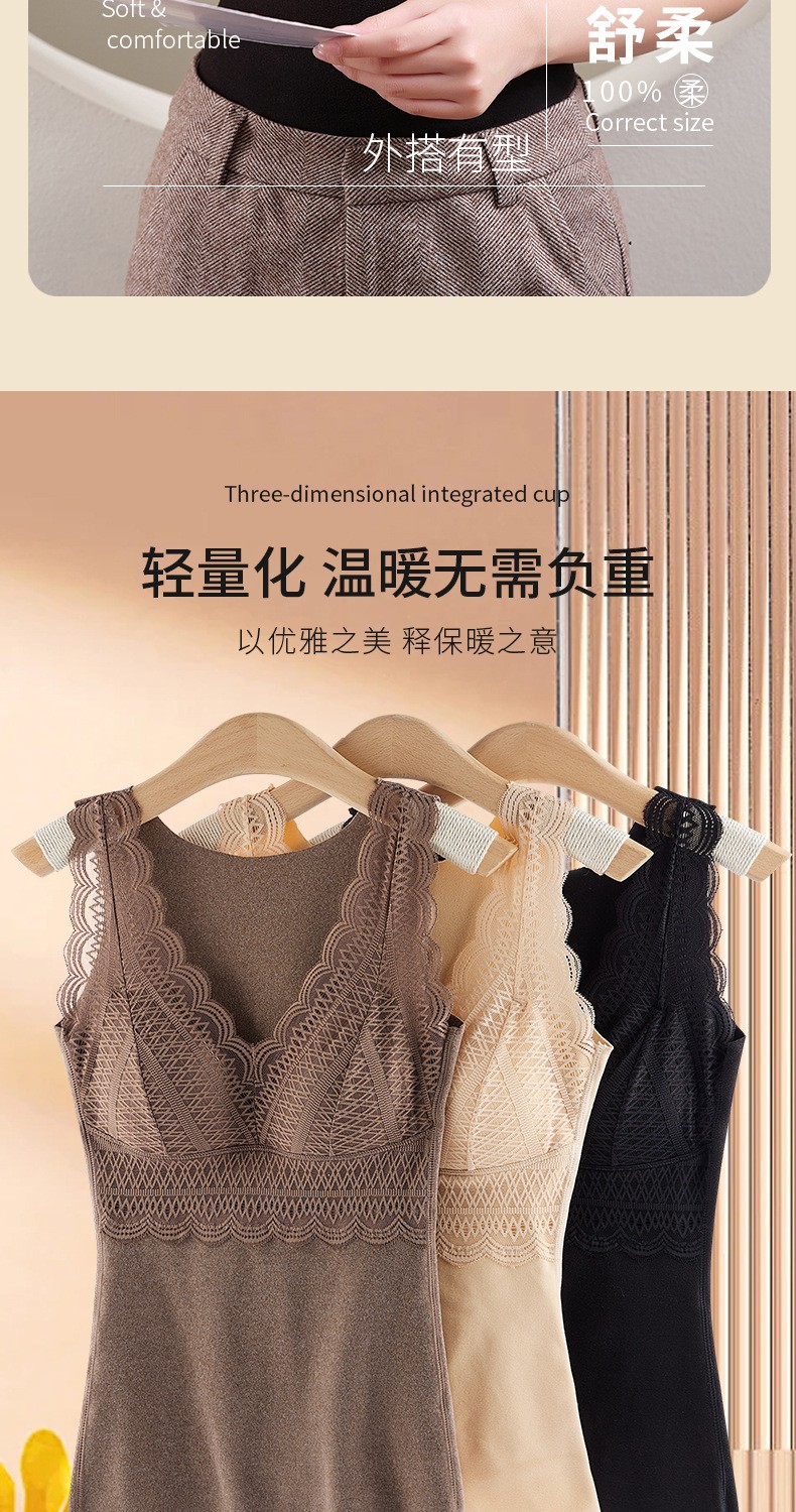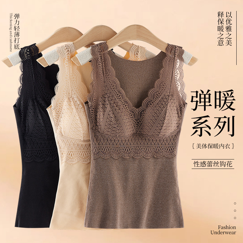 秋冬性感蕾丝无袖发热塑身保暖内衣女带胸垫加厚德绒背心双面磨绒