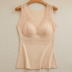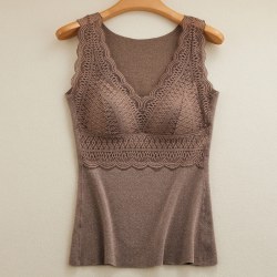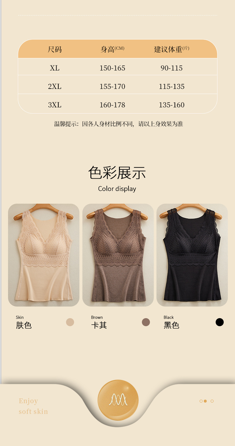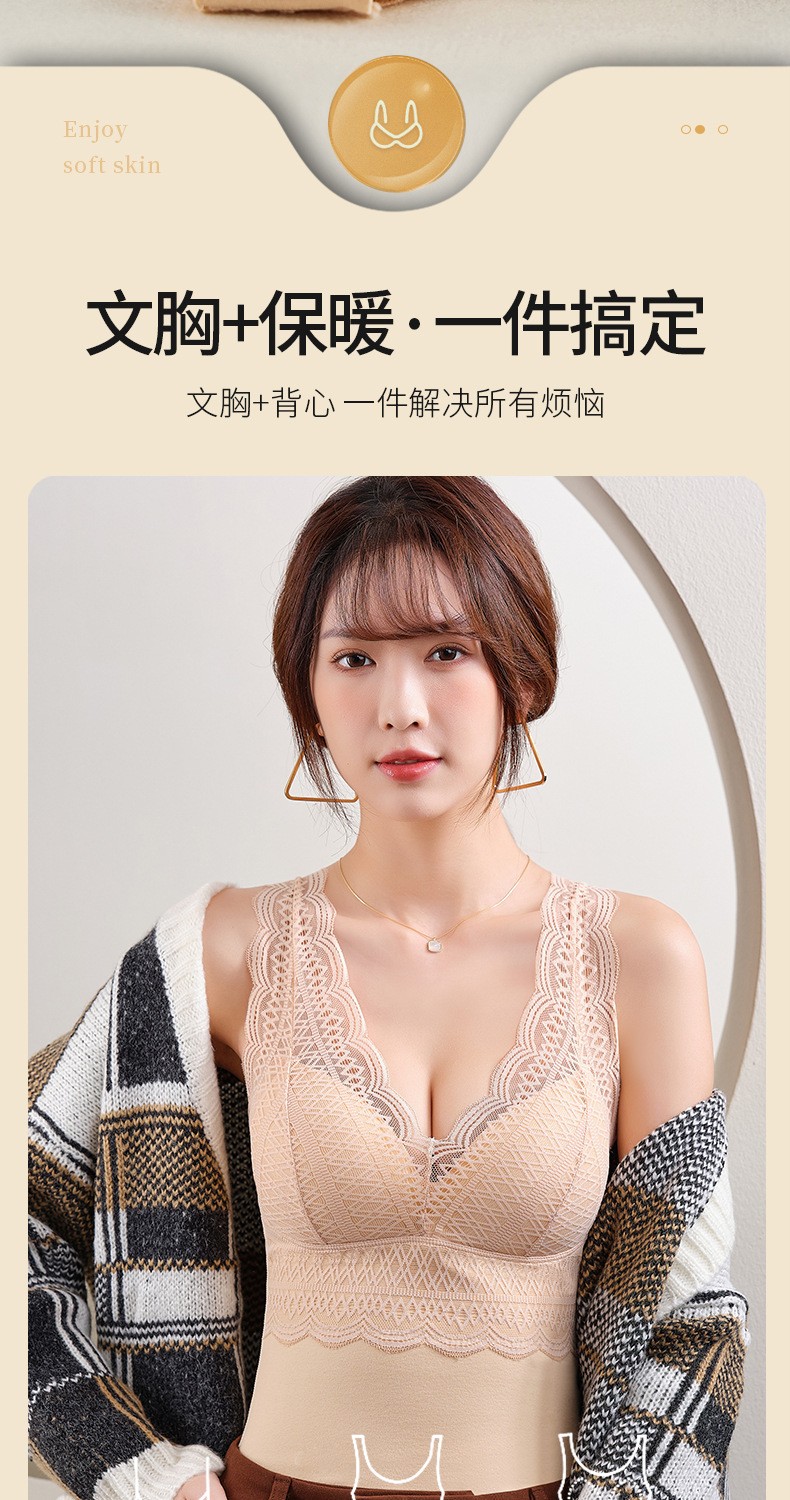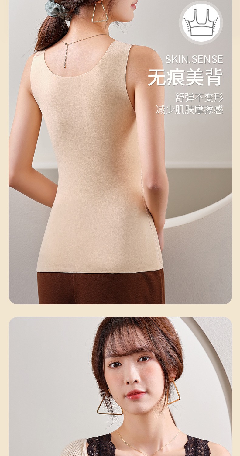 秋冬性感蕾丝无袖发热塑身保暖内衣女带胸垫加厚德绒背心双面磨绒