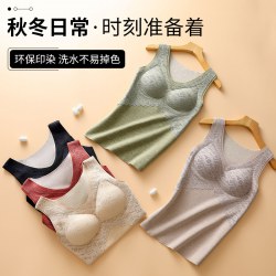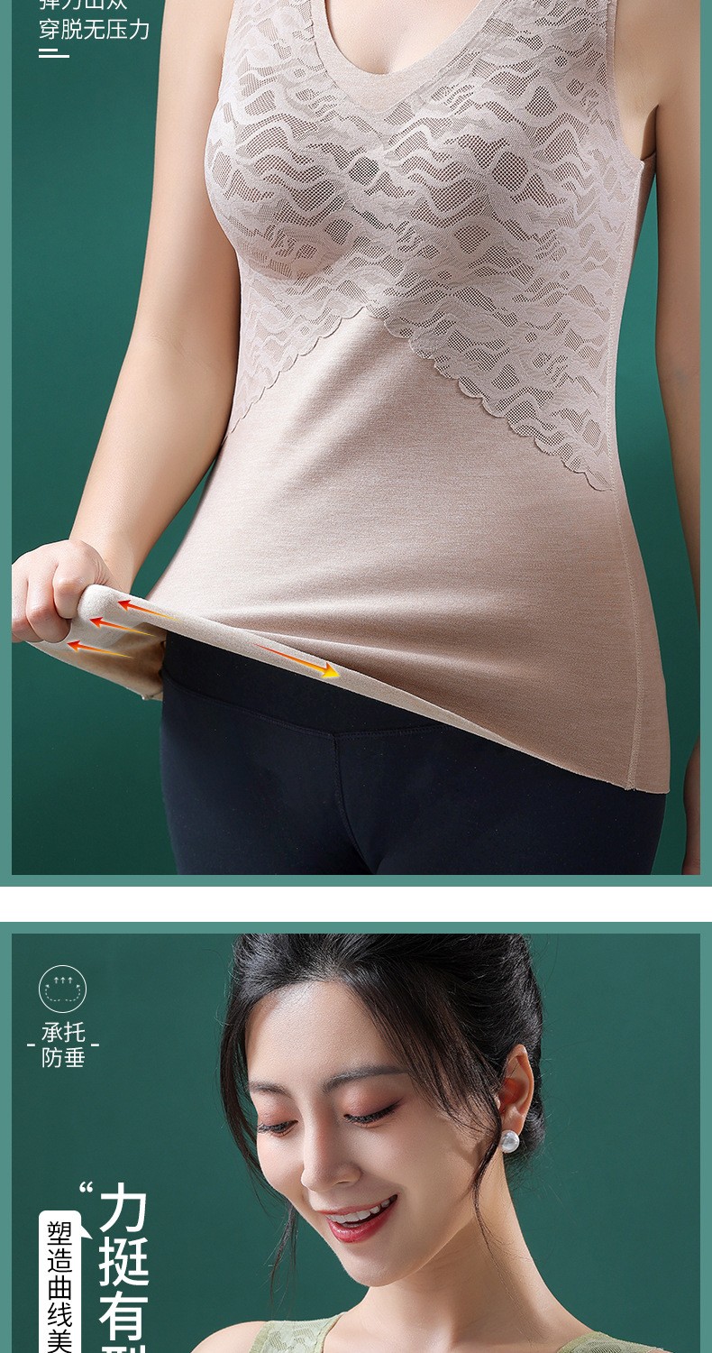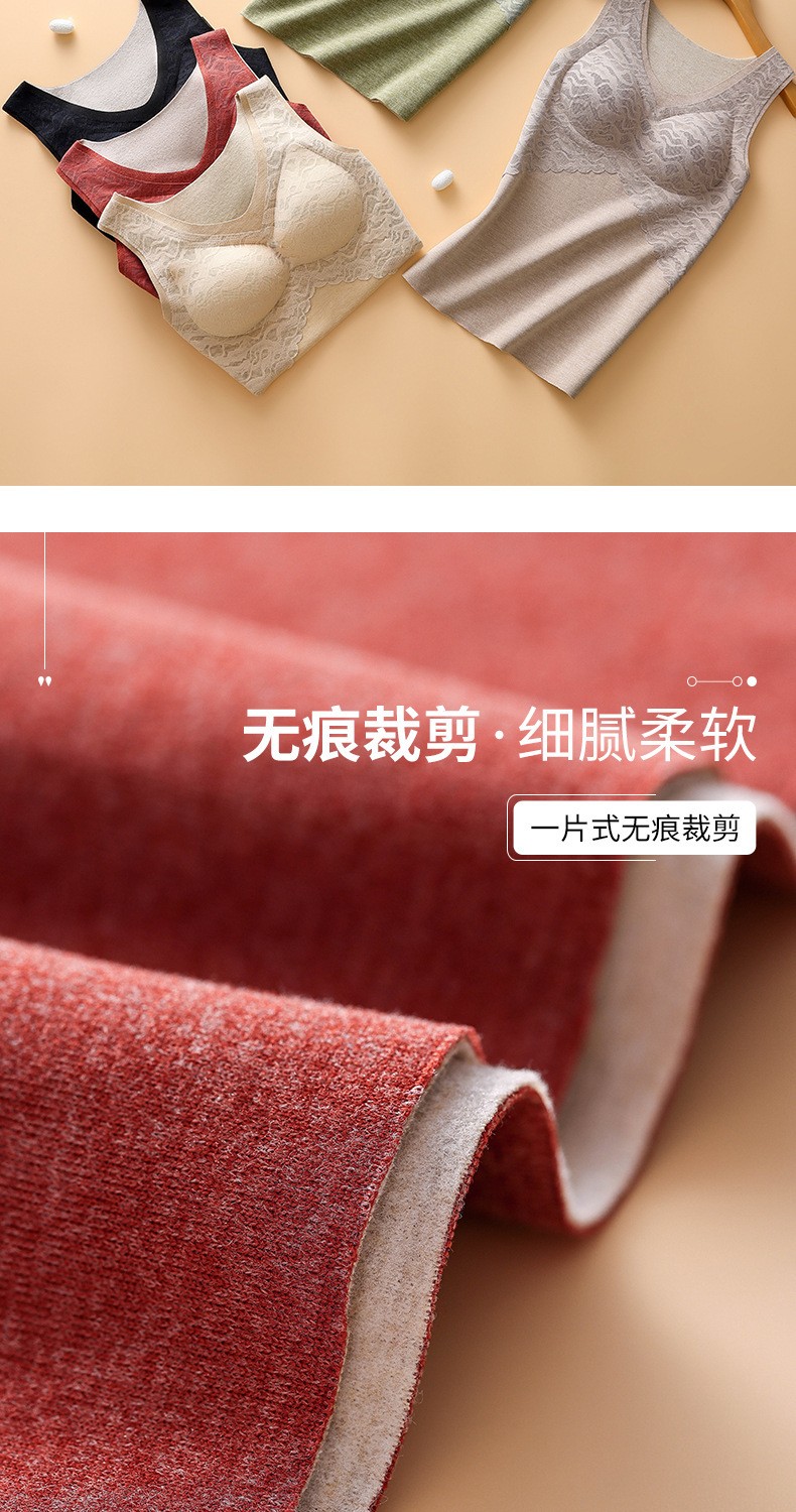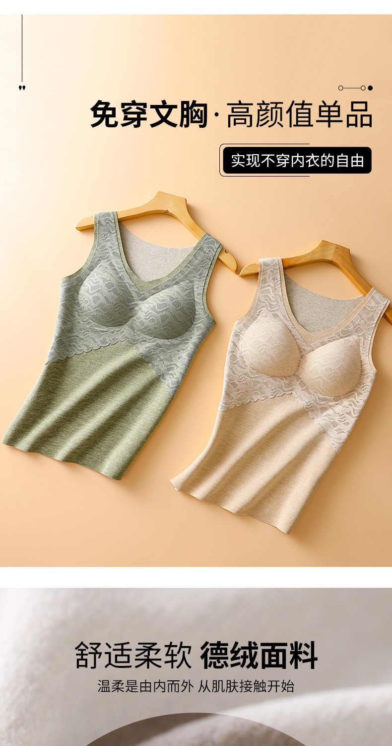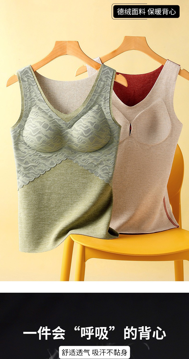 无痕德绒自发热蚕丝保暖内衣女 带胸垫加厚内搭蕾丝德绒保暖背心
