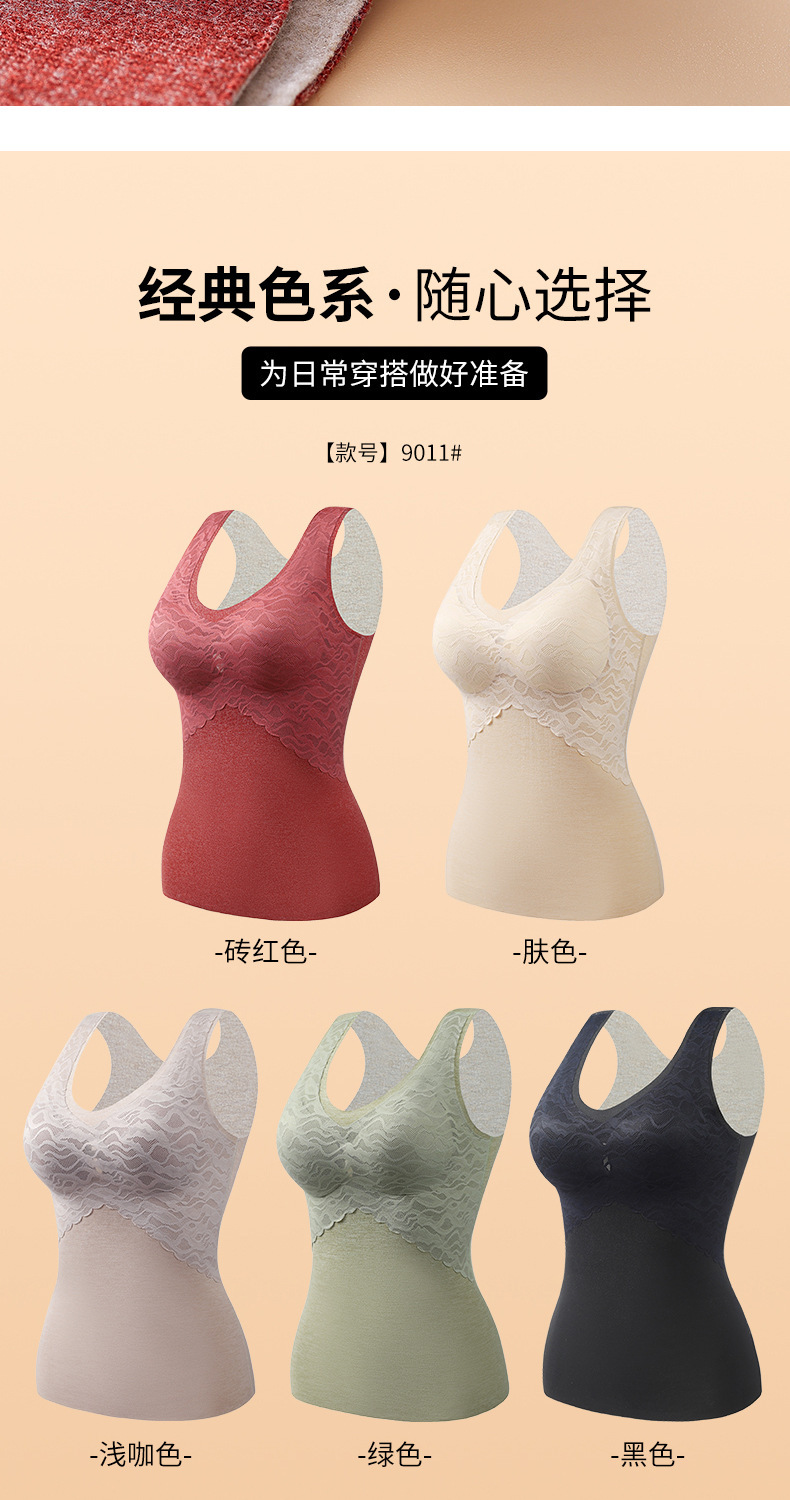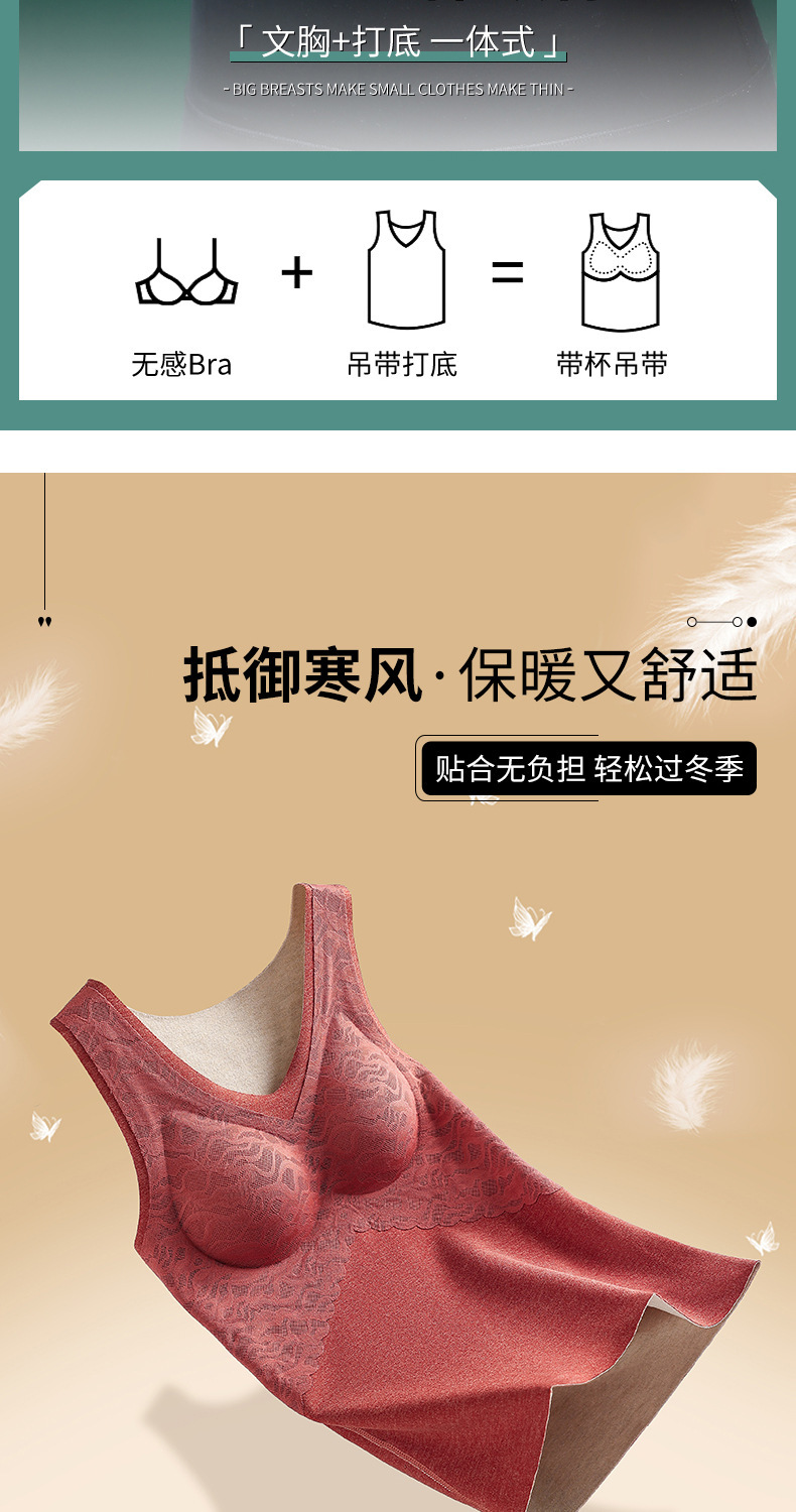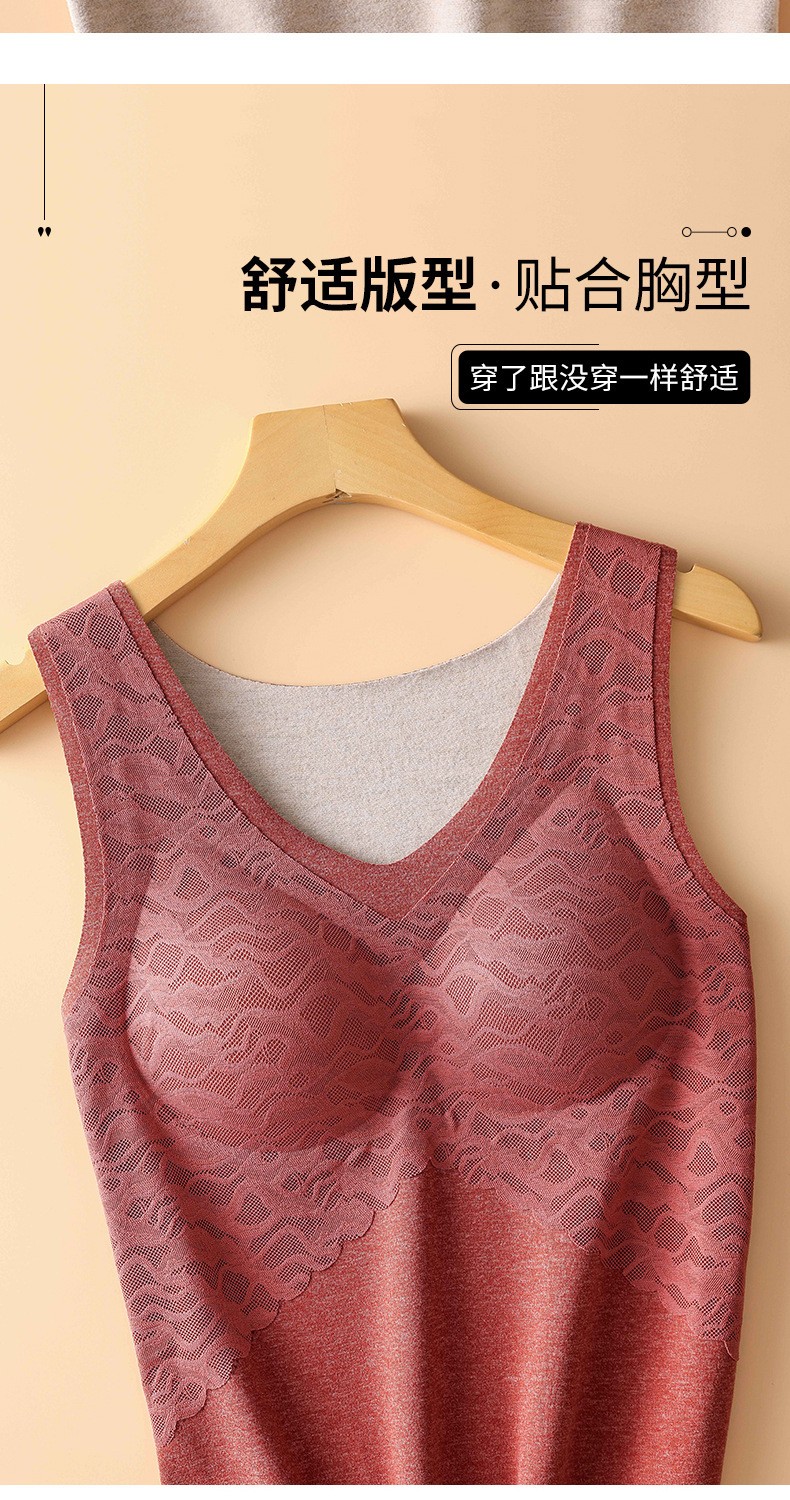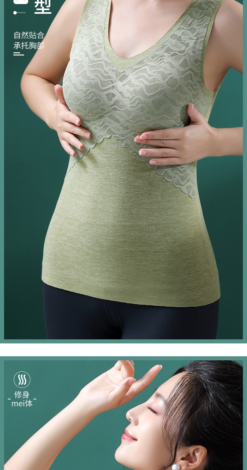 无痕德绒自发热蚕丝保暖内衣女 带胸垫加厚内搭蕾丝德绒保暖背心