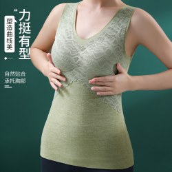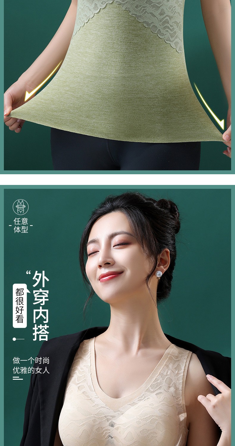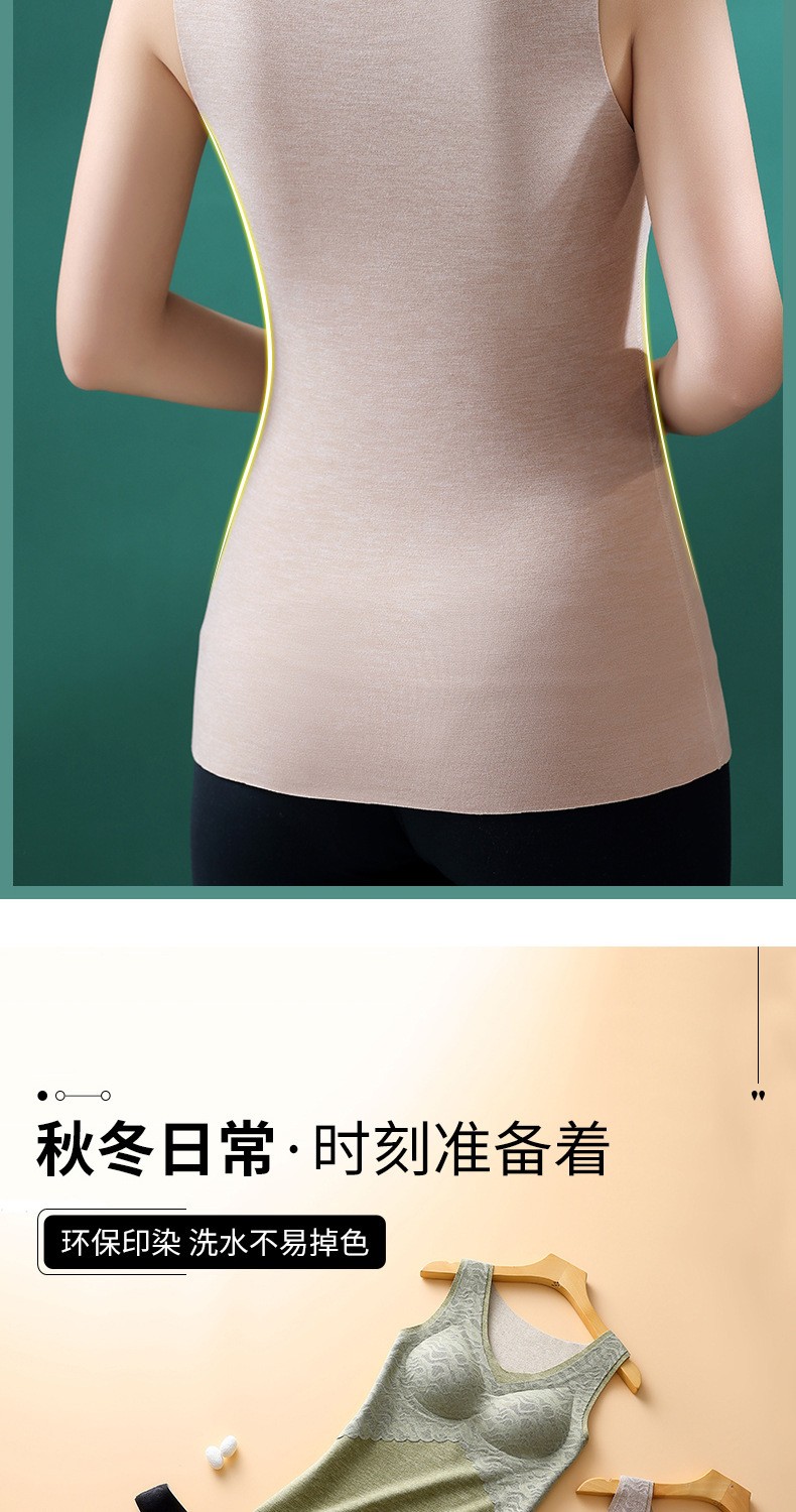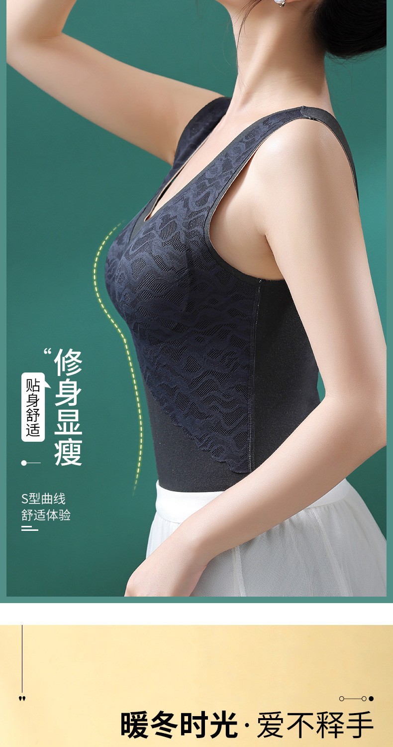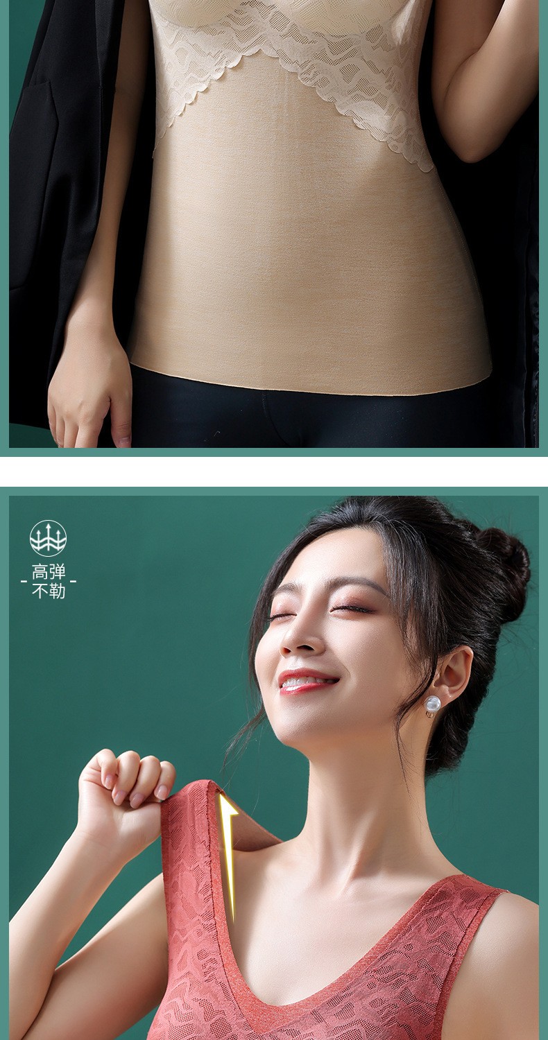 无痕德绒自发热蚕丝保暖内衣女 带胸垫加厚内搭蕾丝德绒保暖背心