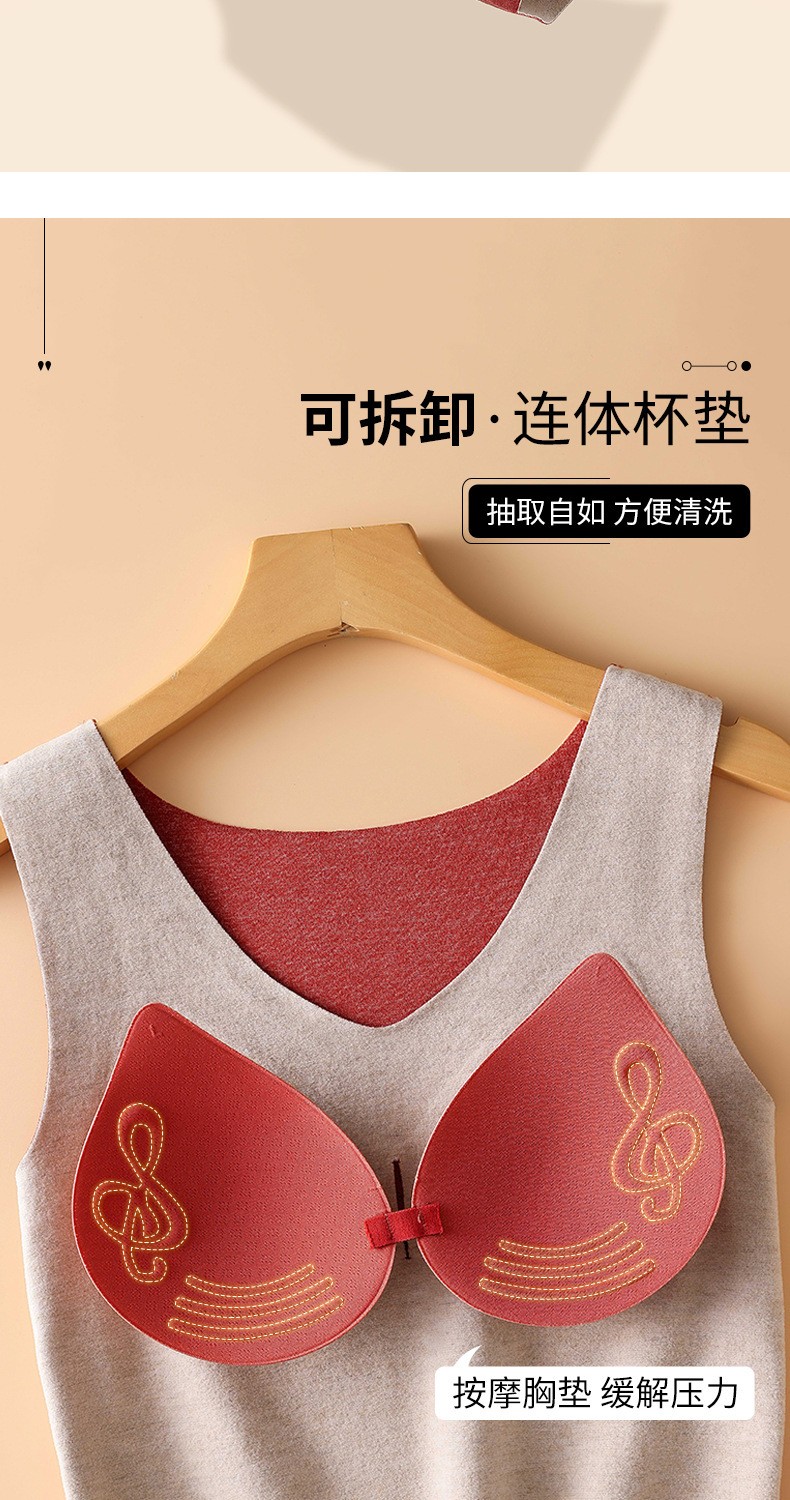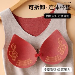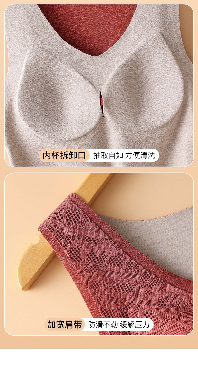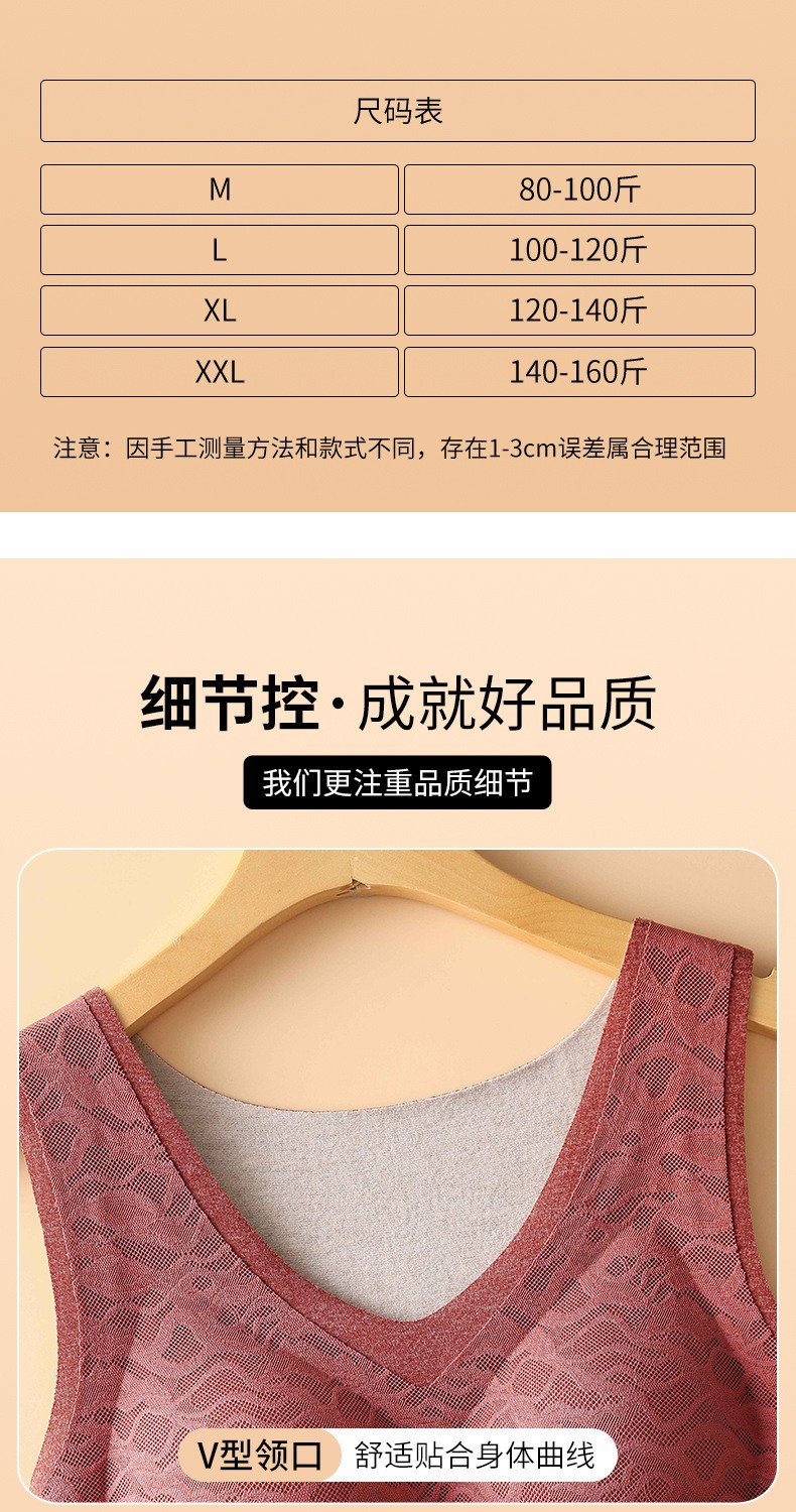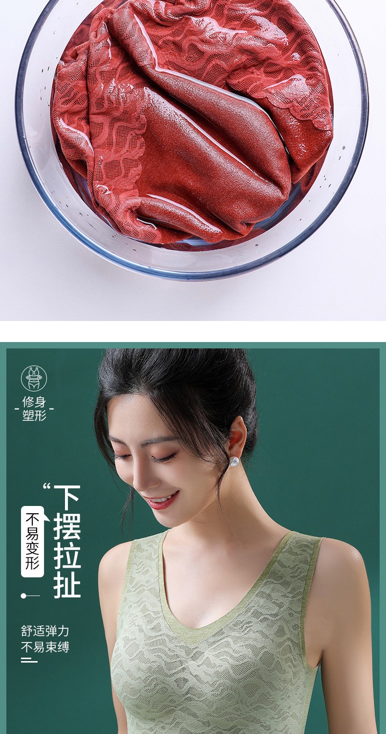 无痕德绒自发热蚕丝保暖内衣女 带胸垫加厚内搭蕾丝德绒保暖背心