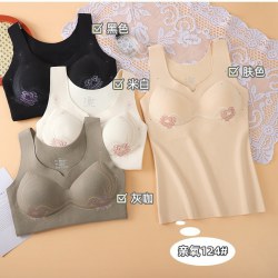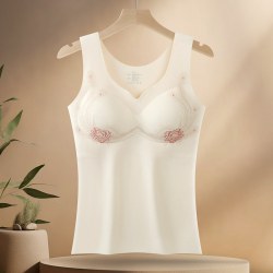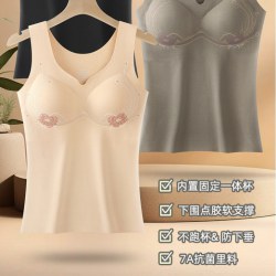 新款无痕保暖背心固定一体杯加绒加厚免穿文胸7A抗菌发热打底内衣
