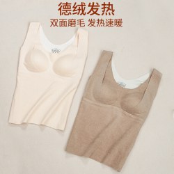 德绒保暖背心大码内衣女士加绒加厚无痕打底内搭固定胸垫收副乳罩