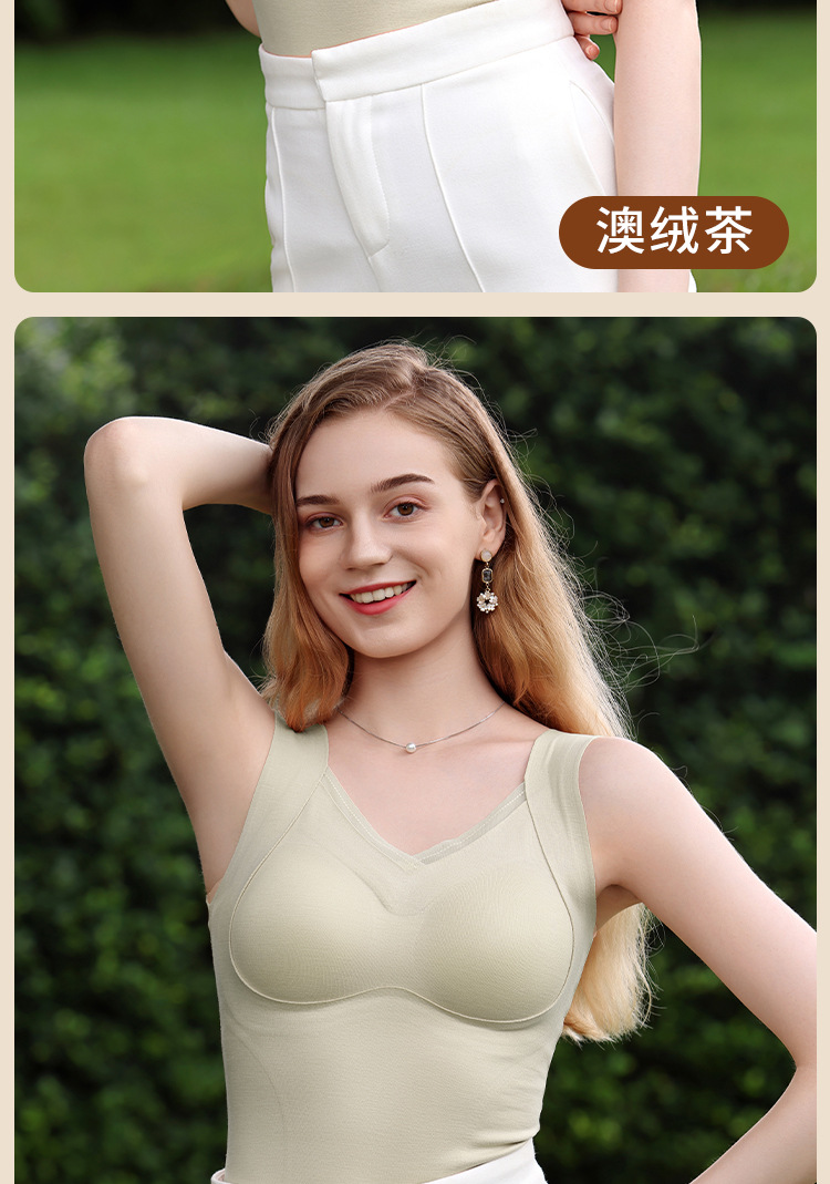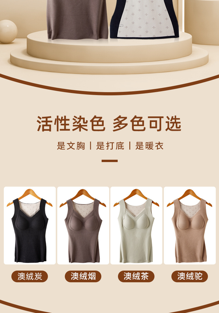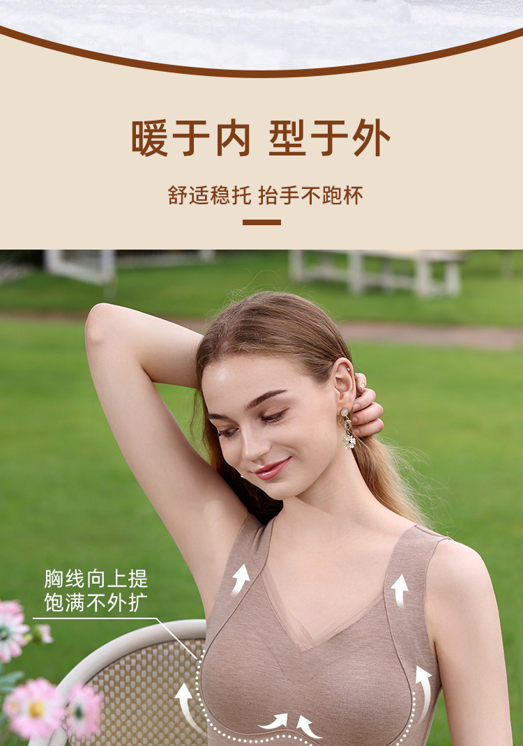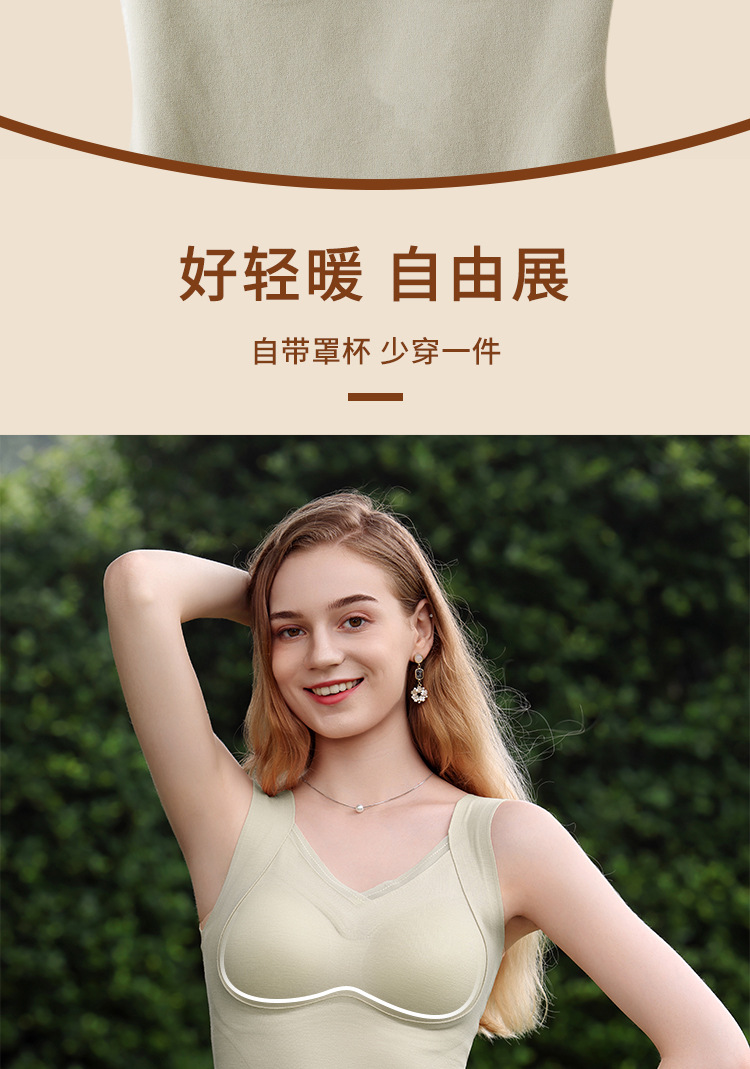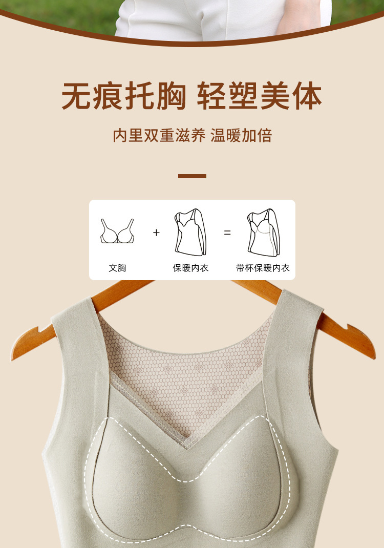 保暖内衣女带胸垫文胸羊绒蚕丝外搭内穿保暖背心发热加绒加厚上衣