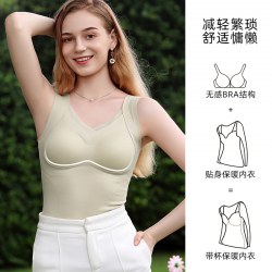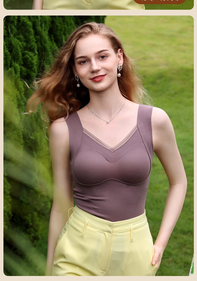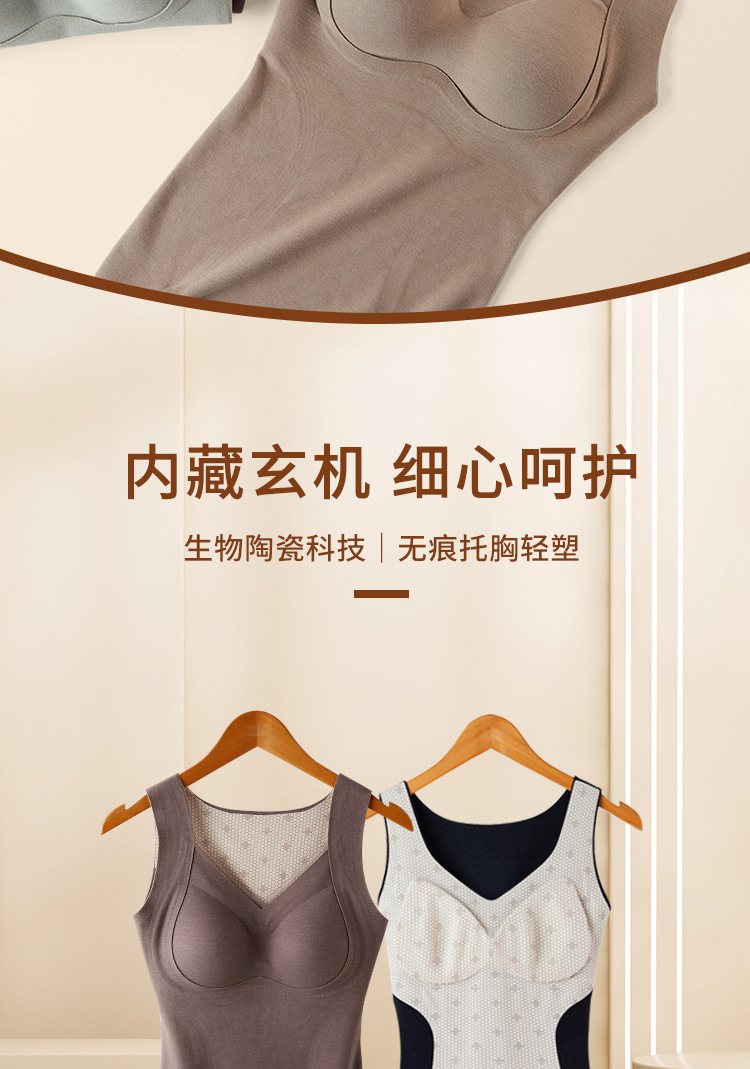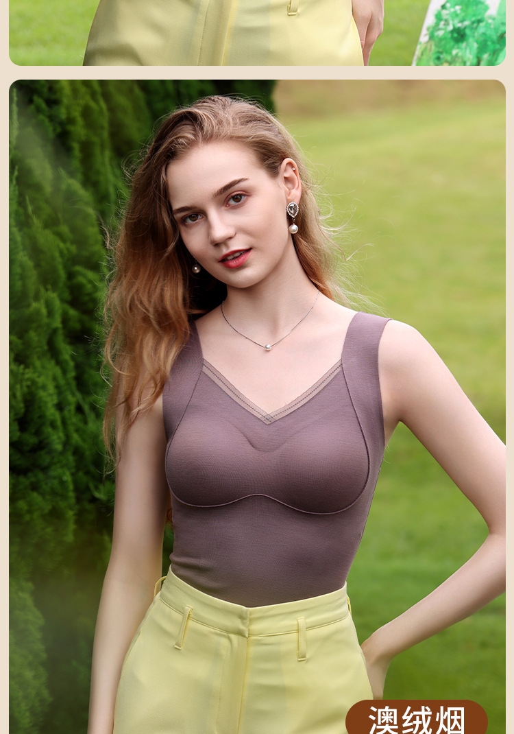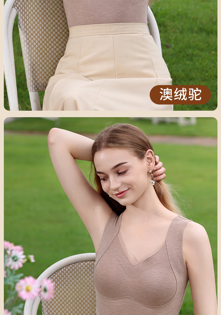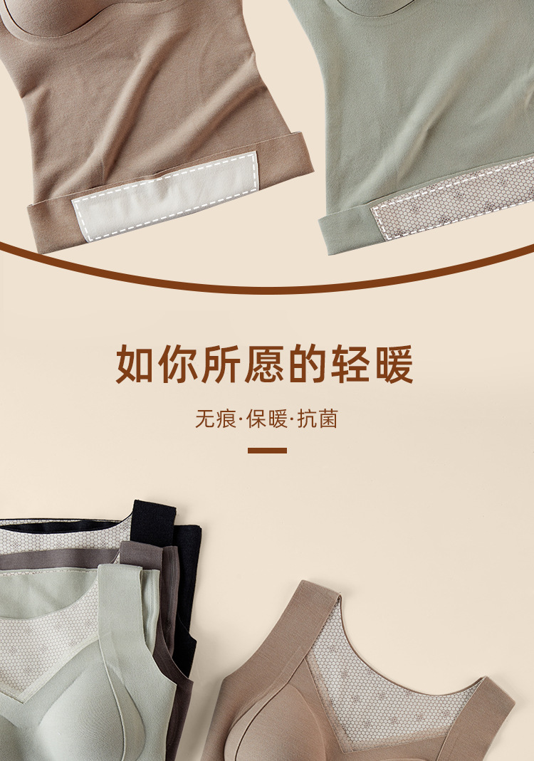 保暖内衣女带胸垫文胸羊绒蚕丝外搭内穿保暖背心发热加绒加厚上衣