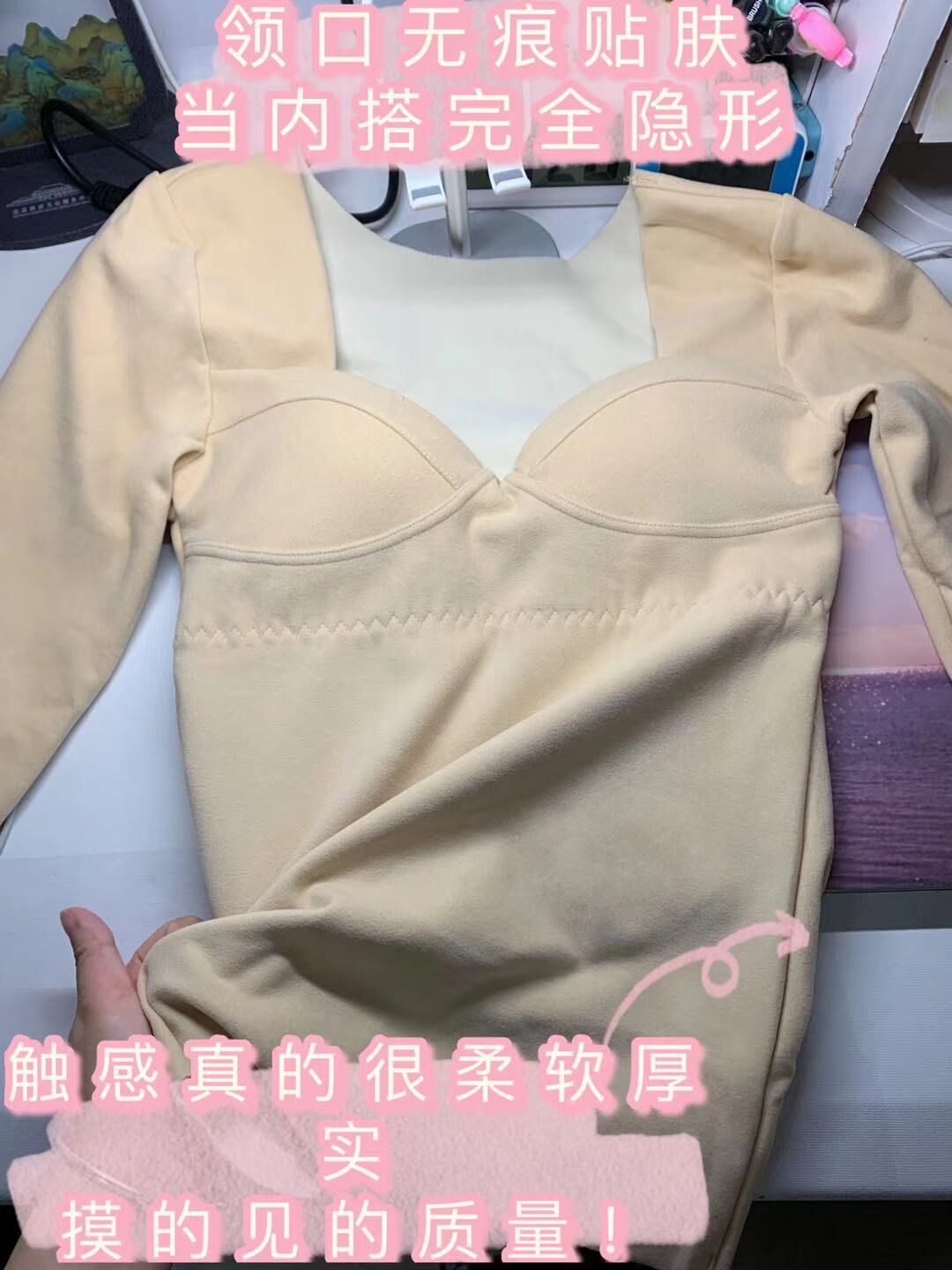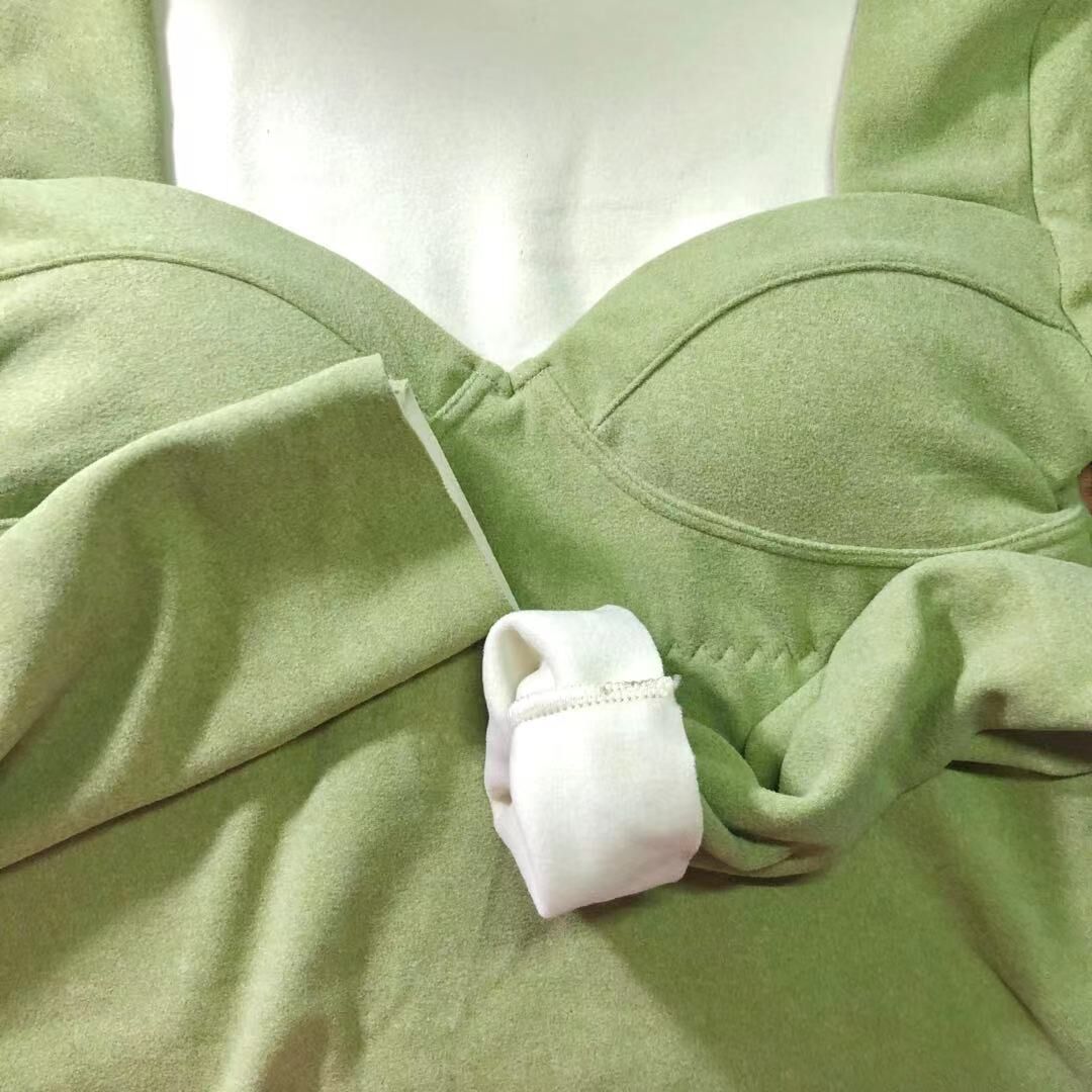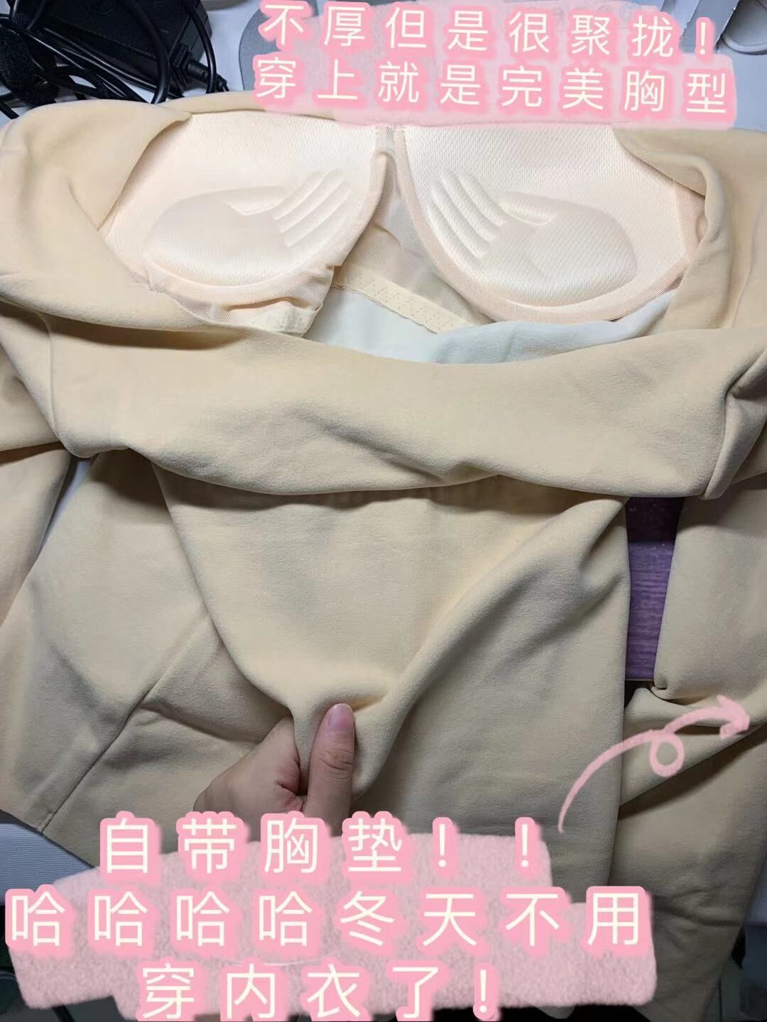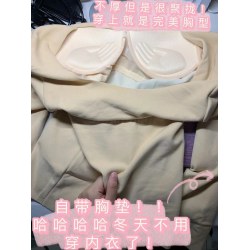 带胸垫加绒保暖内衣女冬季罩杯一体加厚德绒发热无痕打底衫秋衣女