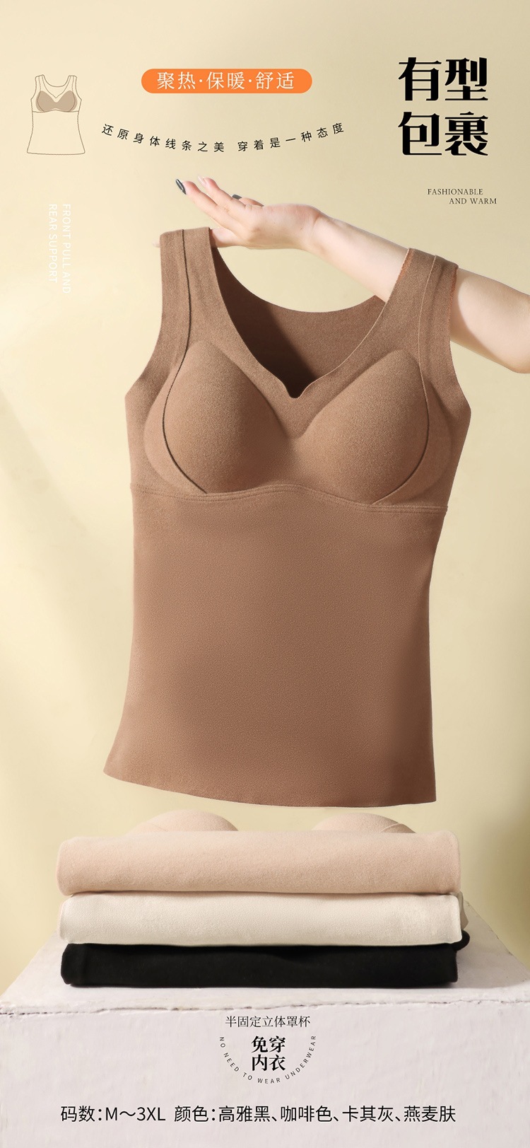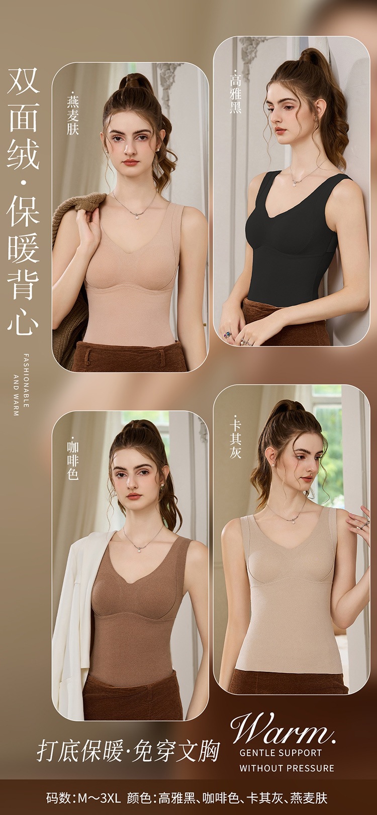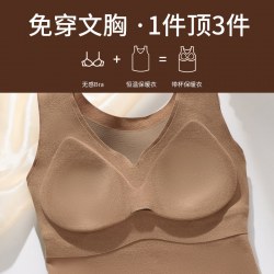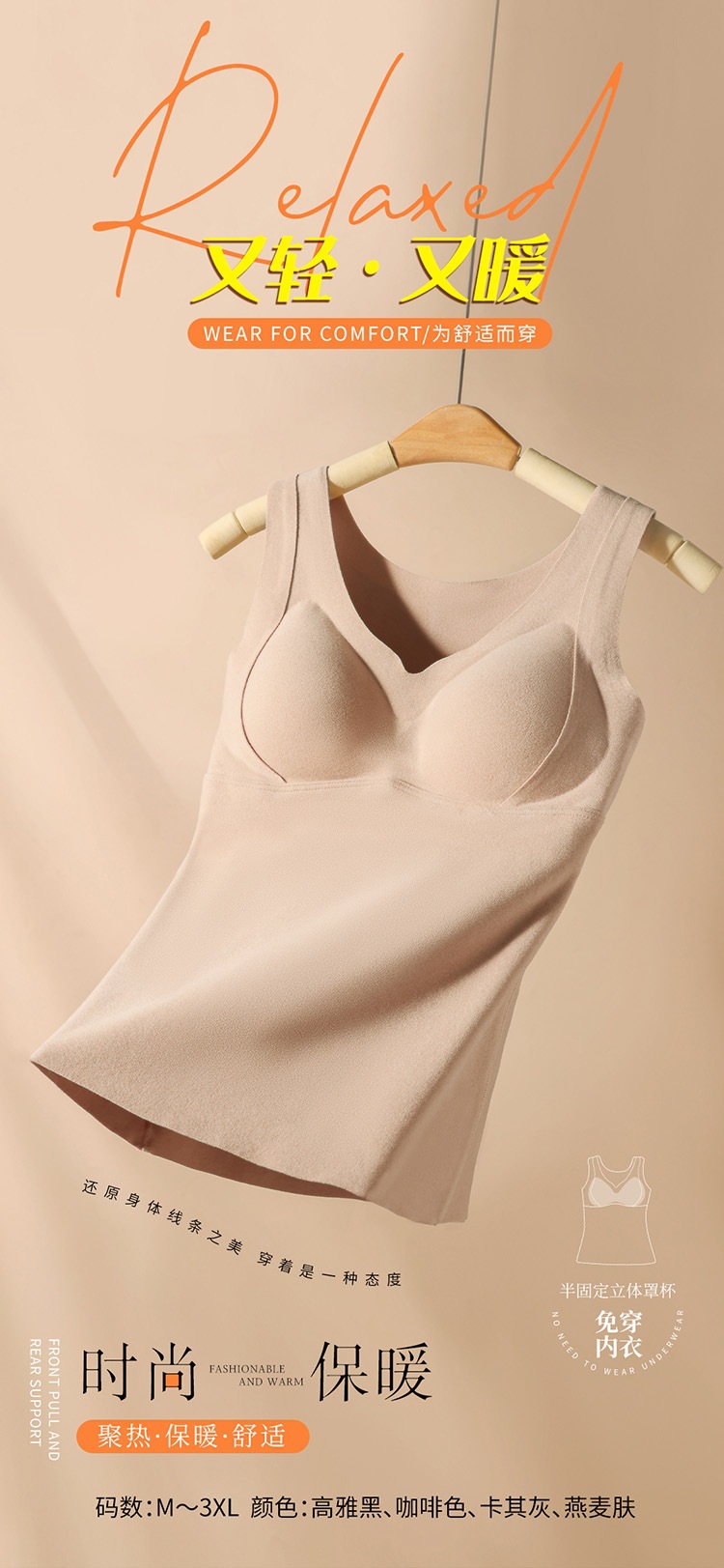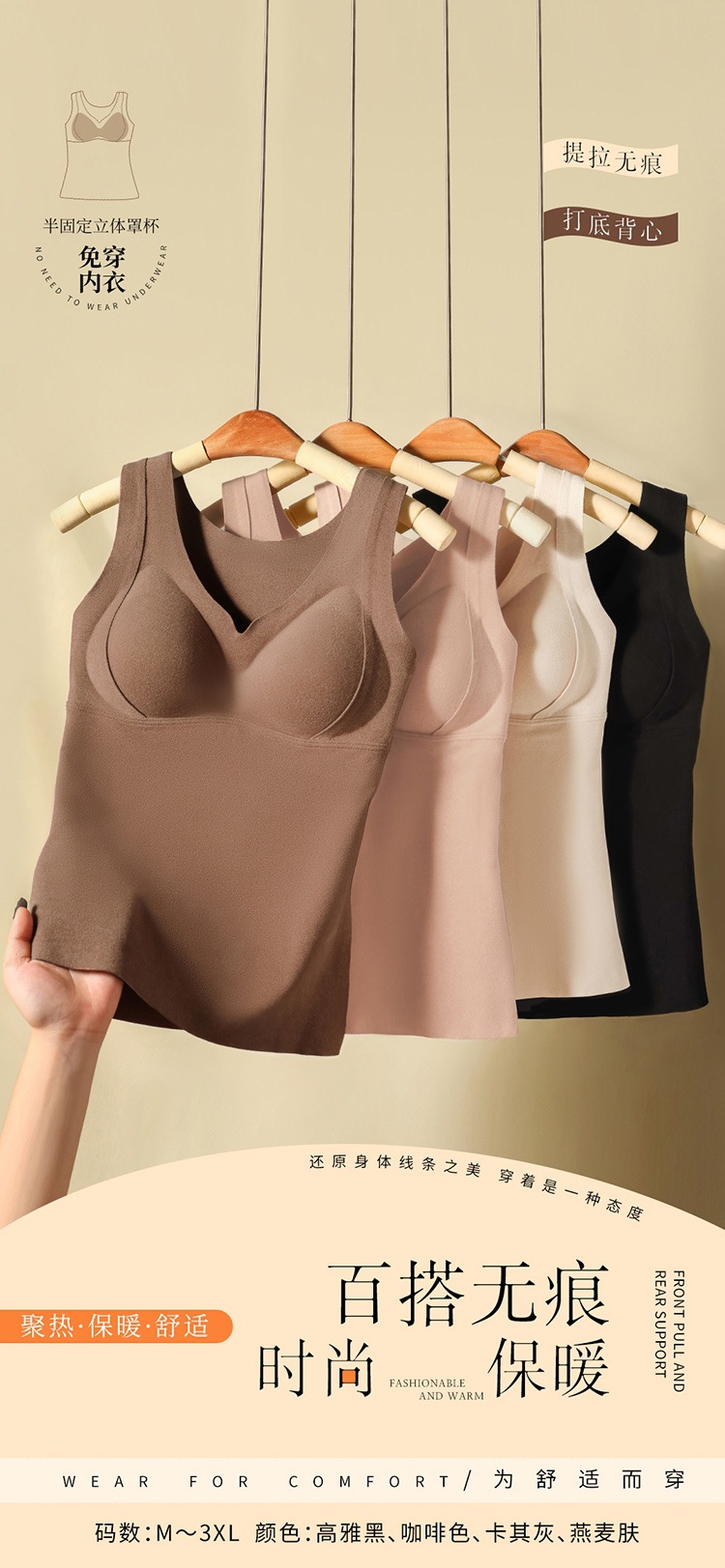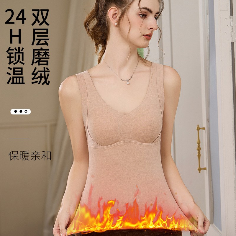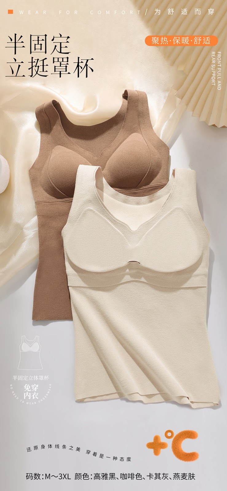 秋冬爆款阳离子暖绒保暖内衣女士修身打底无痕背心式文胸罩杯一体