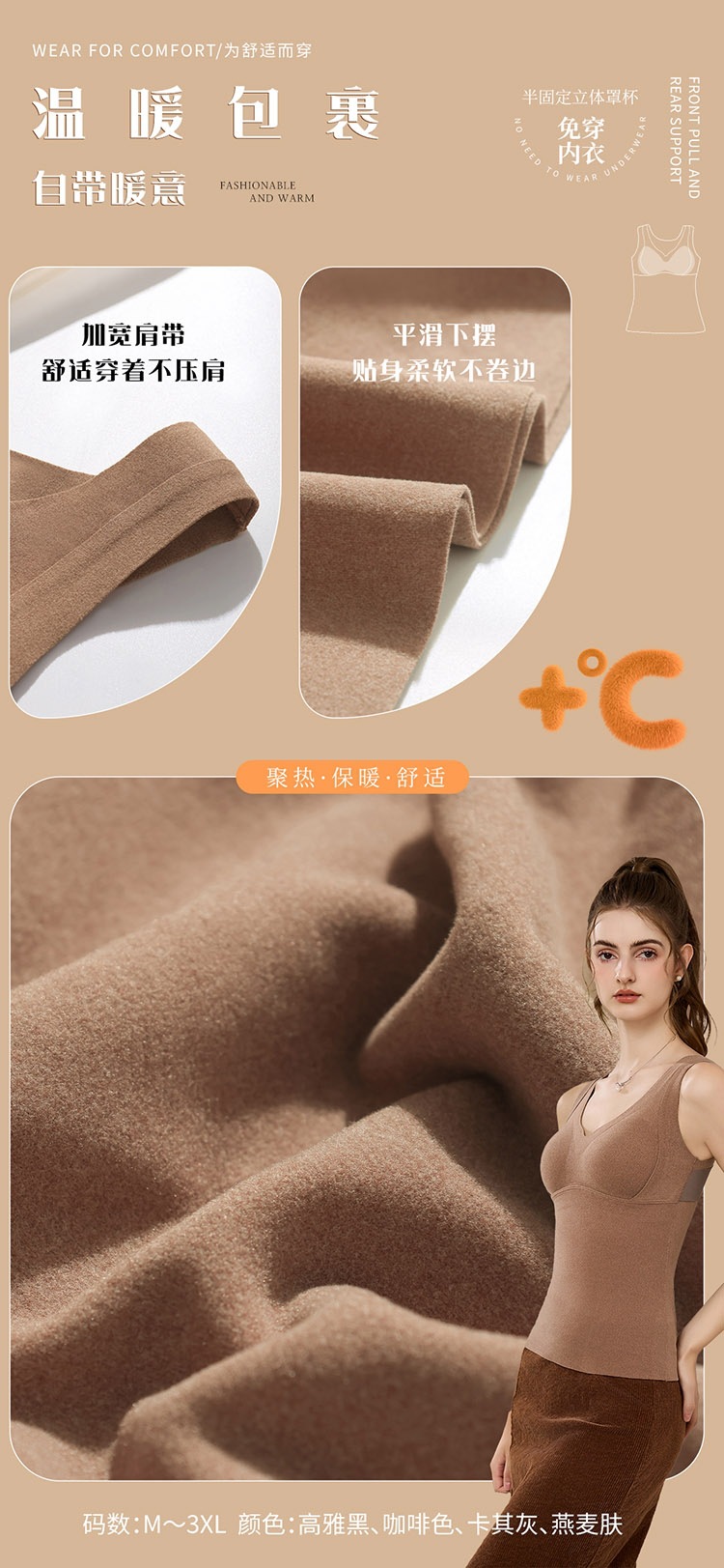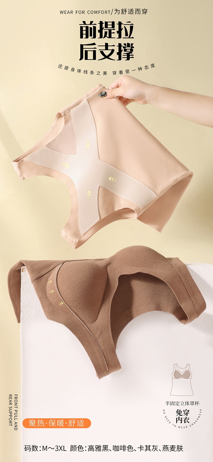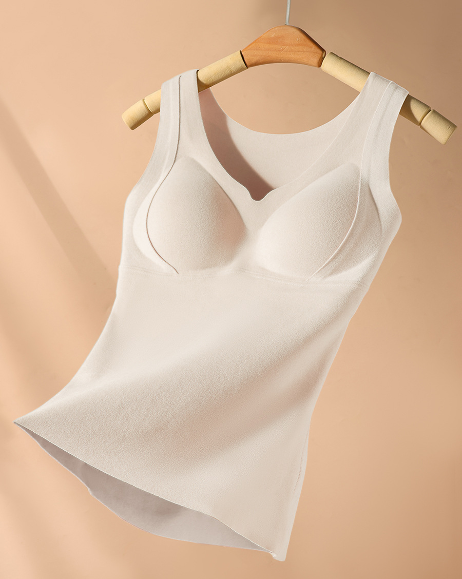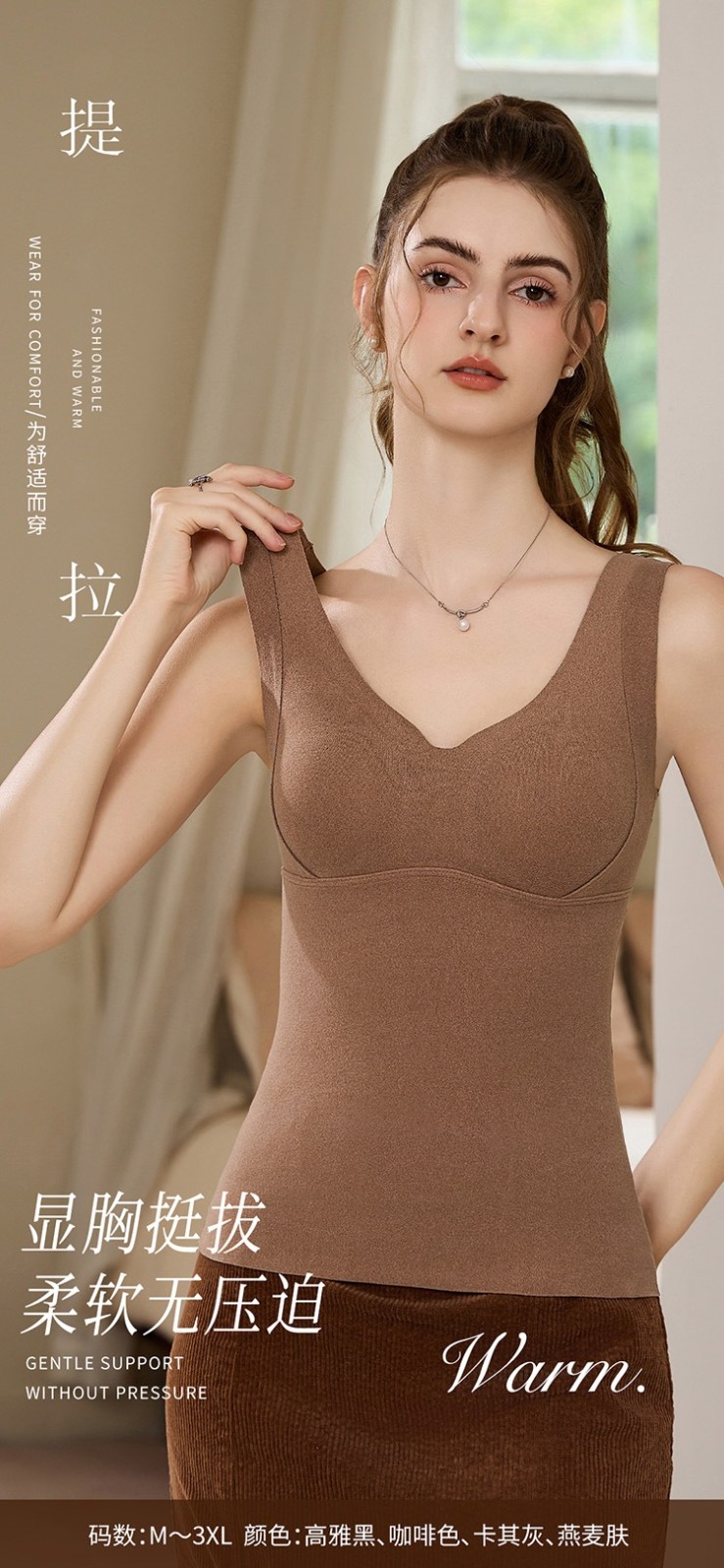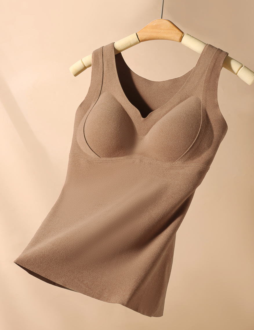 秋冬爆款阳离子暖绒保暖内衣女士修身打底无痕背心式文胸罩杯一体