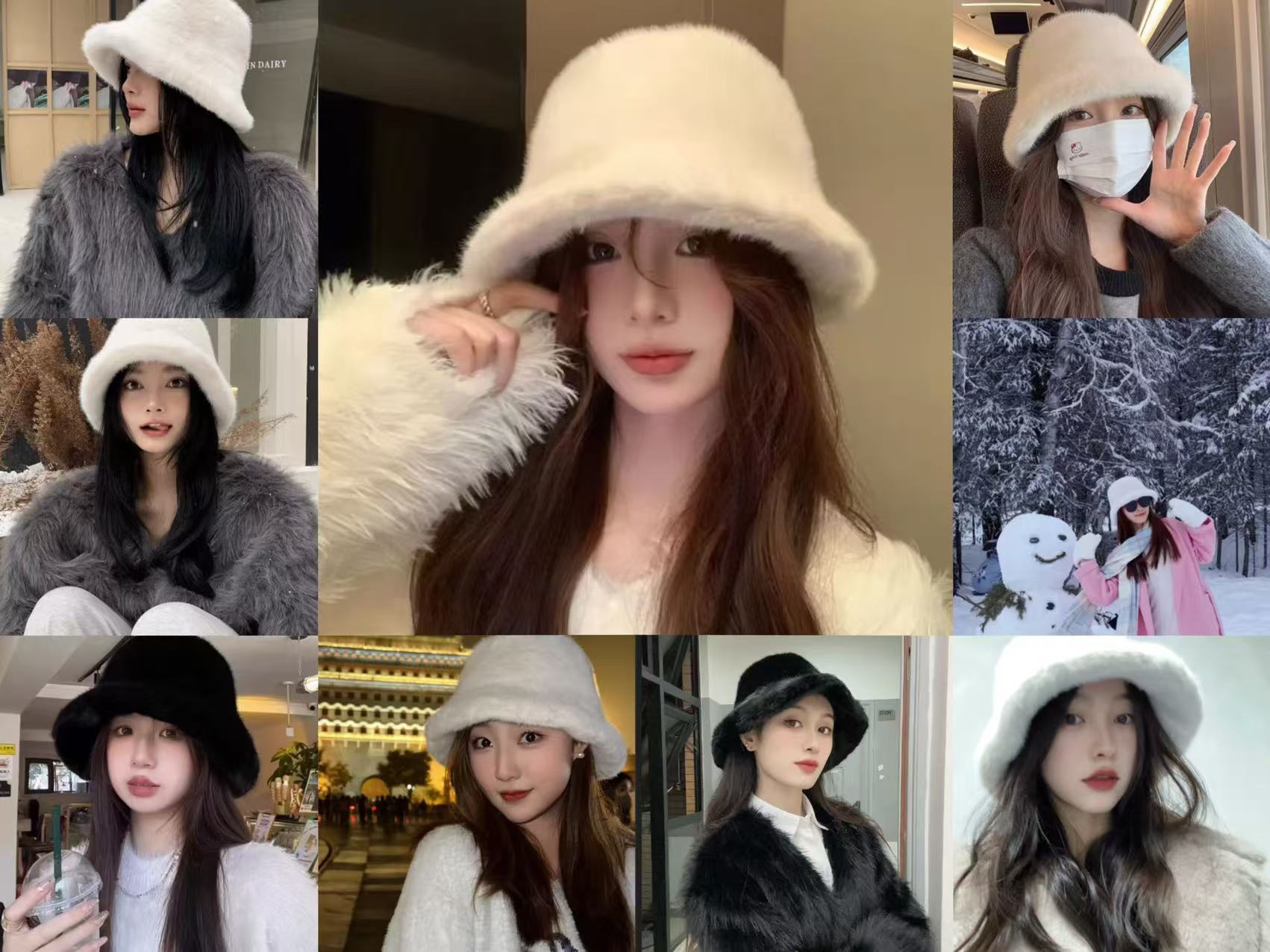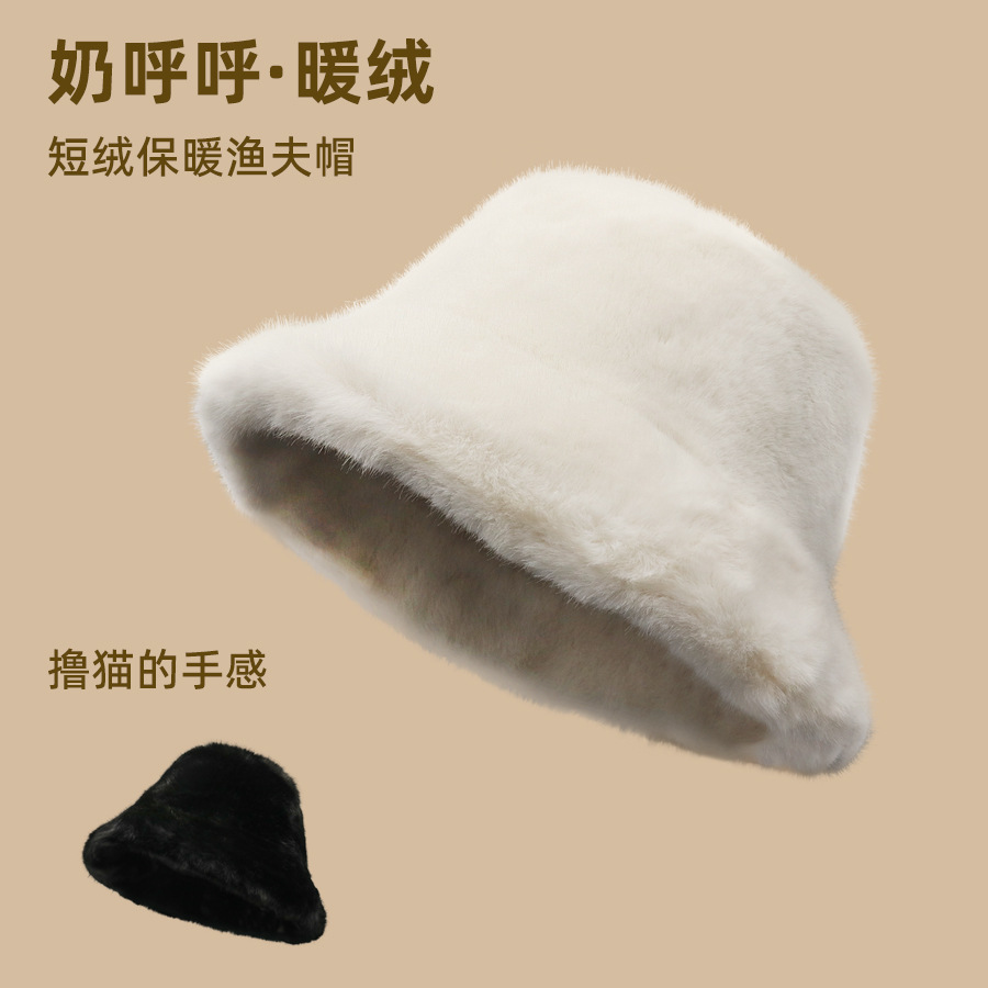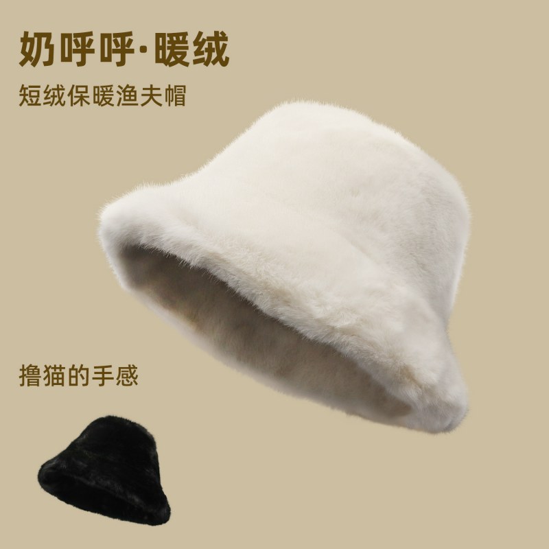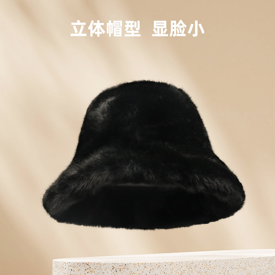 女秋冬季百搭保暖毛绒盆帽韩国渔夫帽显脸小时尚单品素颜水桶帽子
