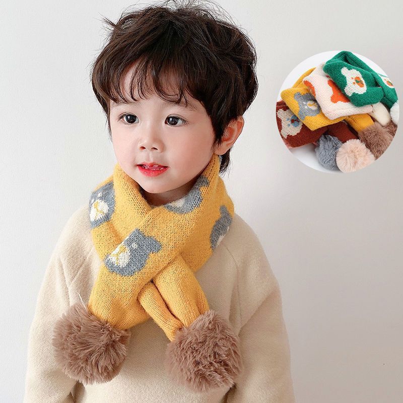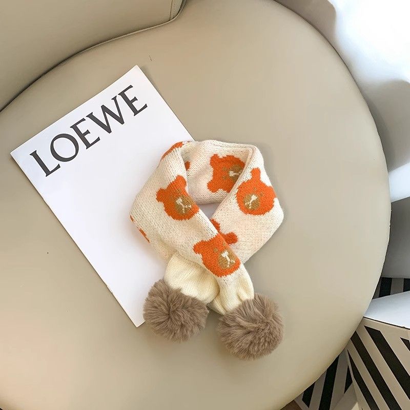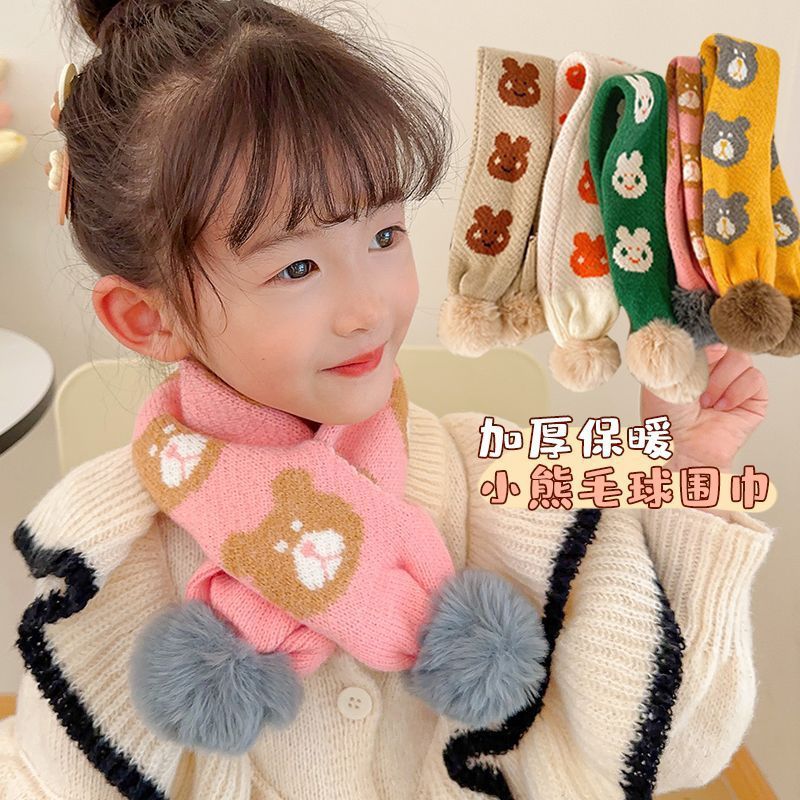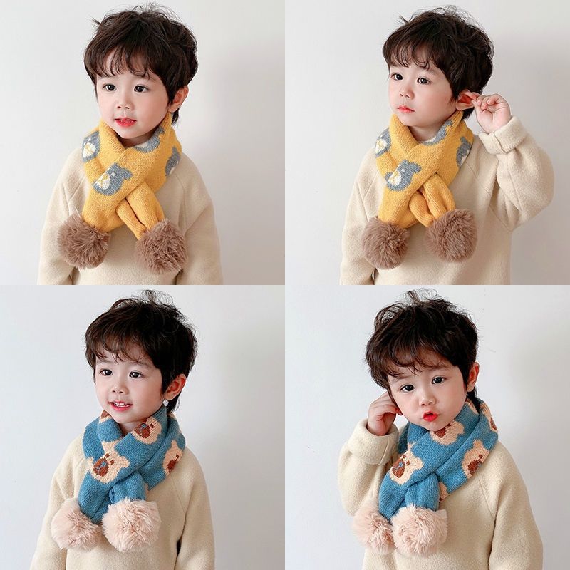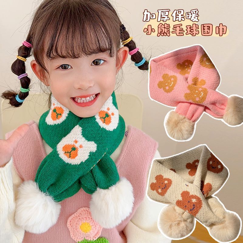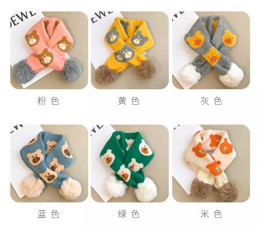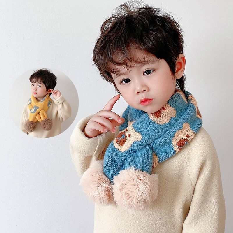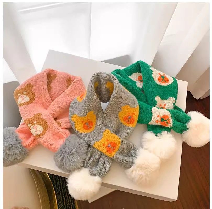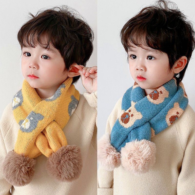 儿童围巾冬季韩版可爱小熊交叉洋气宝宝围巾新款时尚卡通围脖保暖
