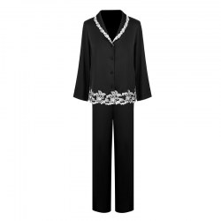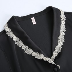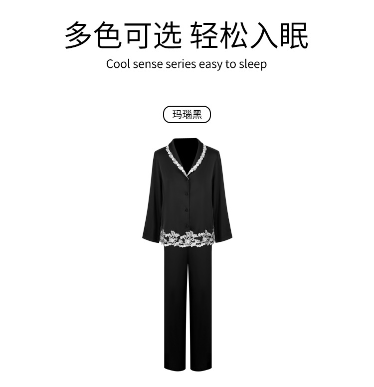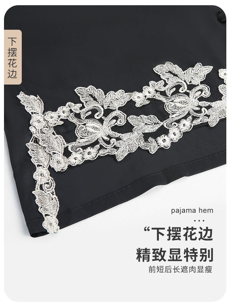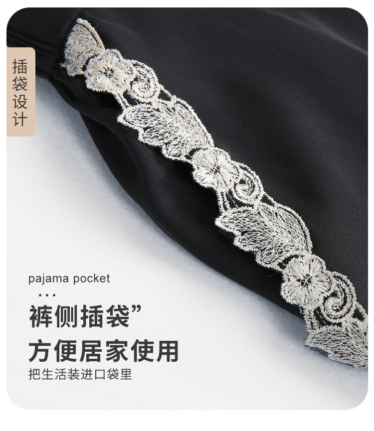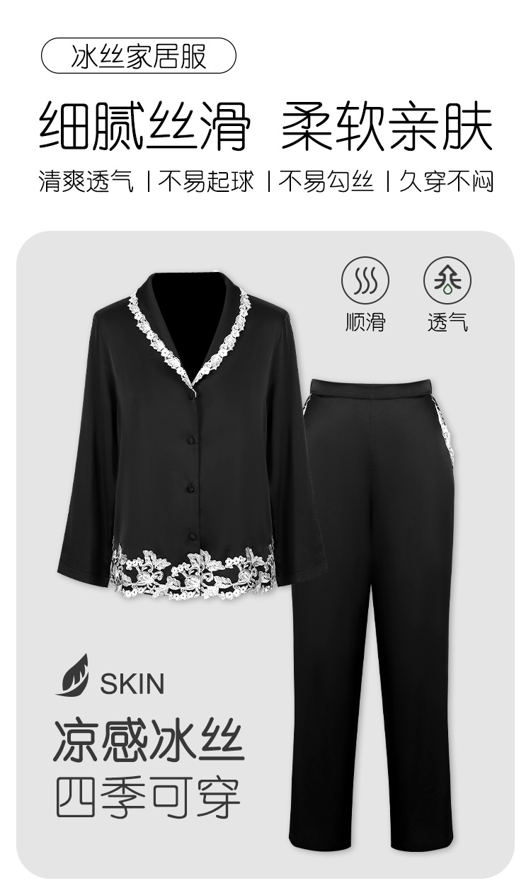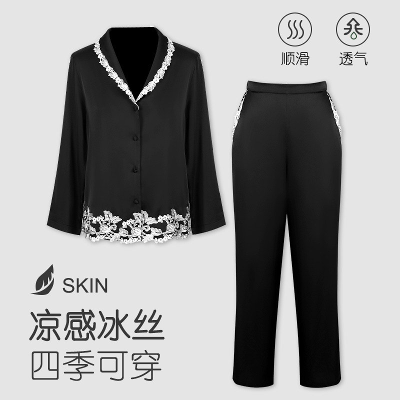 2025春夏新款仿丝睡衣女法式重磅刺绣花边舒适长袖冰丝家居服套装