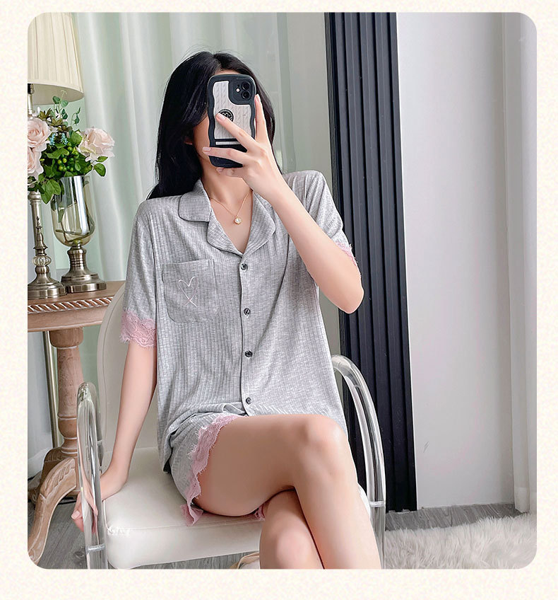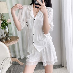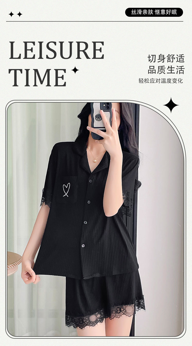 莫代尔女士睡衣2025年夏季新款休闲时尚短袖短裤家居服可外穿套装