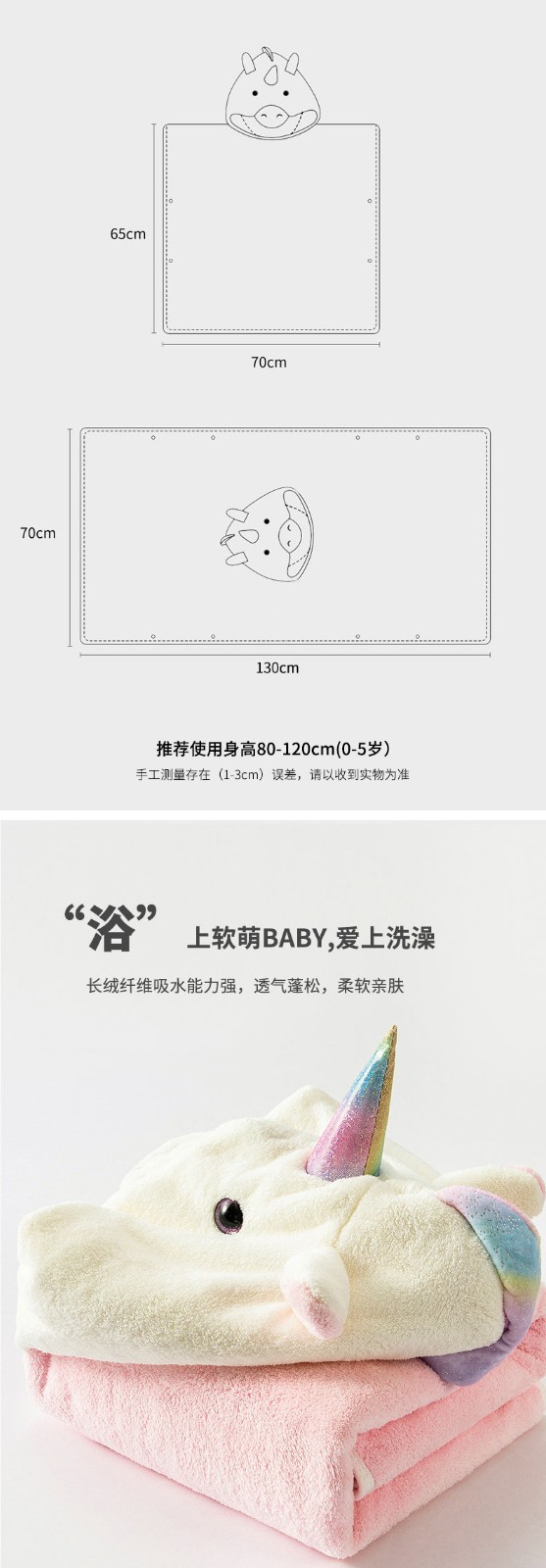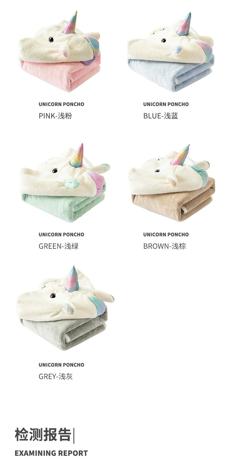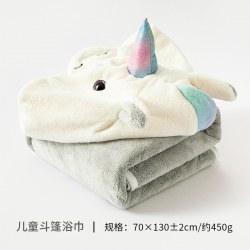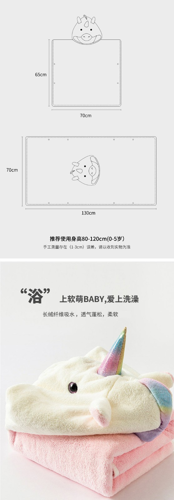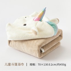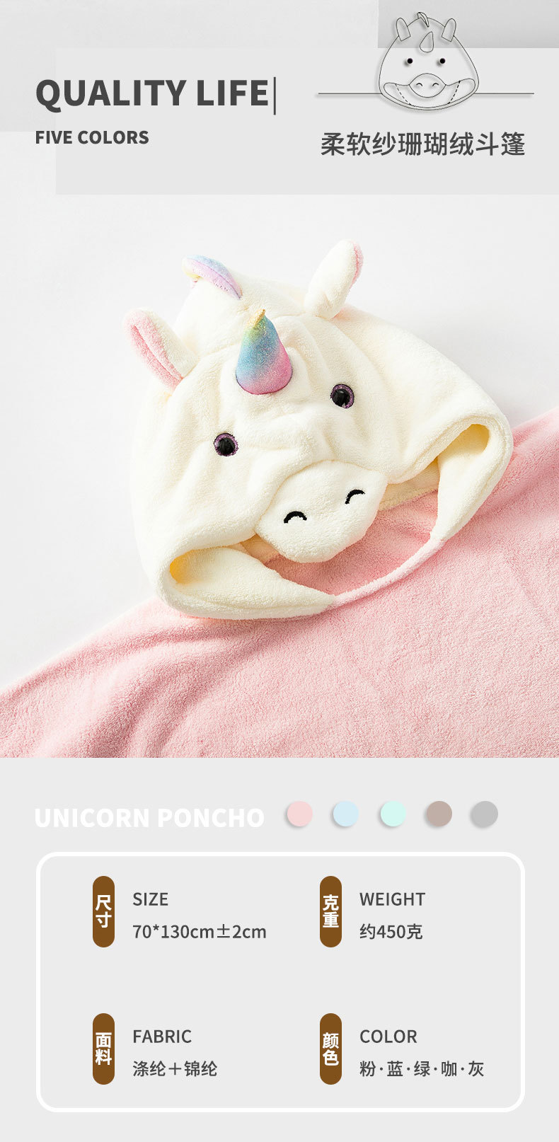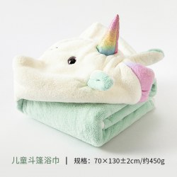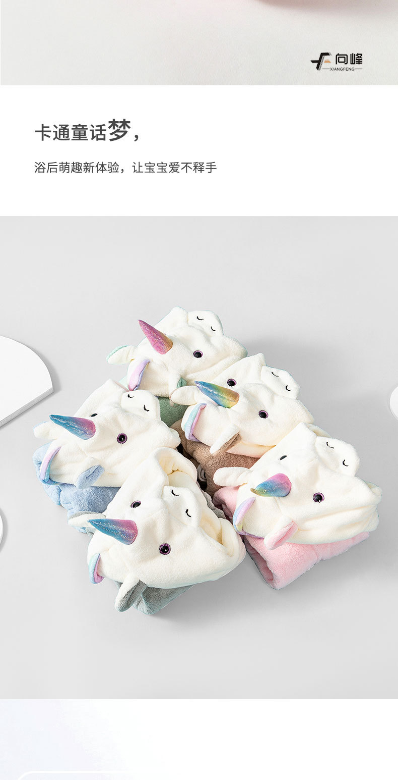 向峰A类独角兽儿童浴巾斗篷婴童卡通浴袍珊瑚绒吸水婴幼儿披风