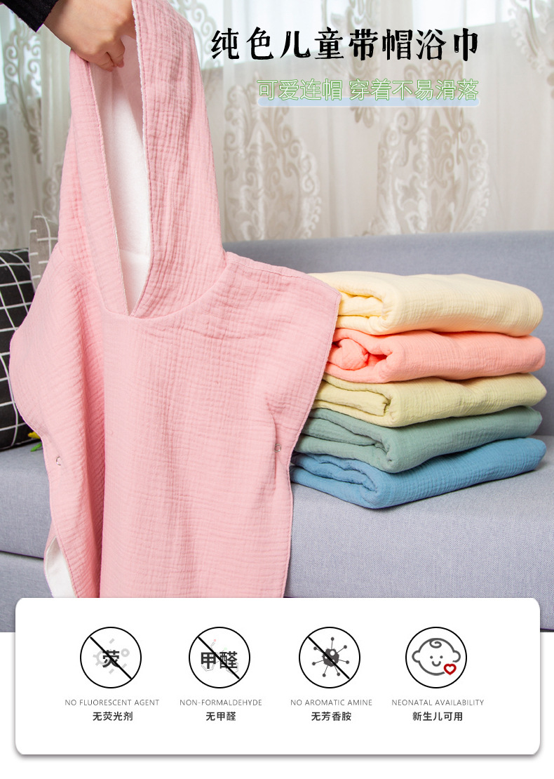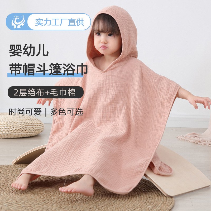 宝宝洗澡浴巾婴儿专用带帽斗篷纯棉a类2层纱布婴幼儿童大浴巾