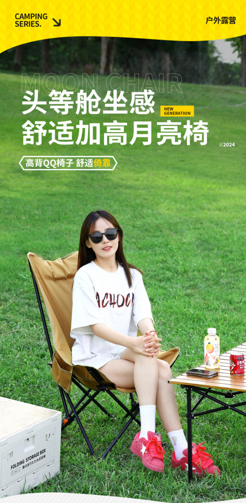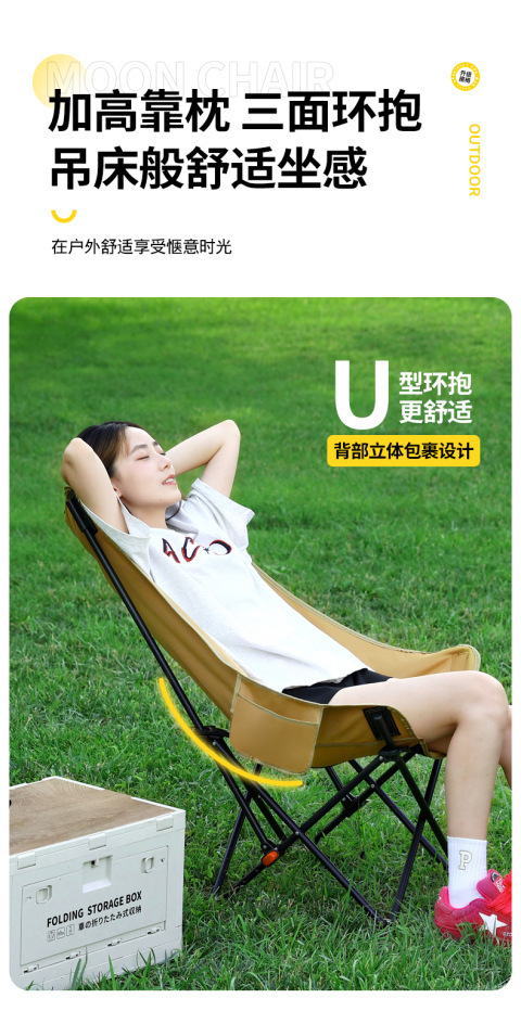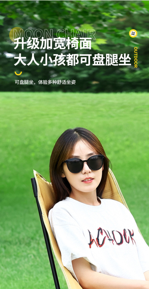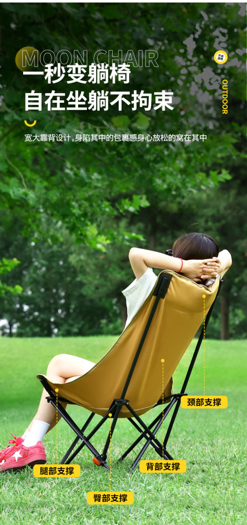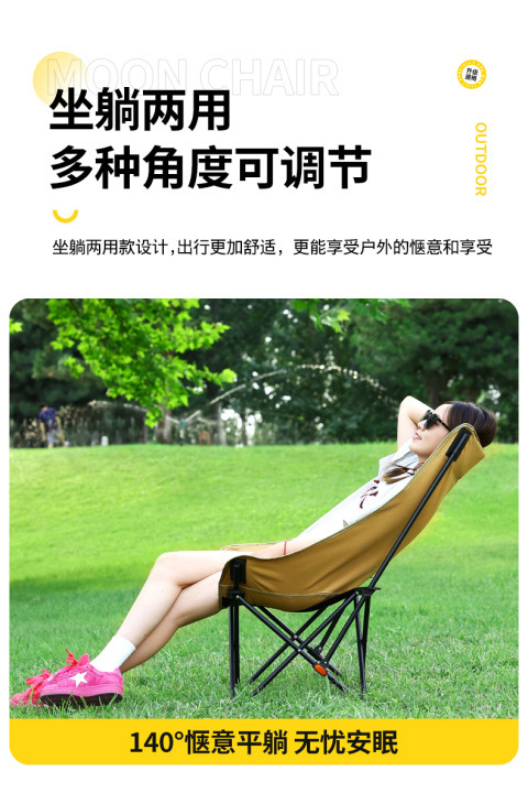 月亮椅三档调节带腿托可坐可躺加厚升级便携式折叠月亮椅钓鱼躺椅