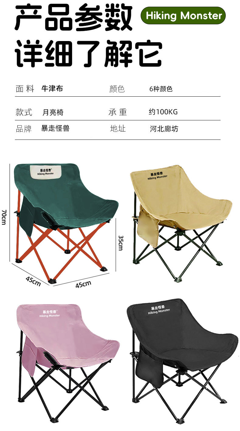 【暴走怪兽】月亮椅一件代发户外休闲折叠椅轻松便携椅可折叠