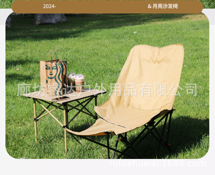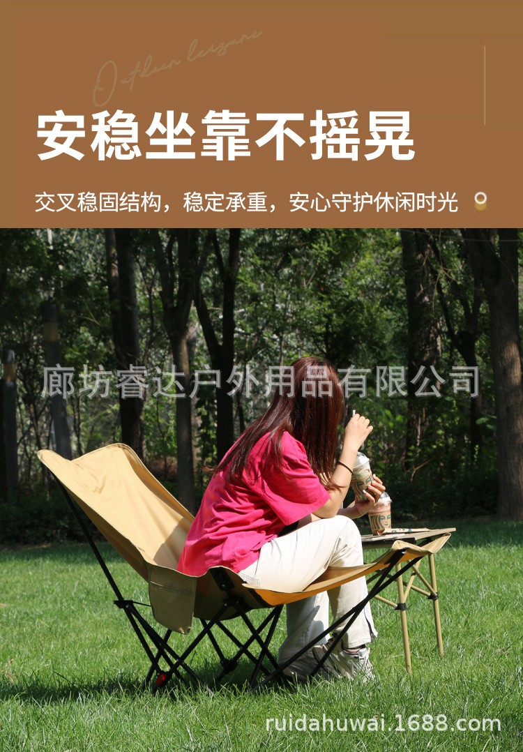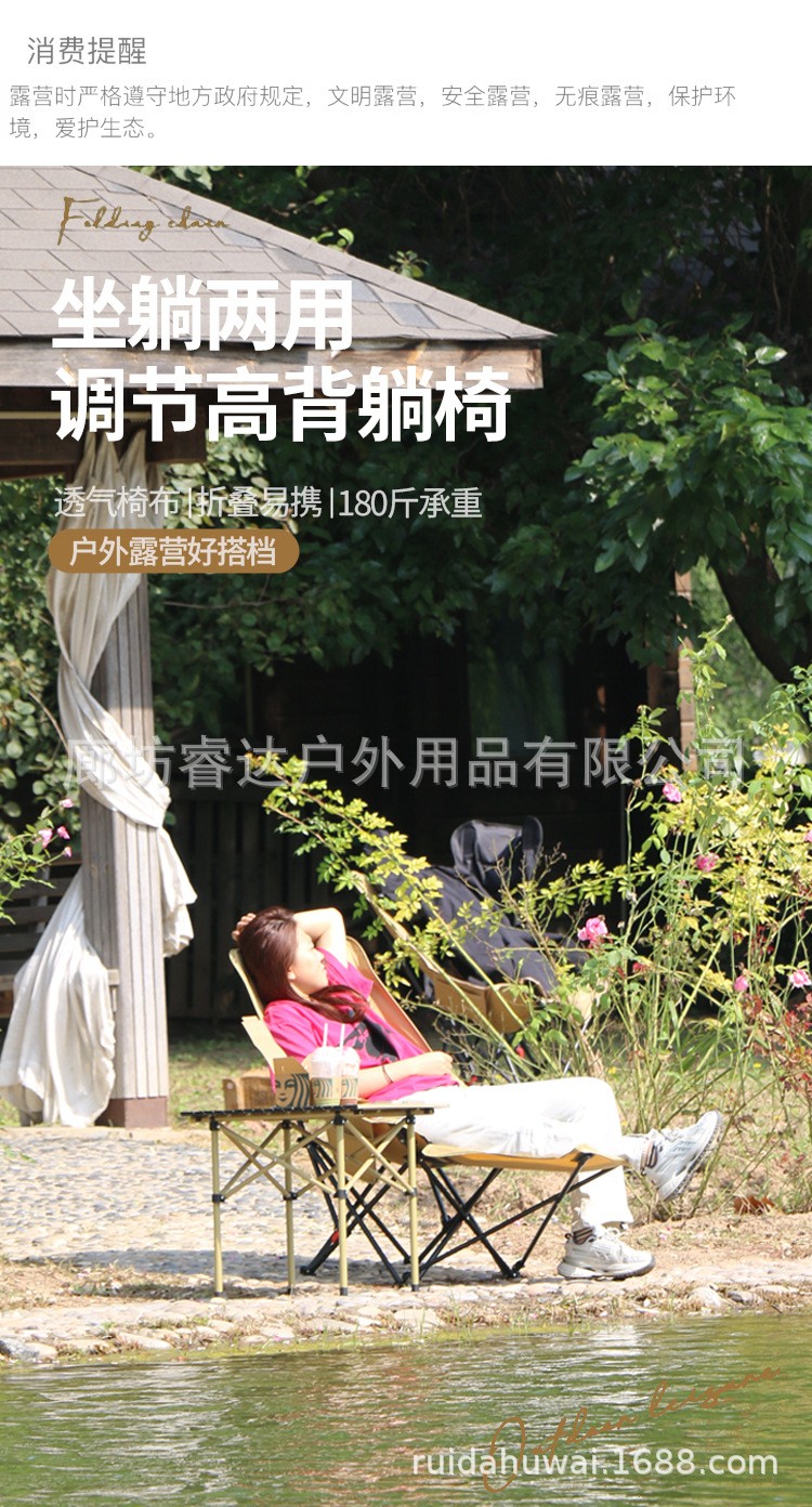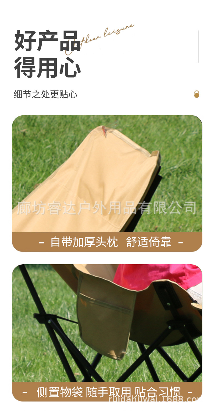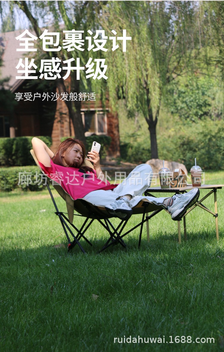 睿达户外高靠背月亮椅便携式折叠桌椅套装露营野餐椅子可三挡调节