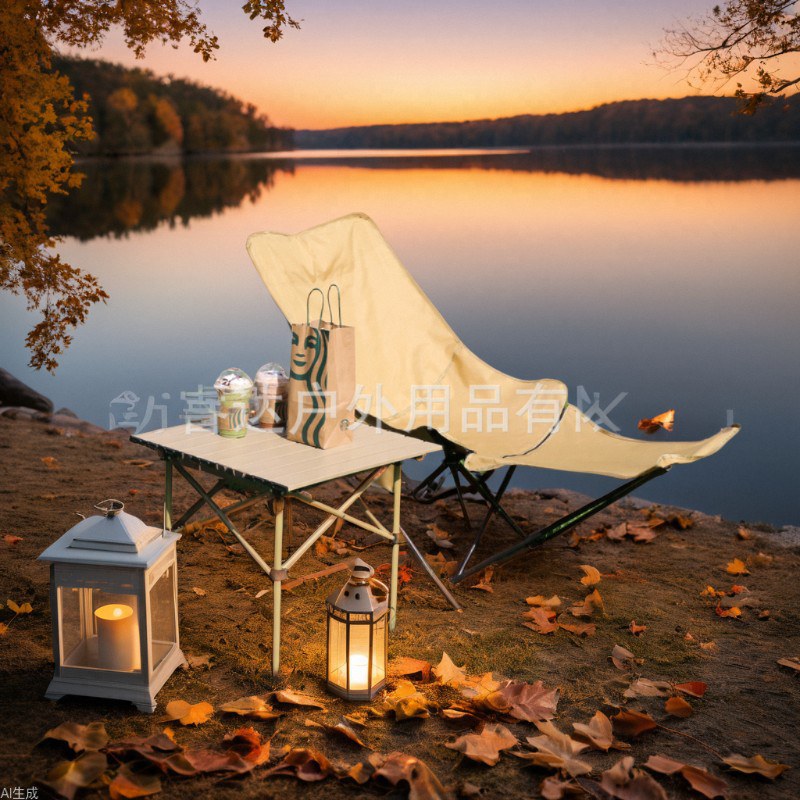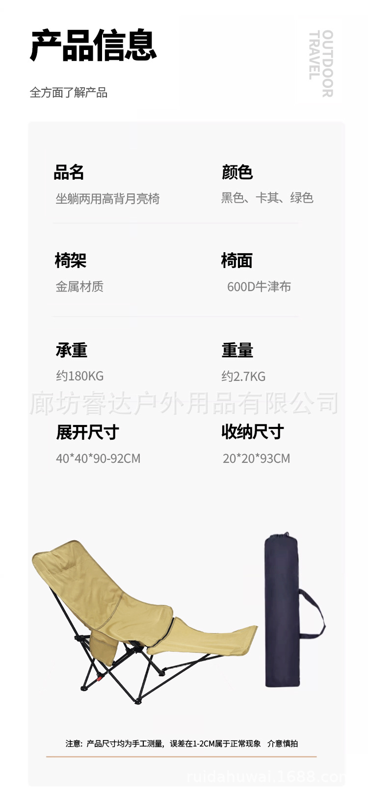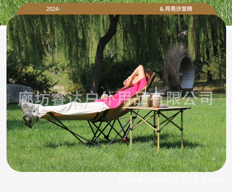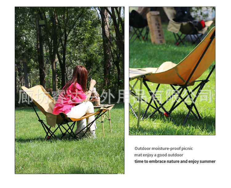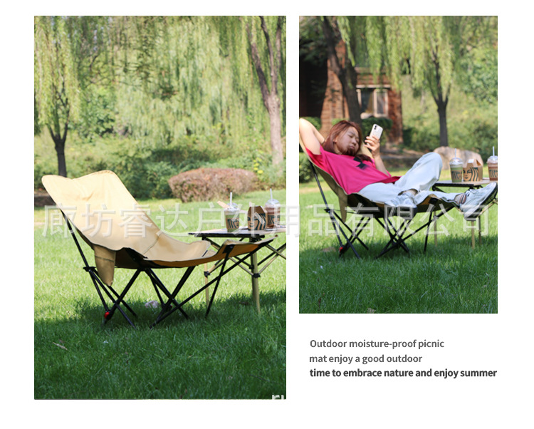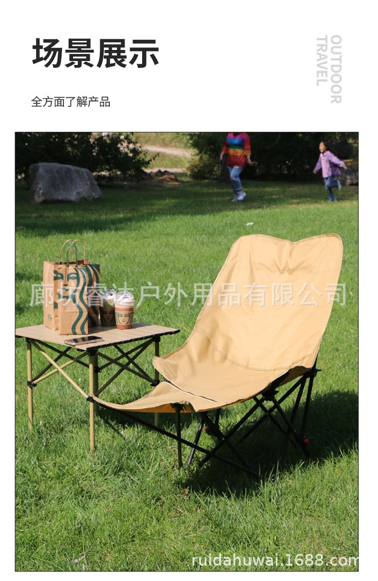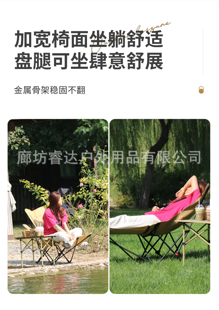 睿达户外高靠背月亮椅便携式折叠桌椅套装露营野餐椅子可三挡调节